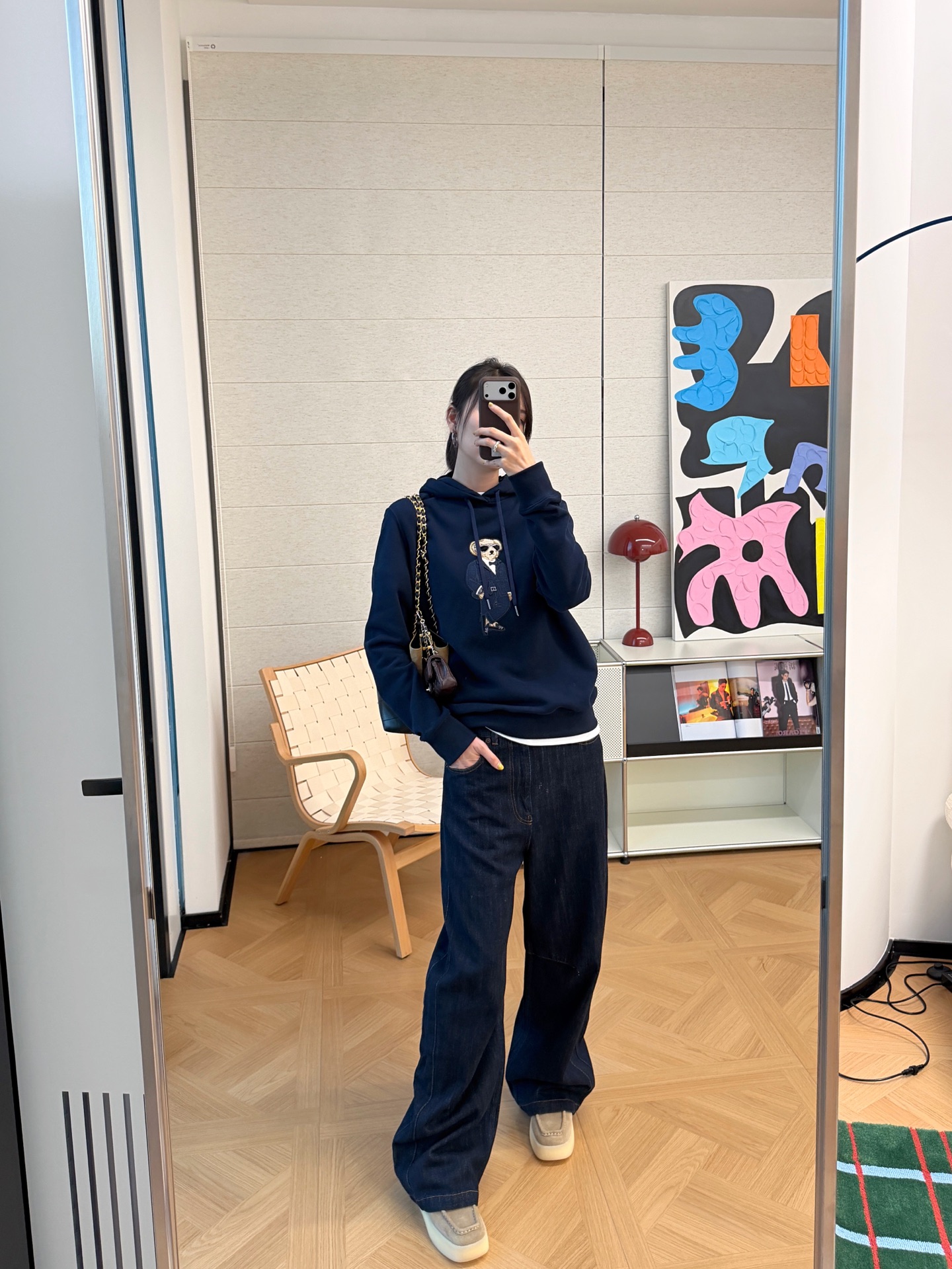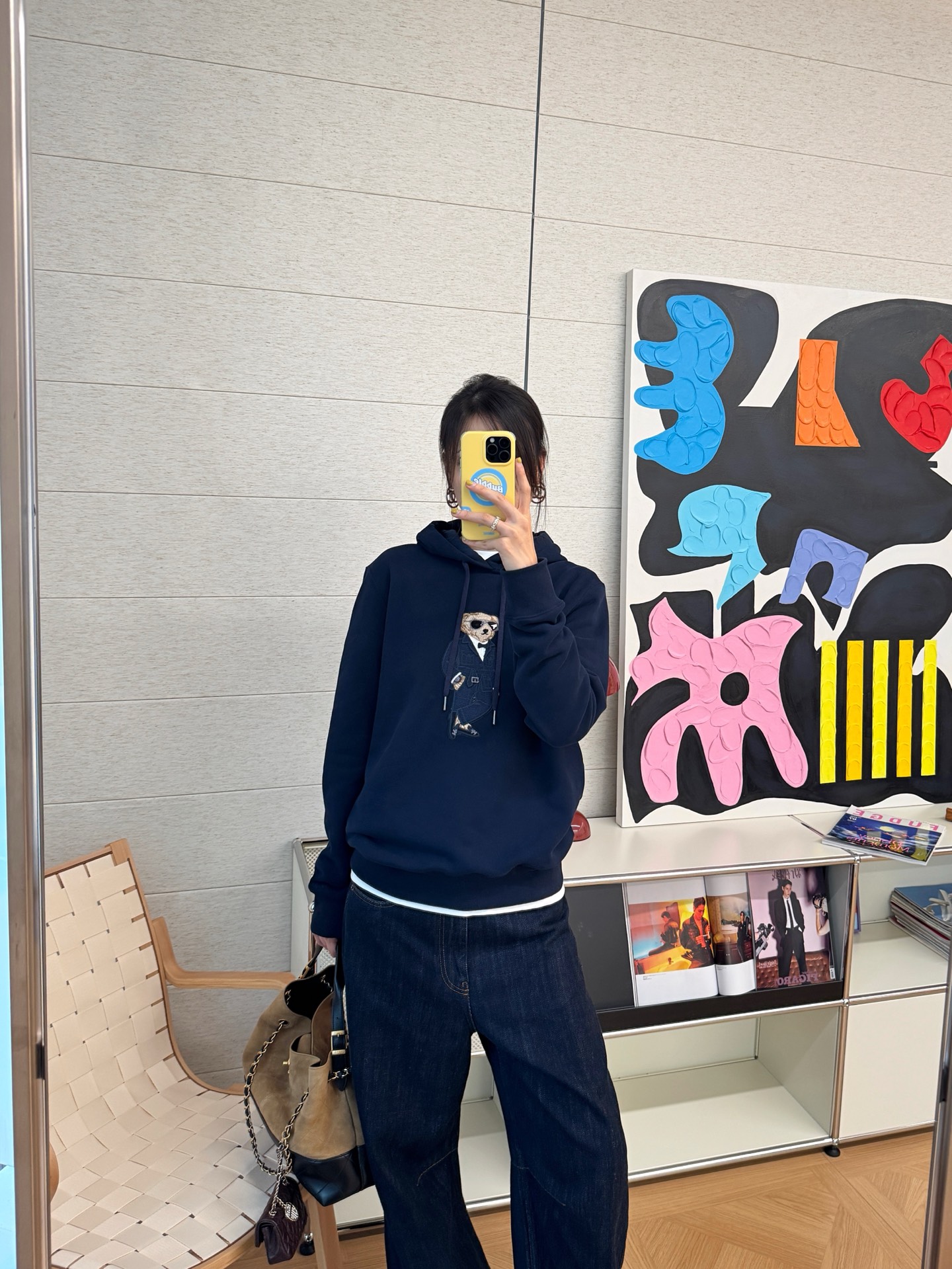這款西服小熊連帽衛衣真的是一眼就愛上的那種!整體以質感超好的高級藍作為主色,低調卻耐看,是那種完全能「閉眼入」的百搭單品。