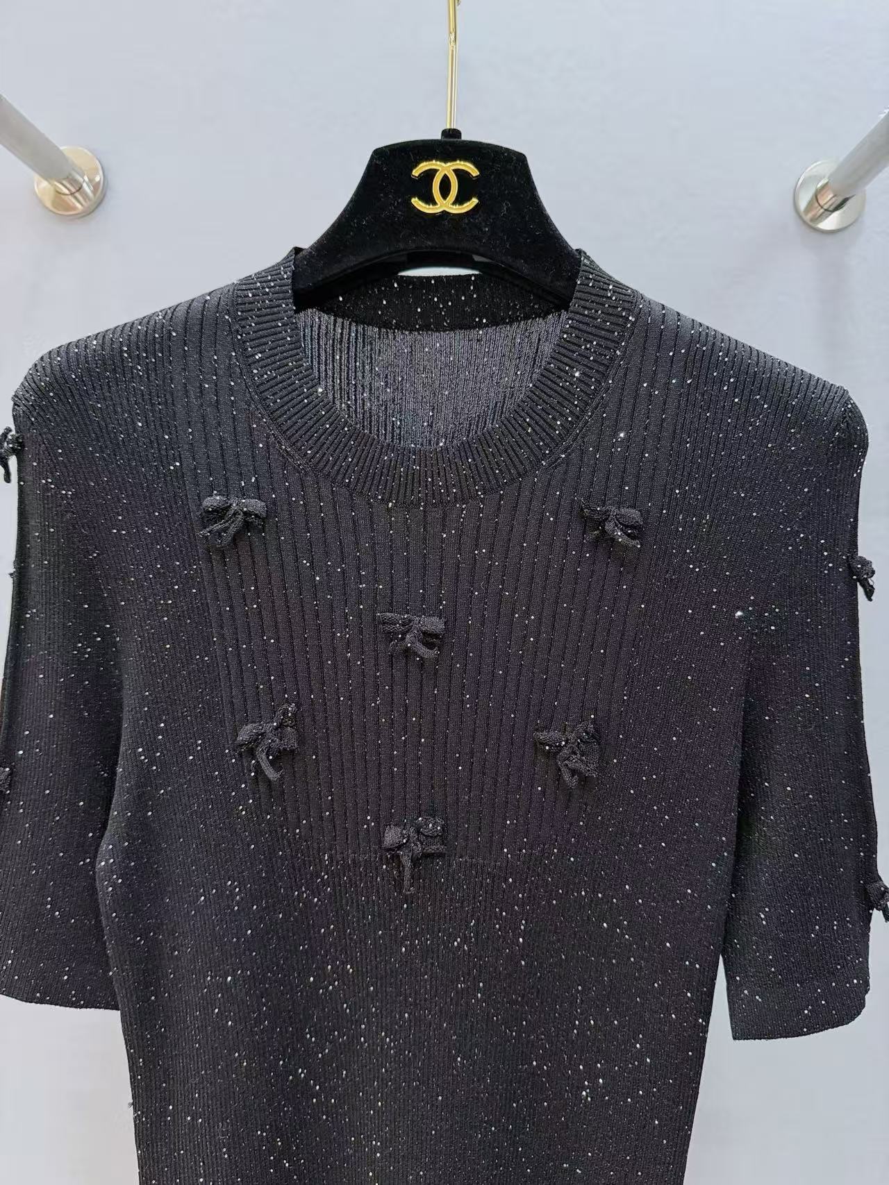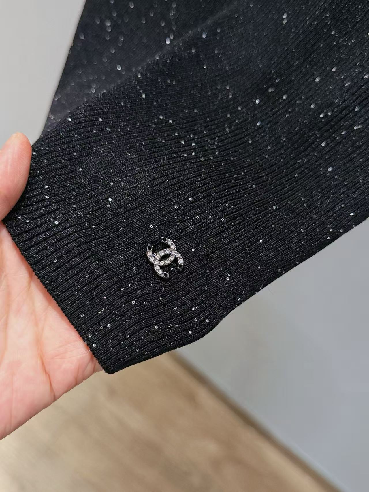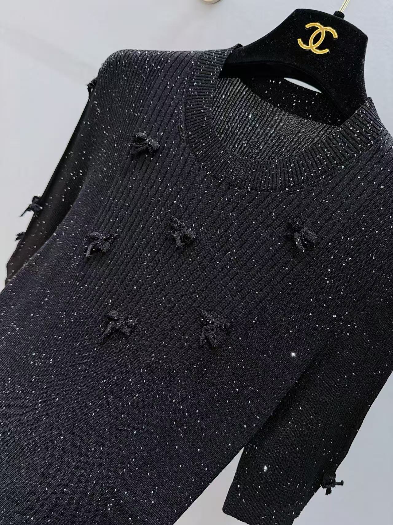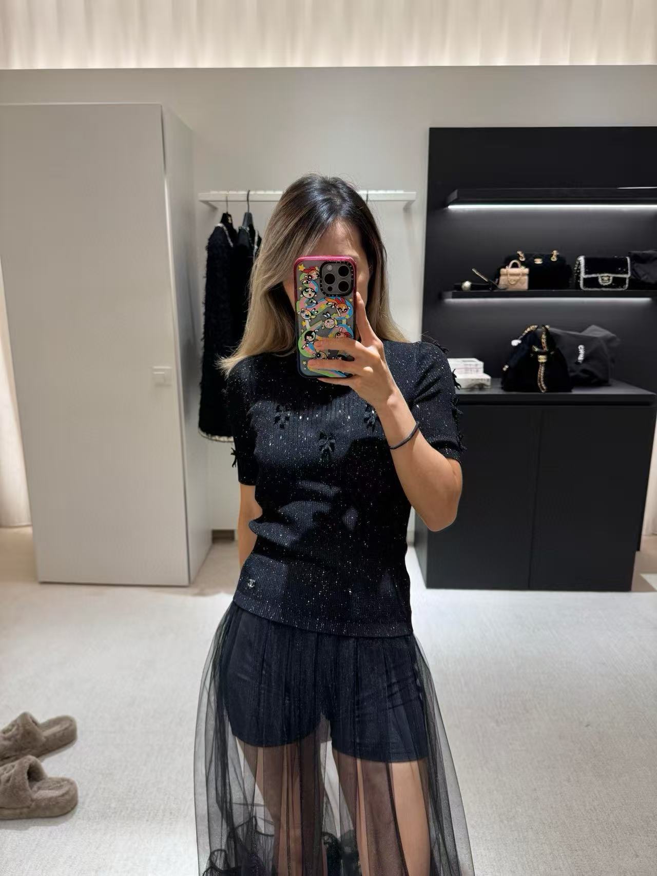 經典黑調滿布細閃,精緻花飾與綁帶設計散發法式優雅,標誌性雙C細節低調藏奢。