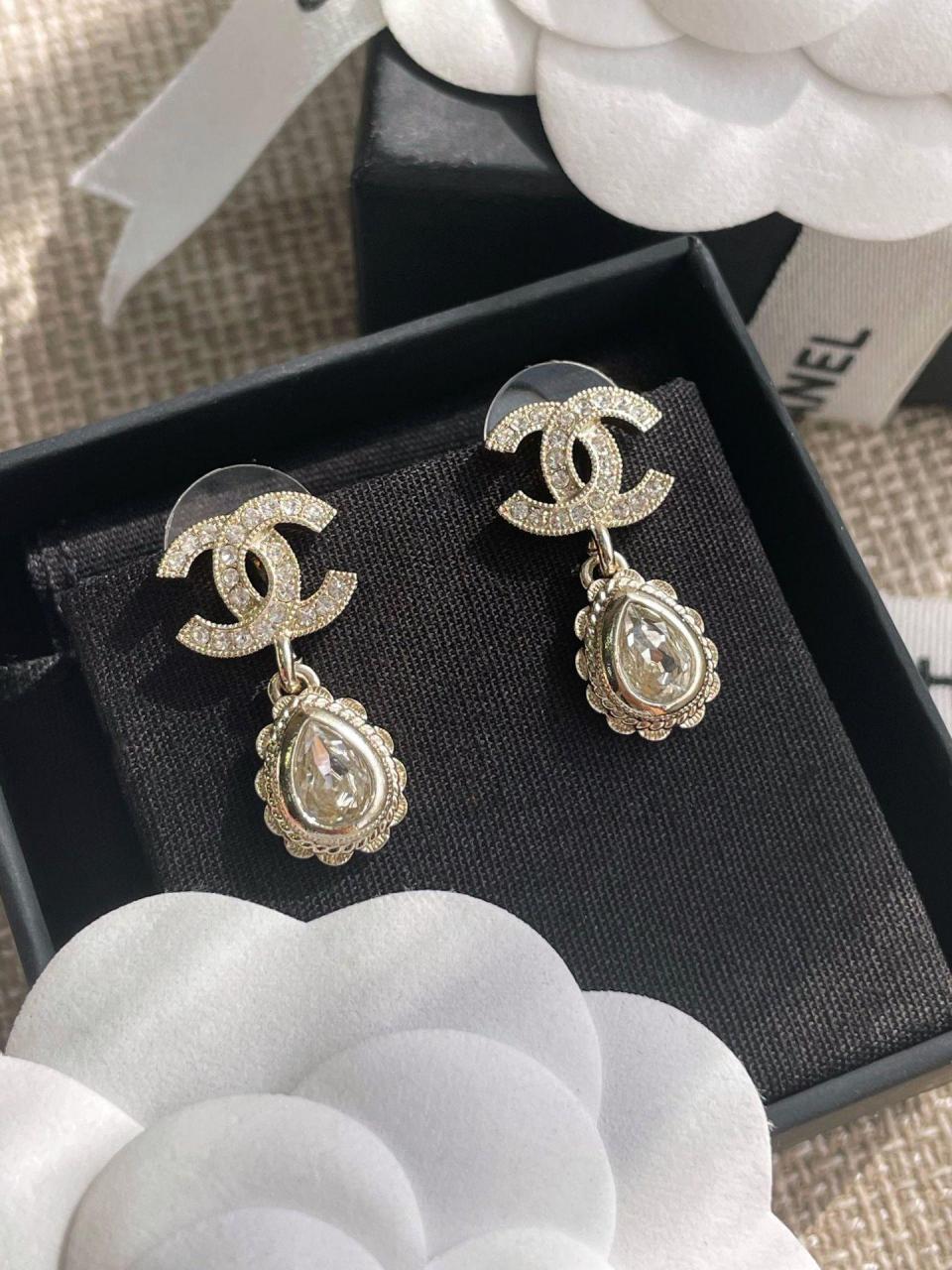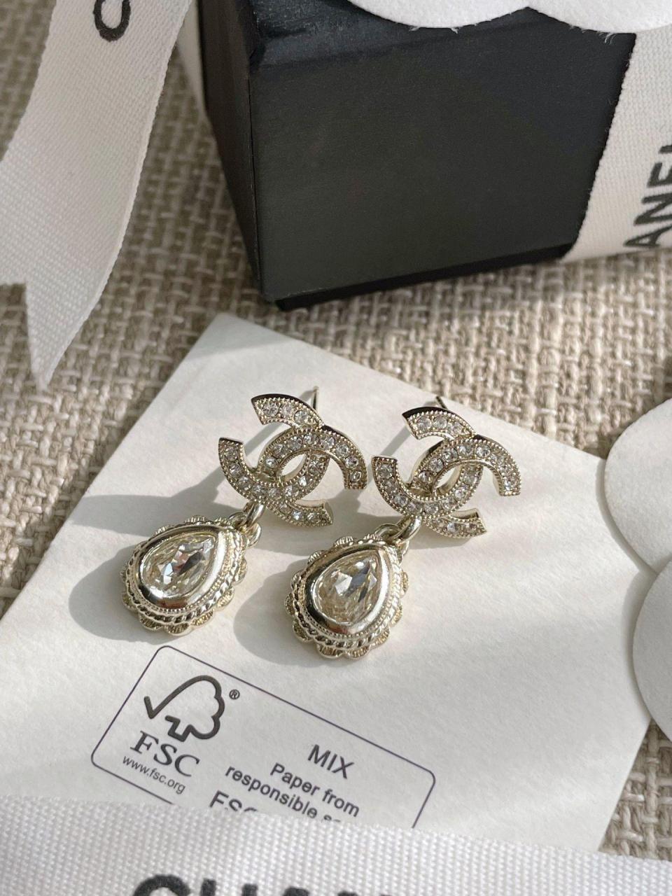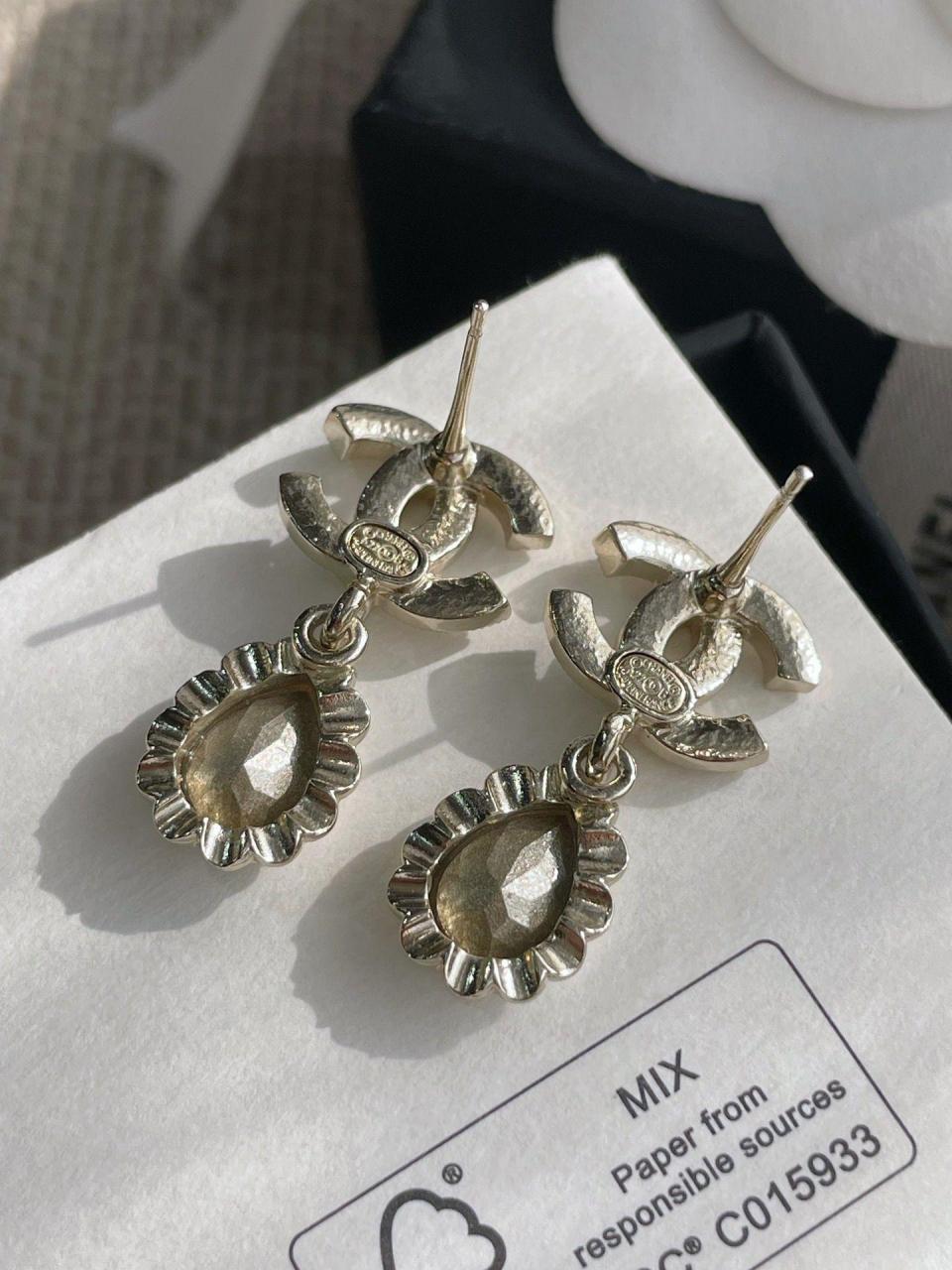 2022秋冬 C家雙C吊花邊水滴耳環