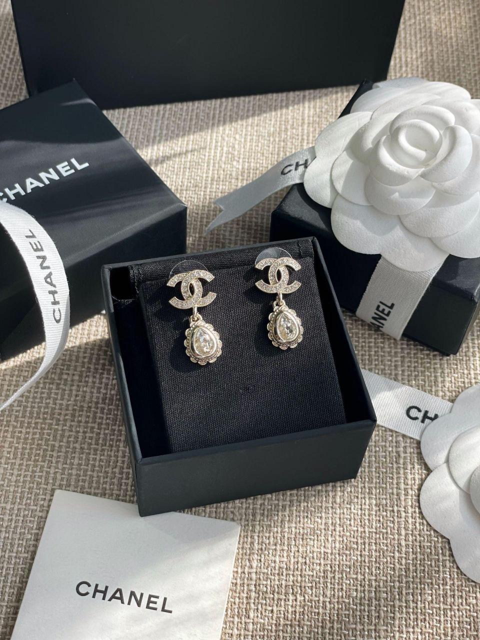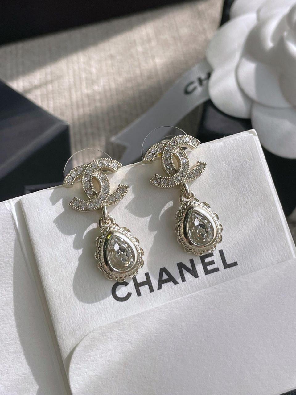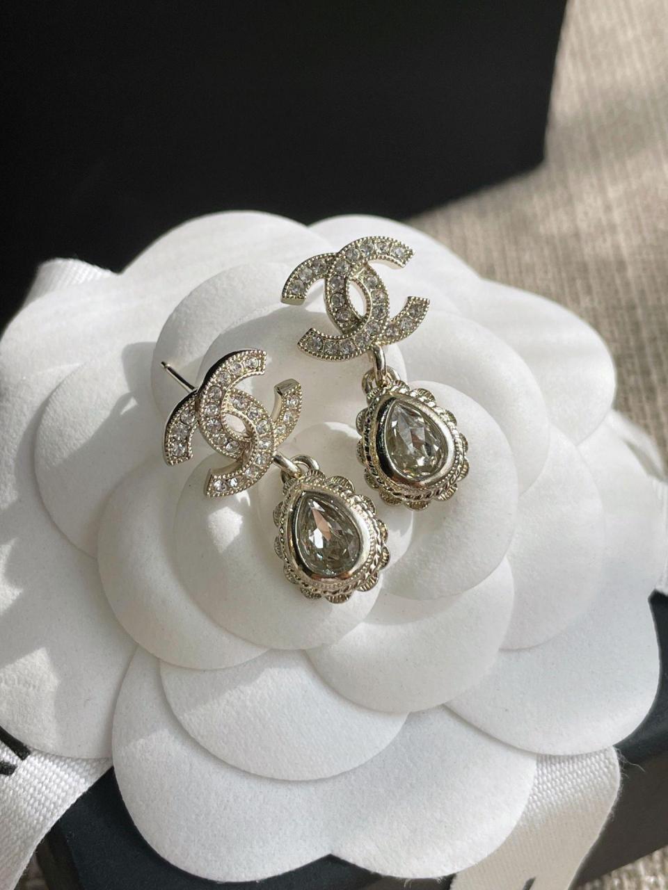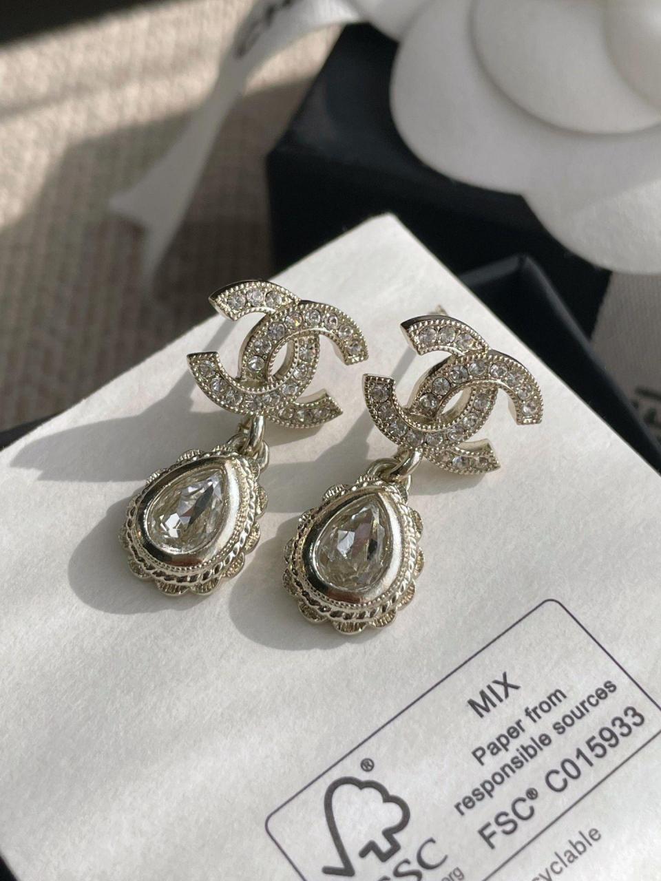 2022秋冬 C家雙C吊花邊水滴耳環