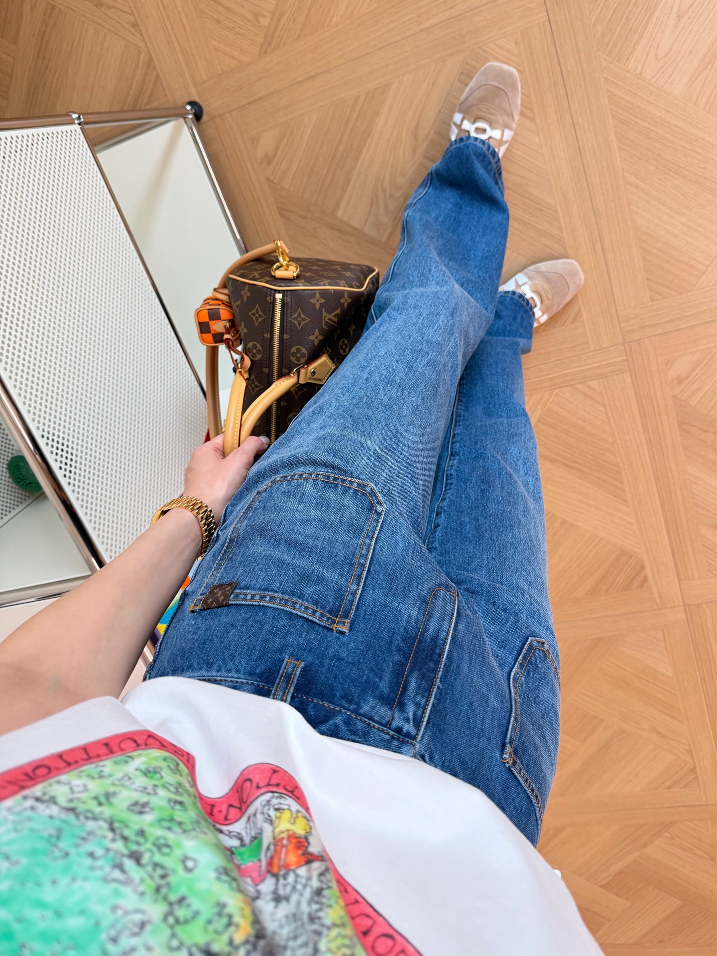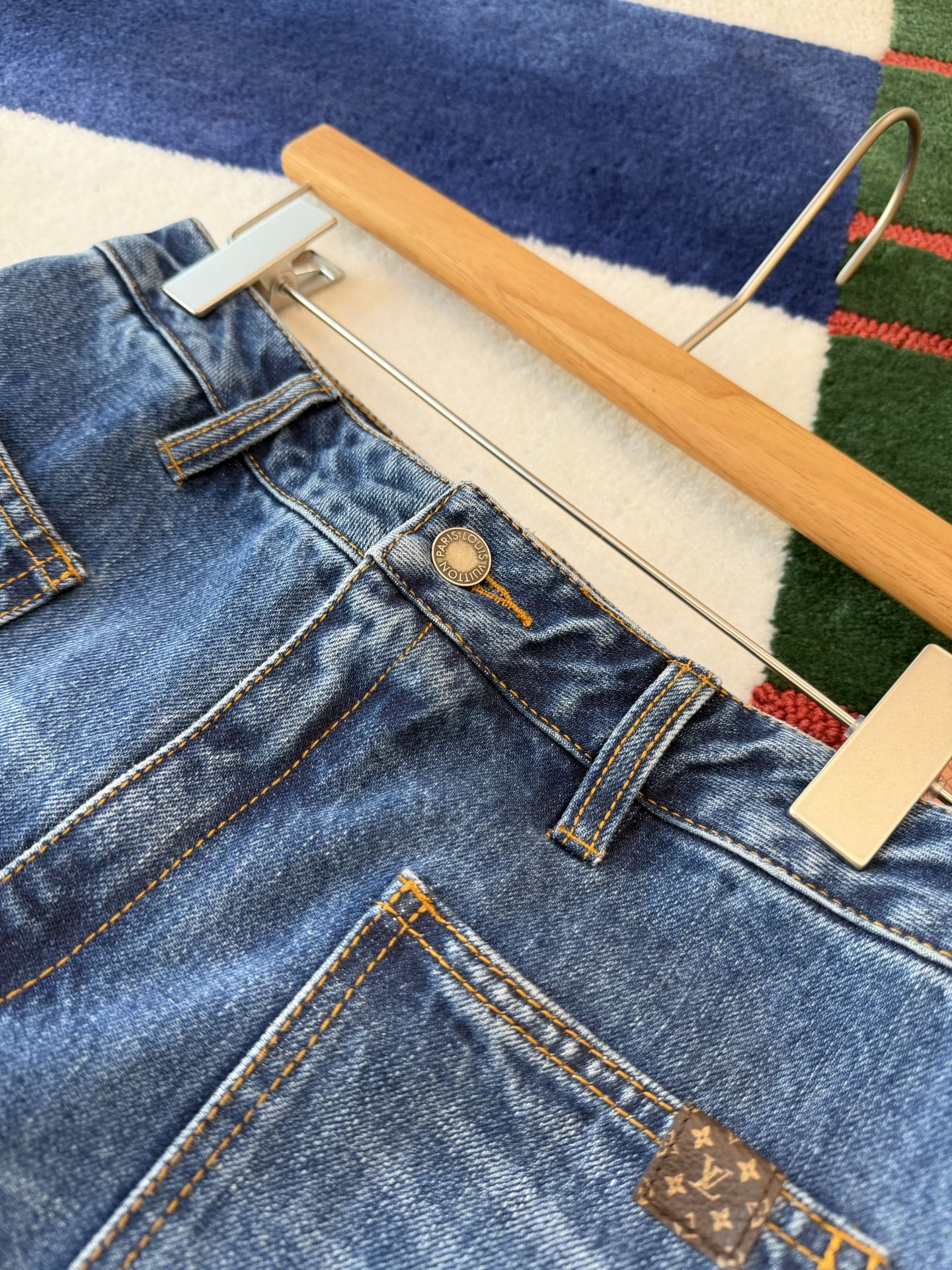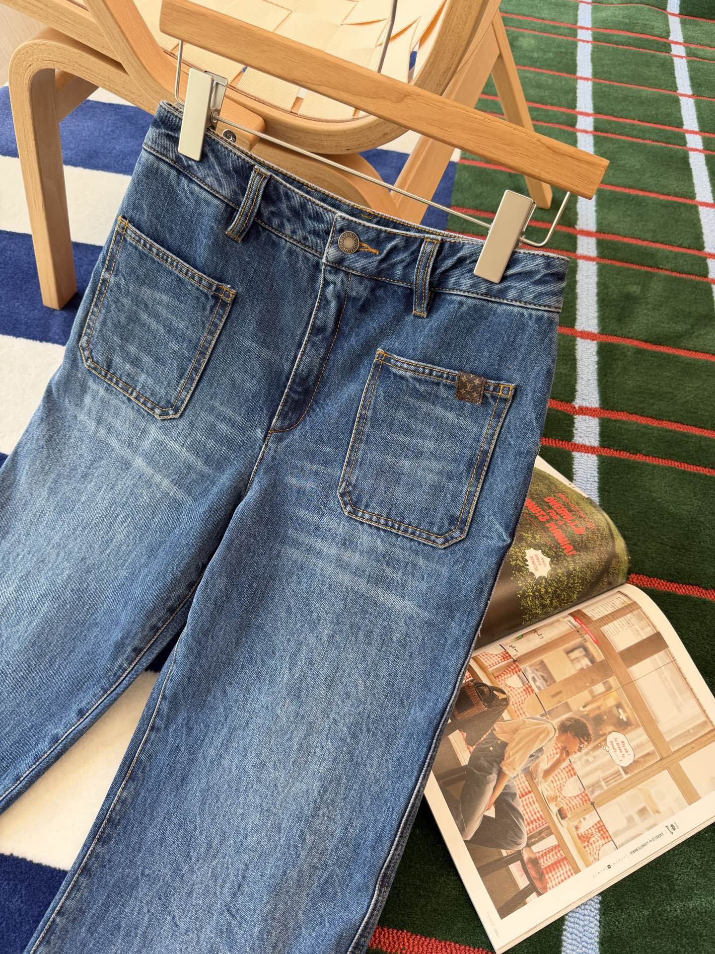 口袋處加入老花壓紋皮革裝飾,低調卻很有辨識度,讓整件牛仔褲瞬間多了一層精品感,不會太浮誇,但懂的人一看就知道質感不一般。