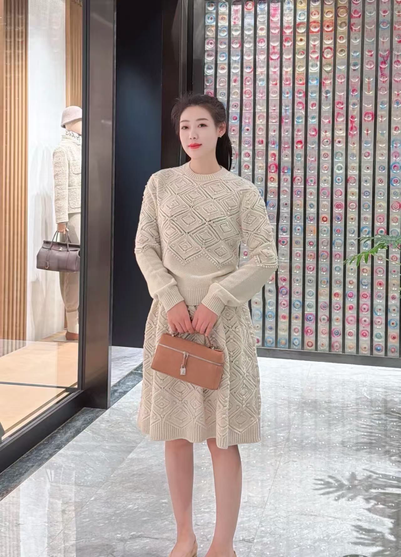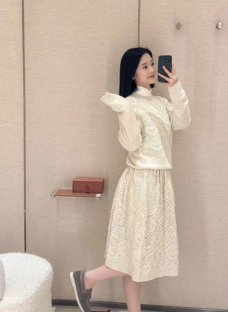 米白色調超級溫柔,菱形與菱格紋理設計滿滿,視覺上很有層次感,輕鬆散發高級優雅氣質。