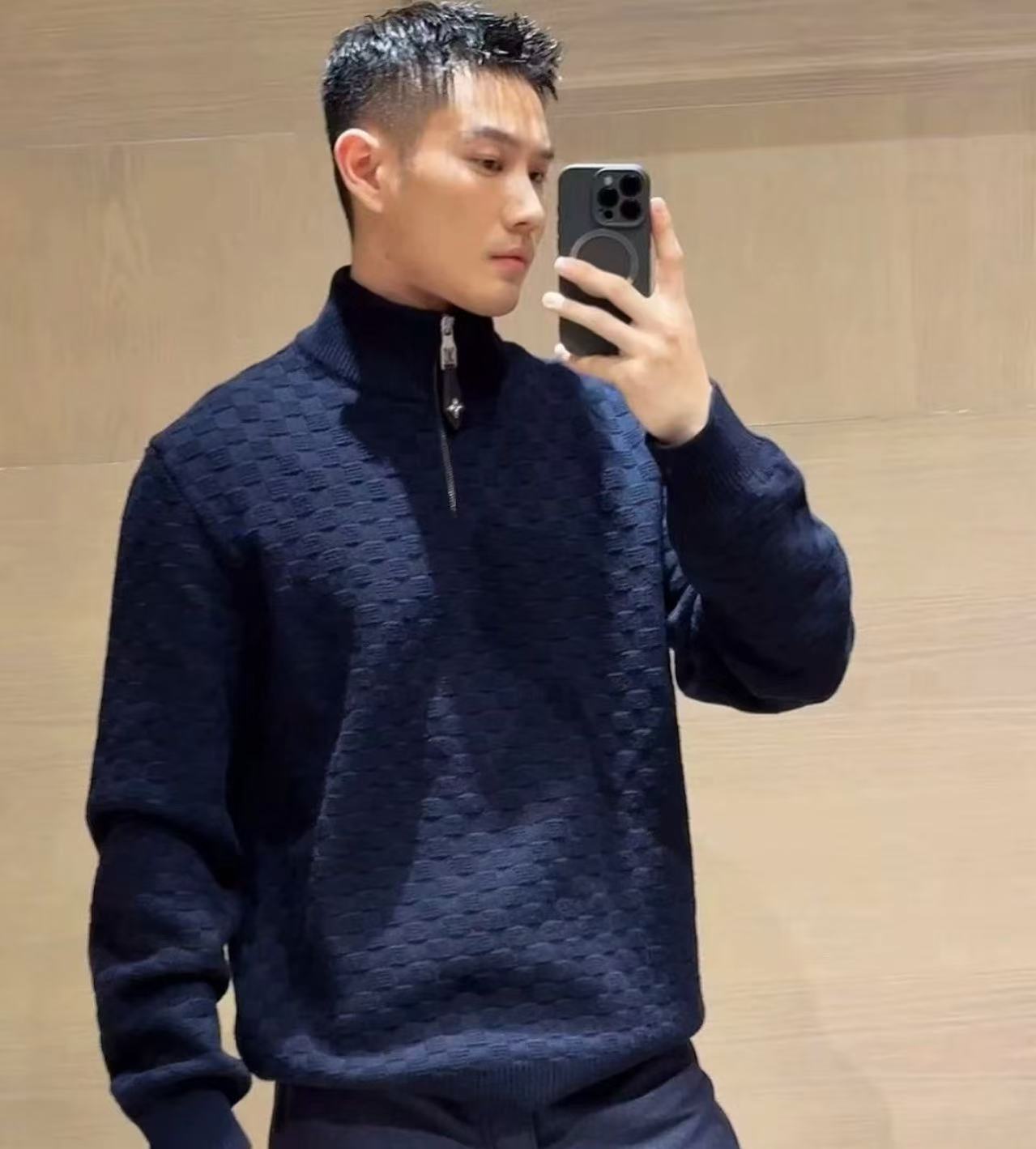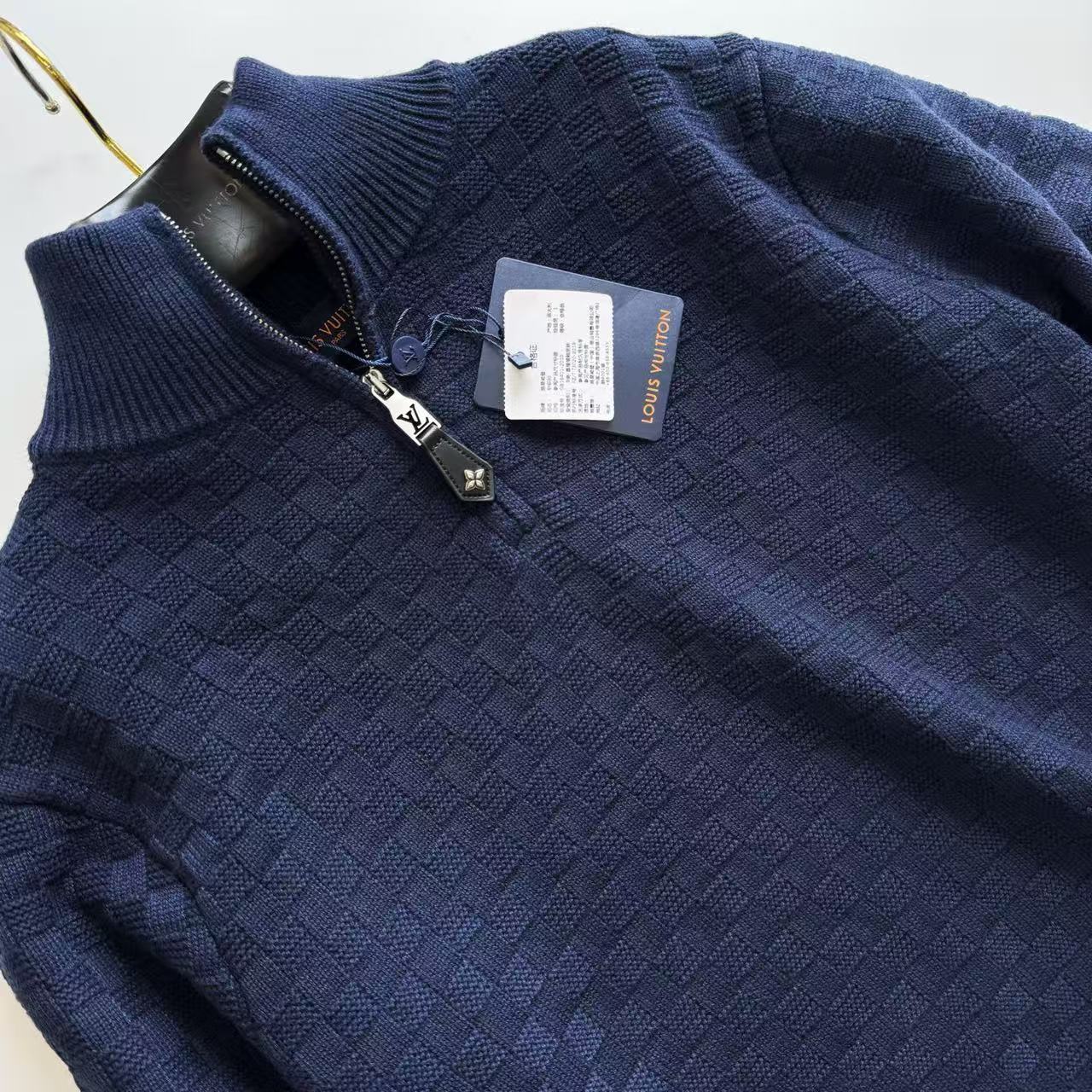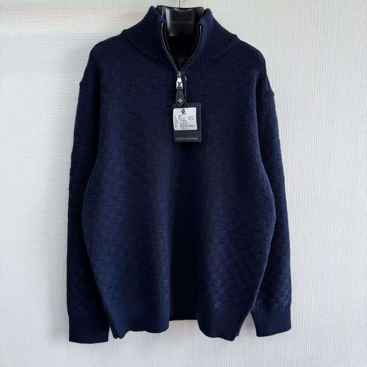2025早秋新品 L家 Damier棋盤格半拉鏈立領毛衣