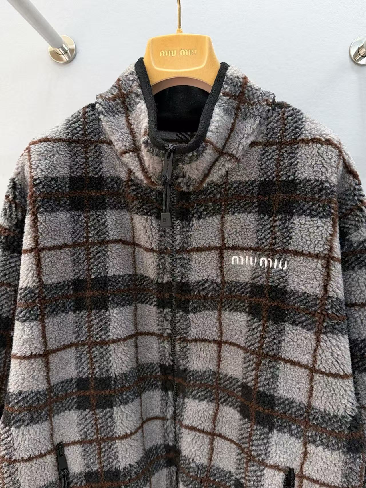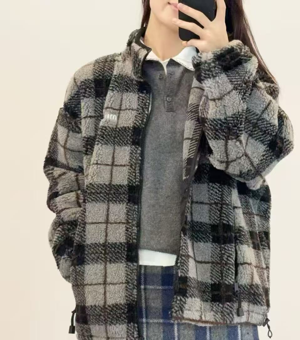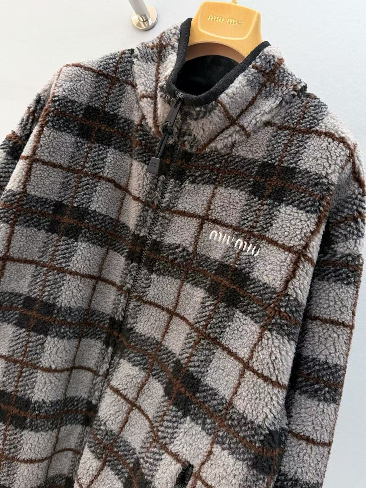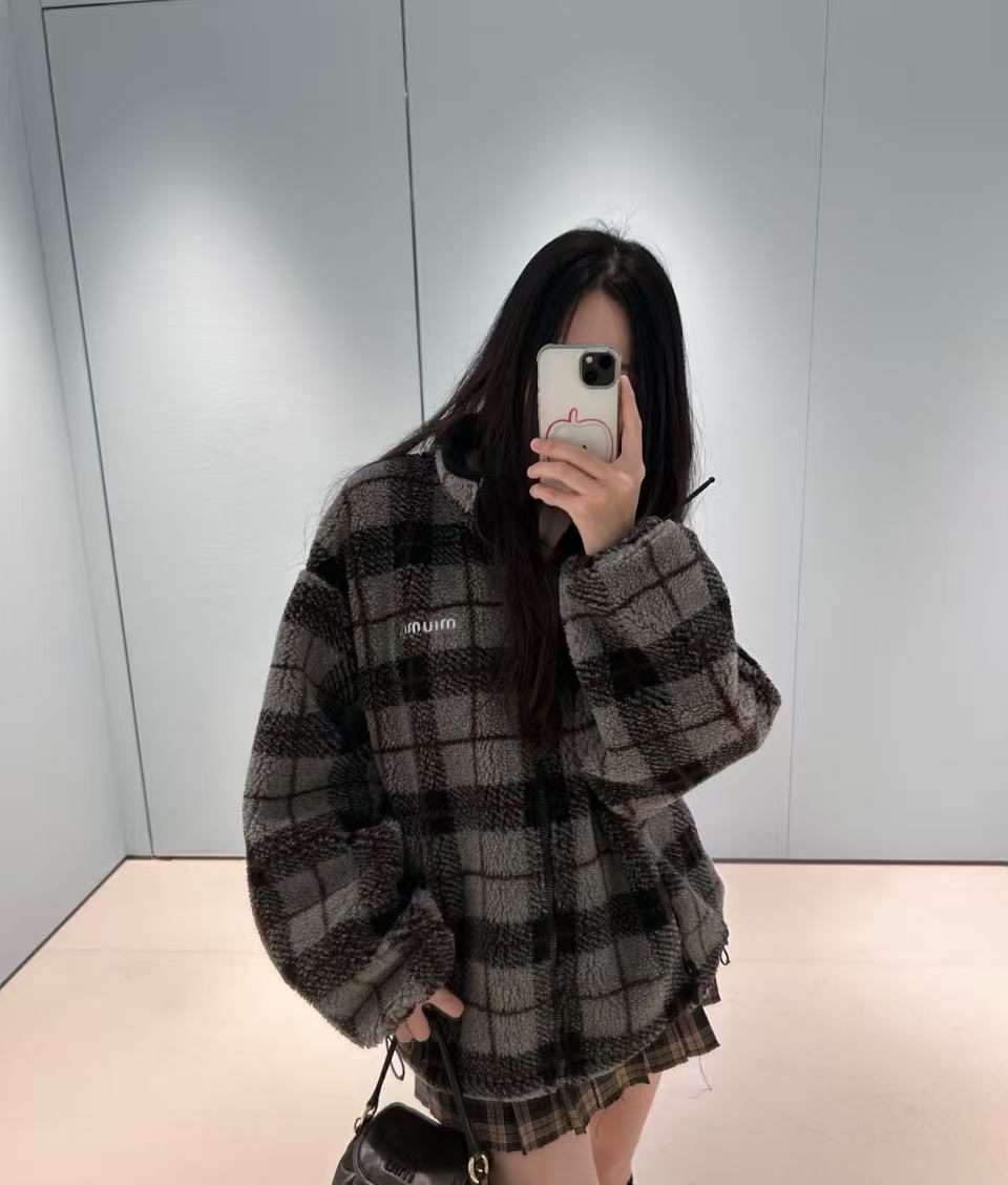 2025早秋 Miu家 搖粒絨格紋外套