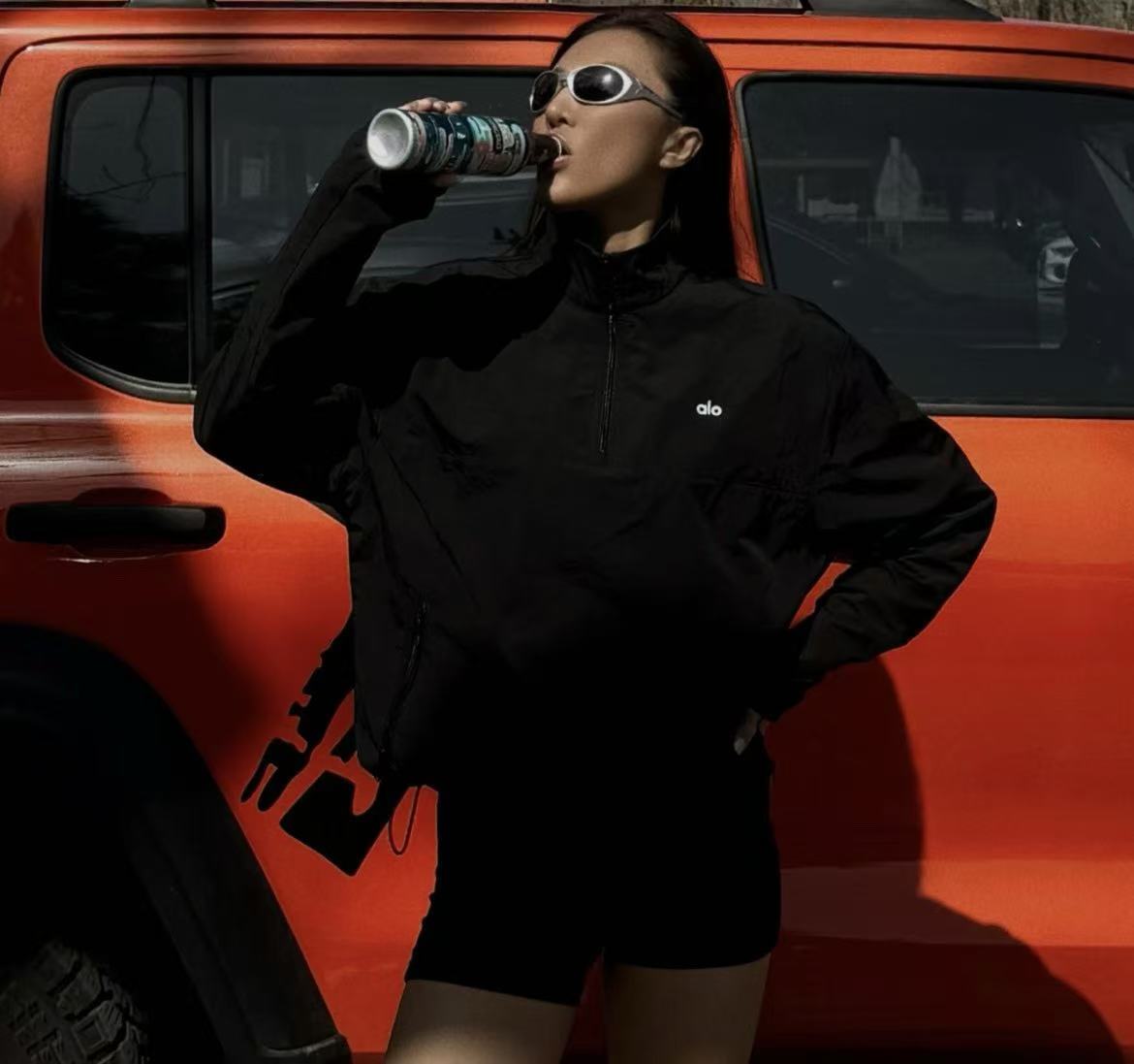 Alo家 刺繡字母半拉鏈立領運動上衣