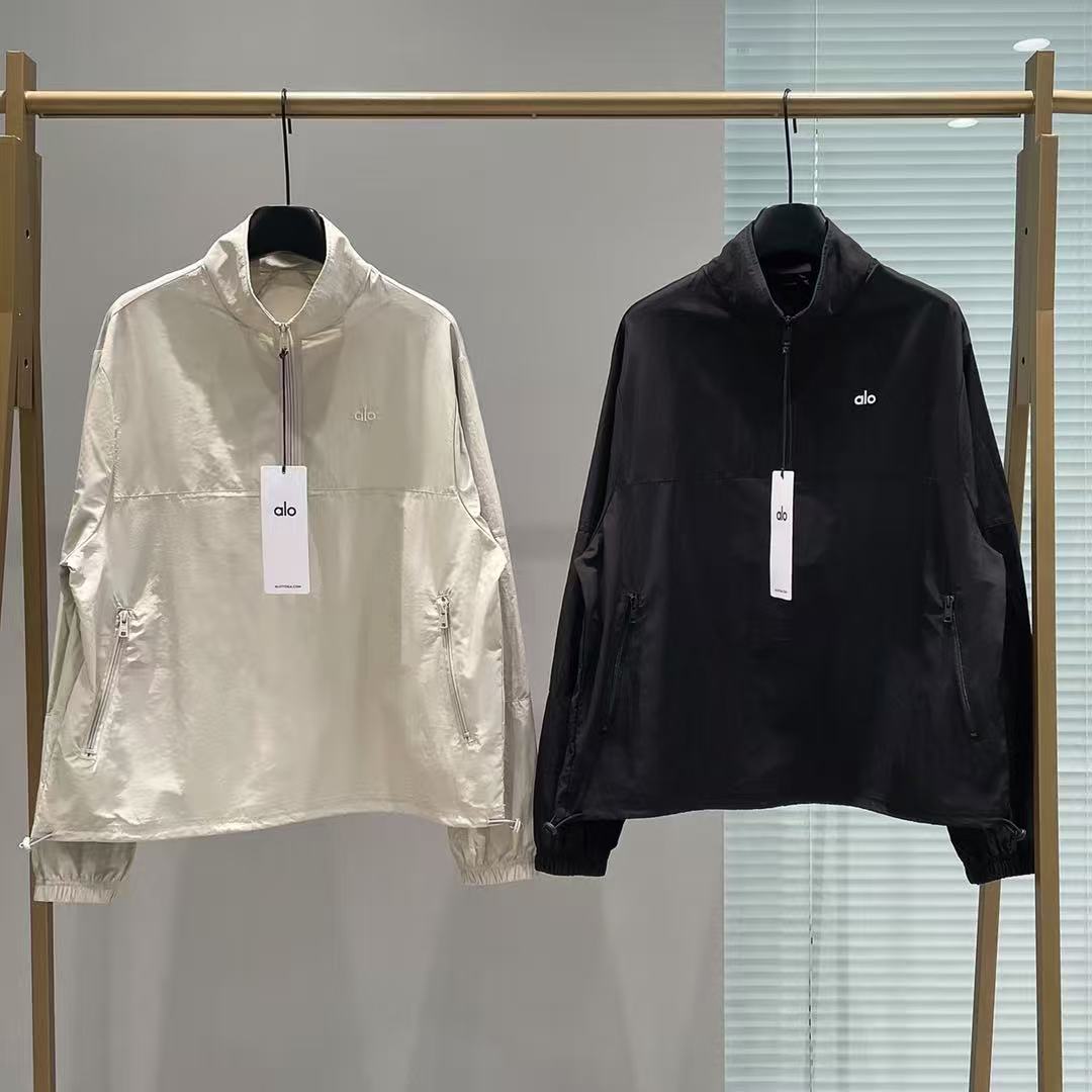 2025早秋新品 Alo家 刺繡字母半拉鏈立領運動上衣