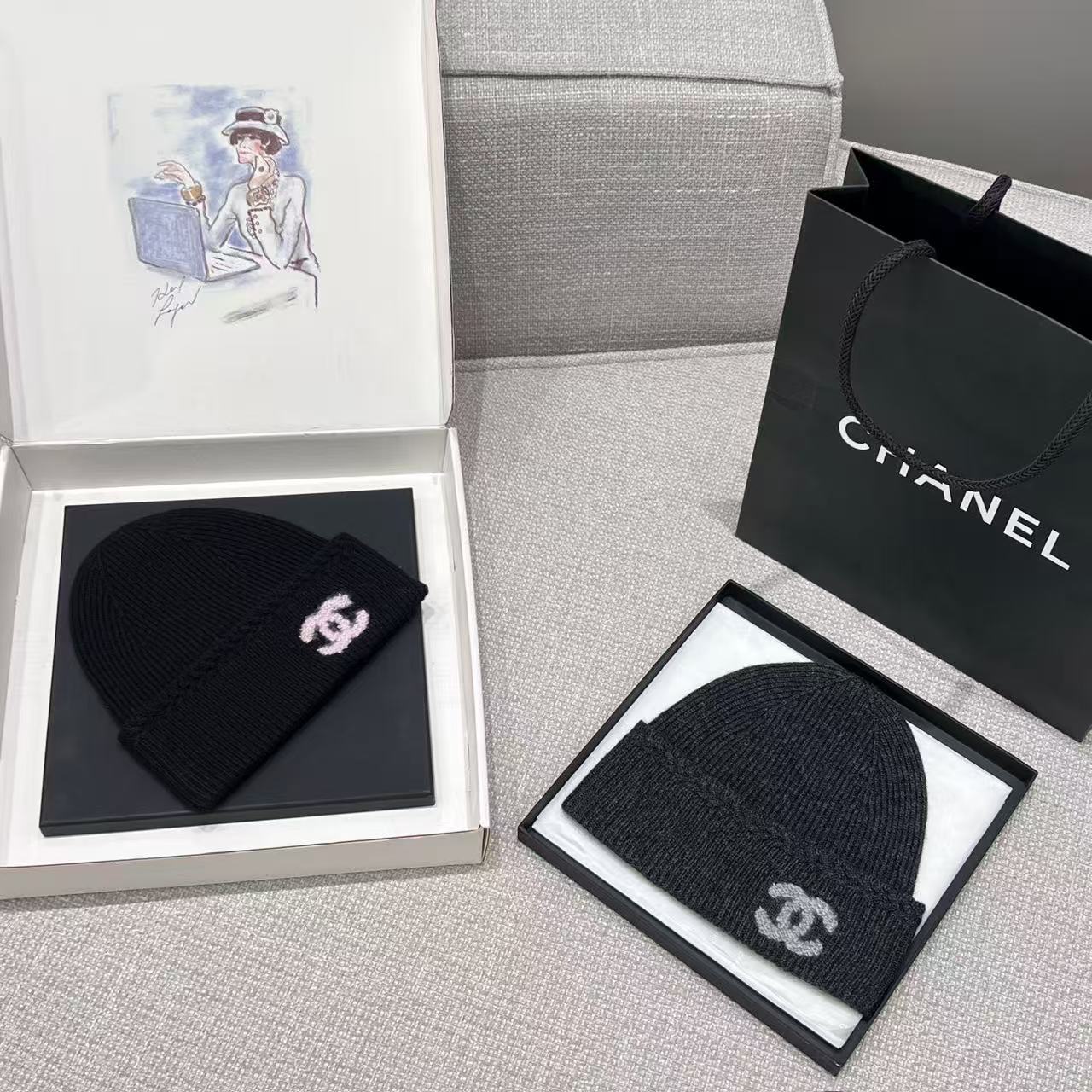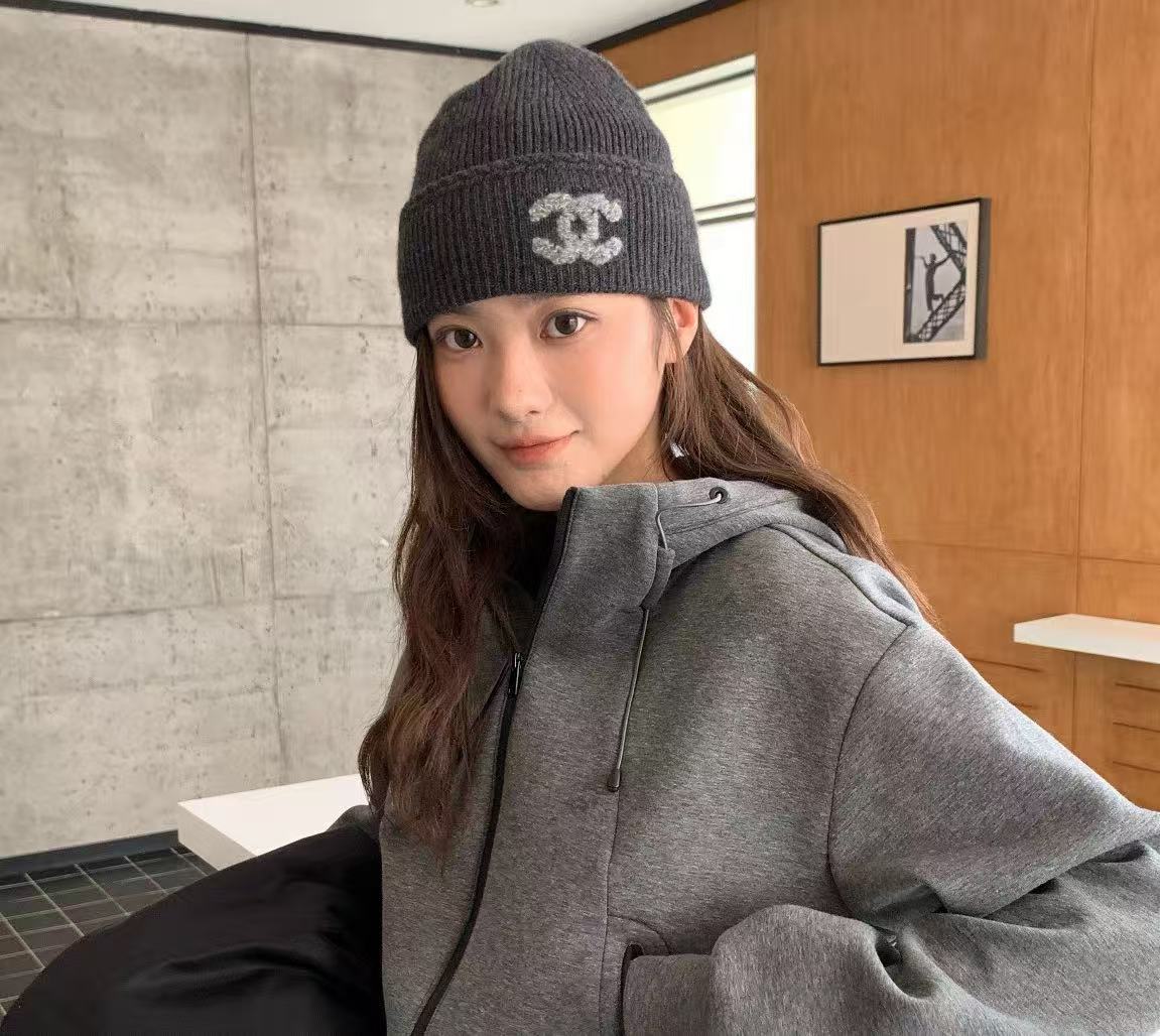 2025秋冬新品 C家 25b雙C標誌羊絨針織冷帽