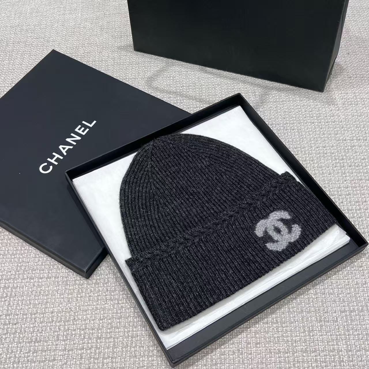 C家 25b雙C標誌羊絨針織冷帽