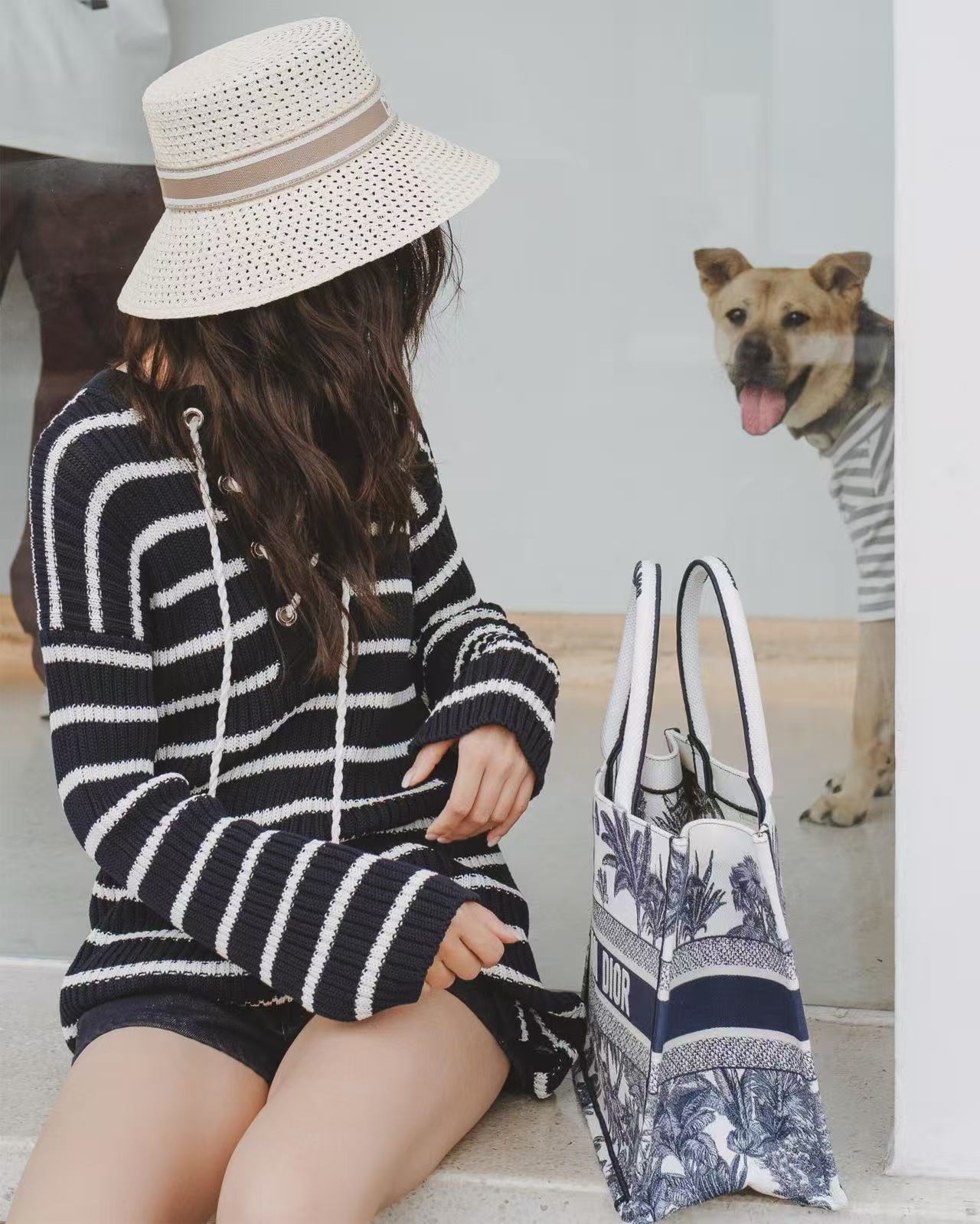 經典黑白配色+綁帶設計,優雅又隨性。棉質針織材質透氣舒適,輕薄不鬆垮,早秋穿搭超合適!