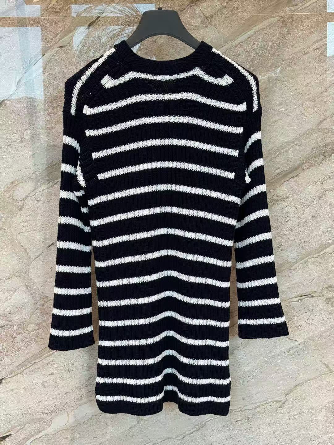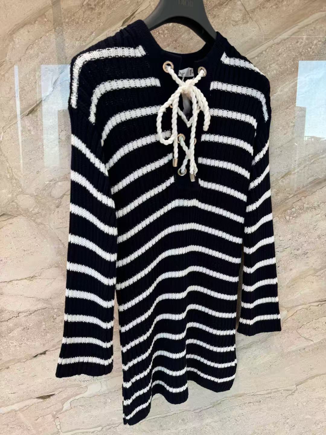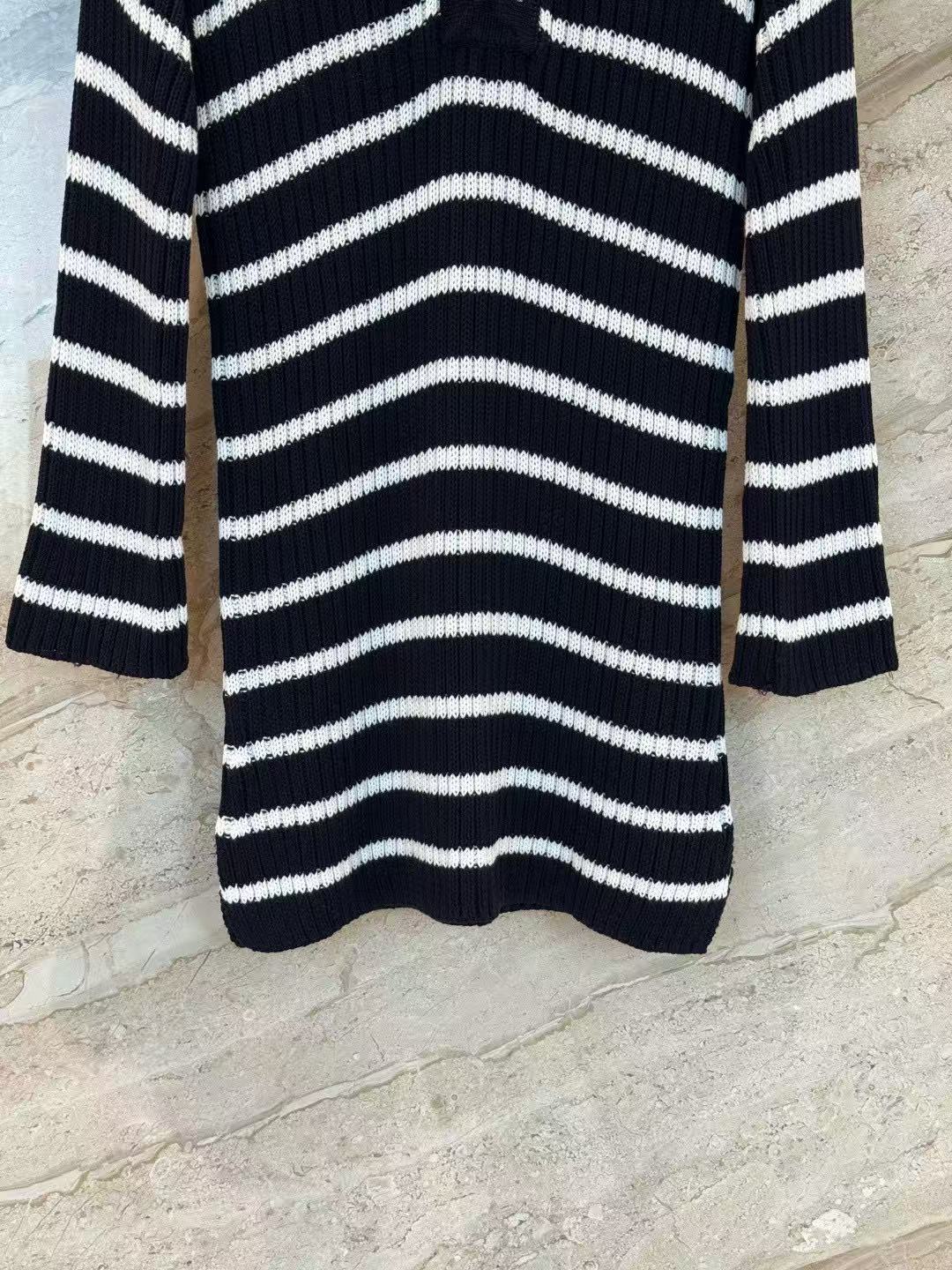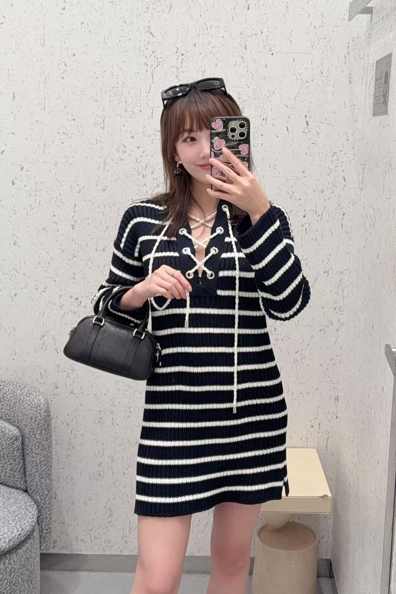 雙十一重磅福利款-D家 抽繩條紋針織連衣裙