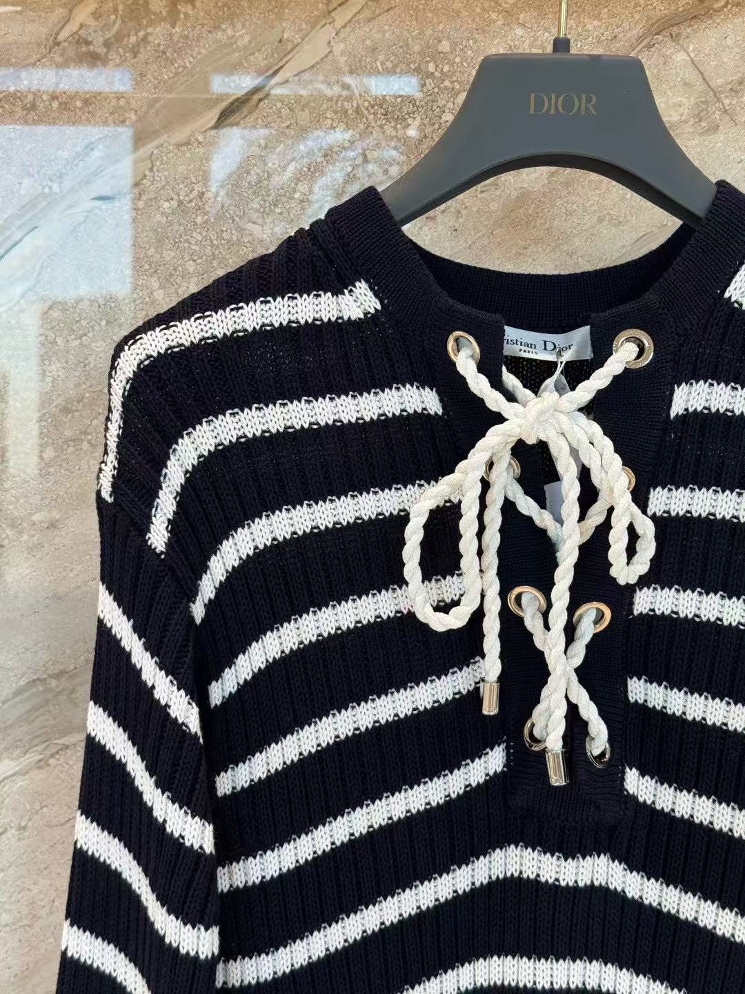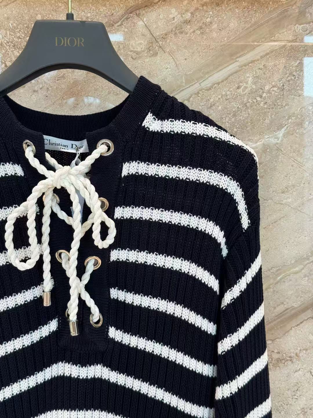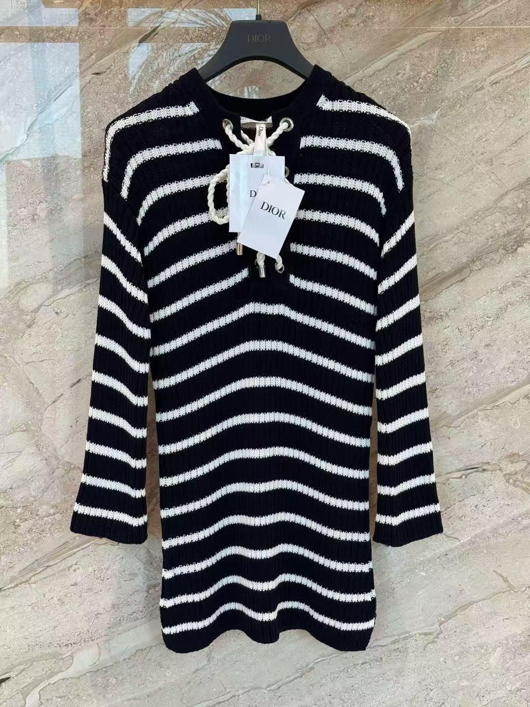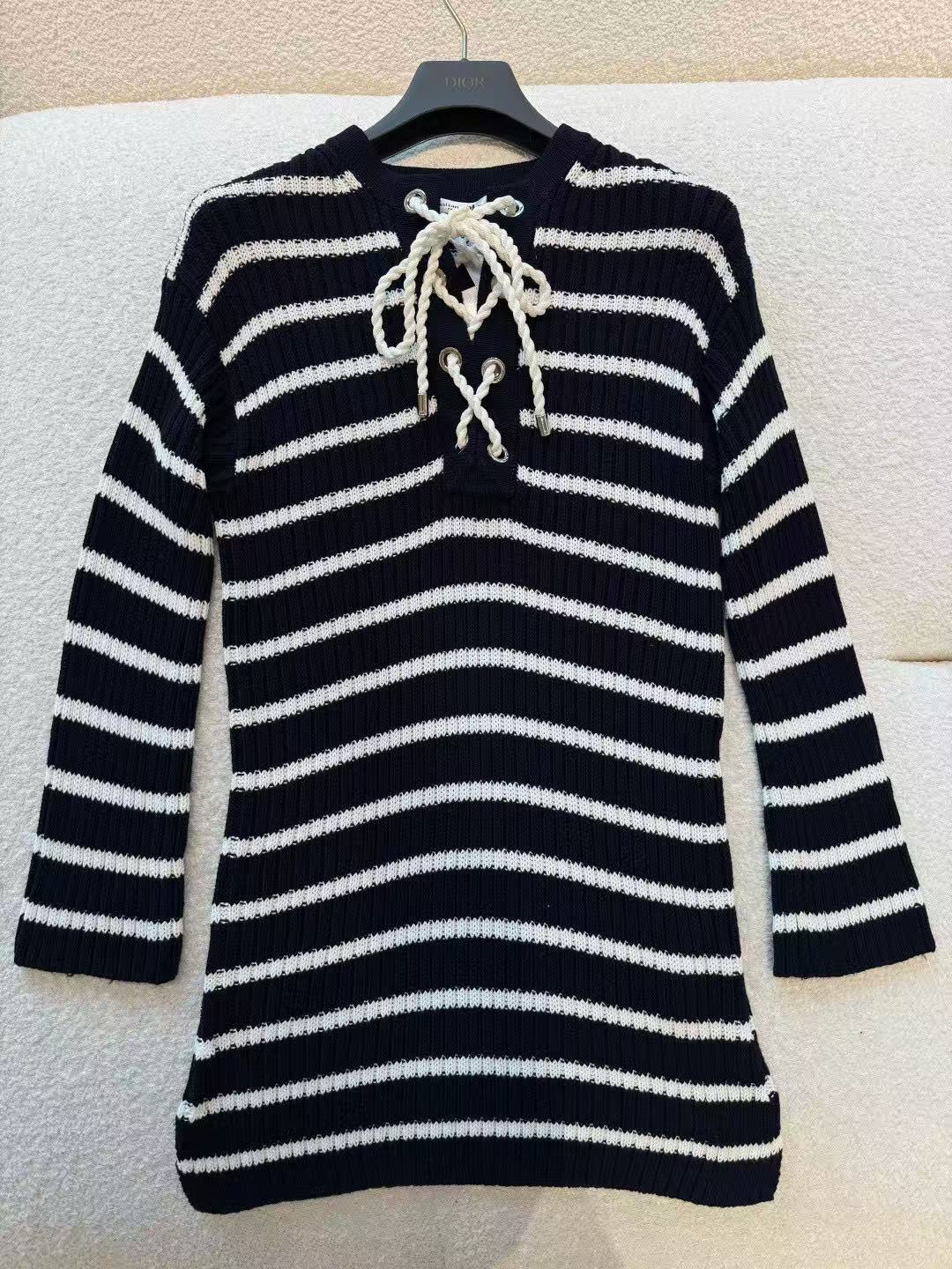 雙十一重磅福利款-D家 抽繩條紋針織連衣裙