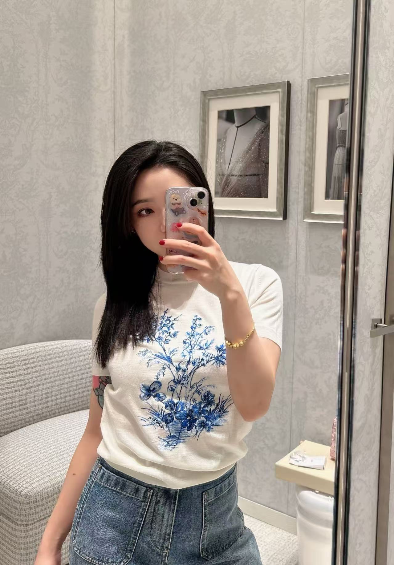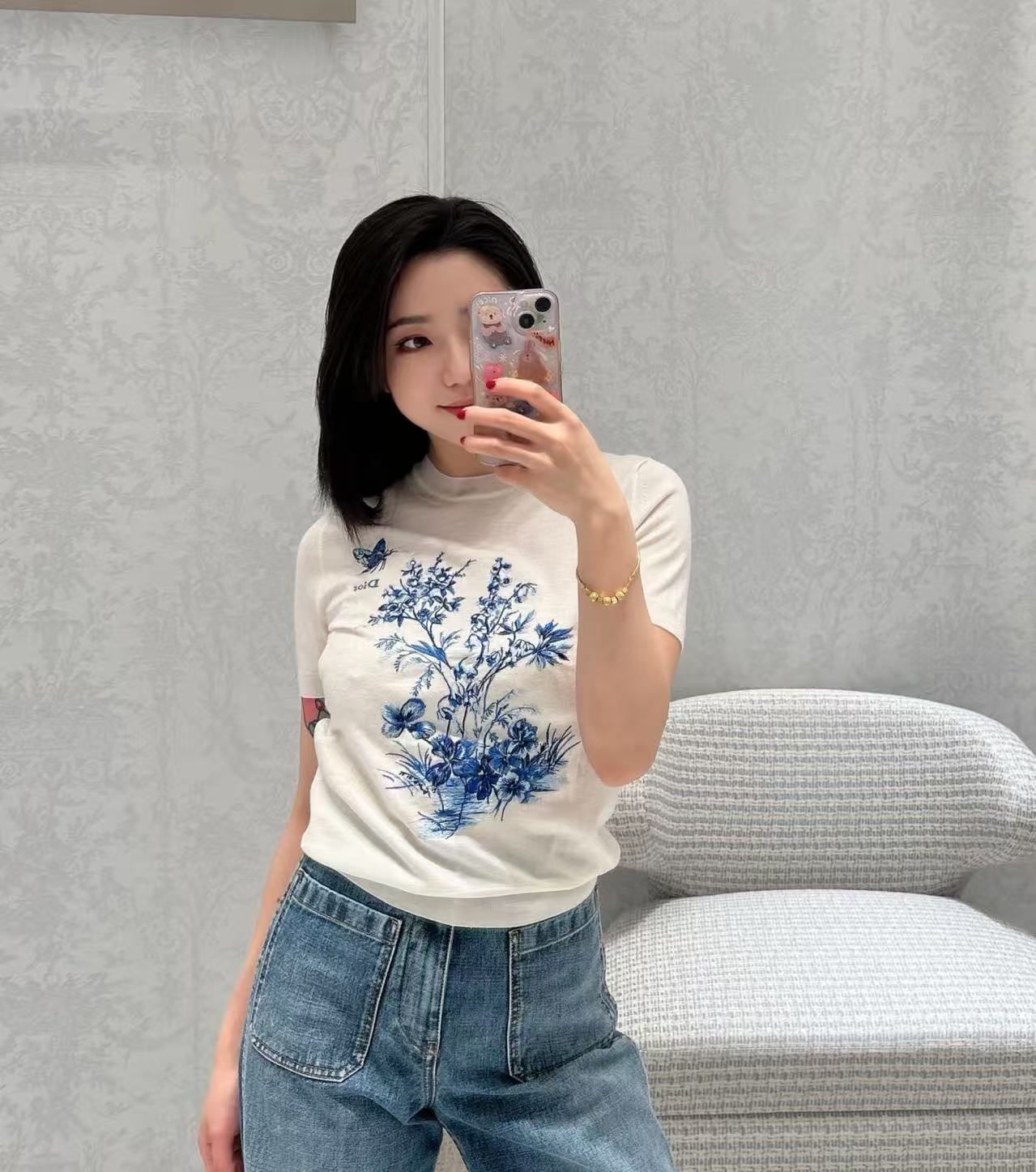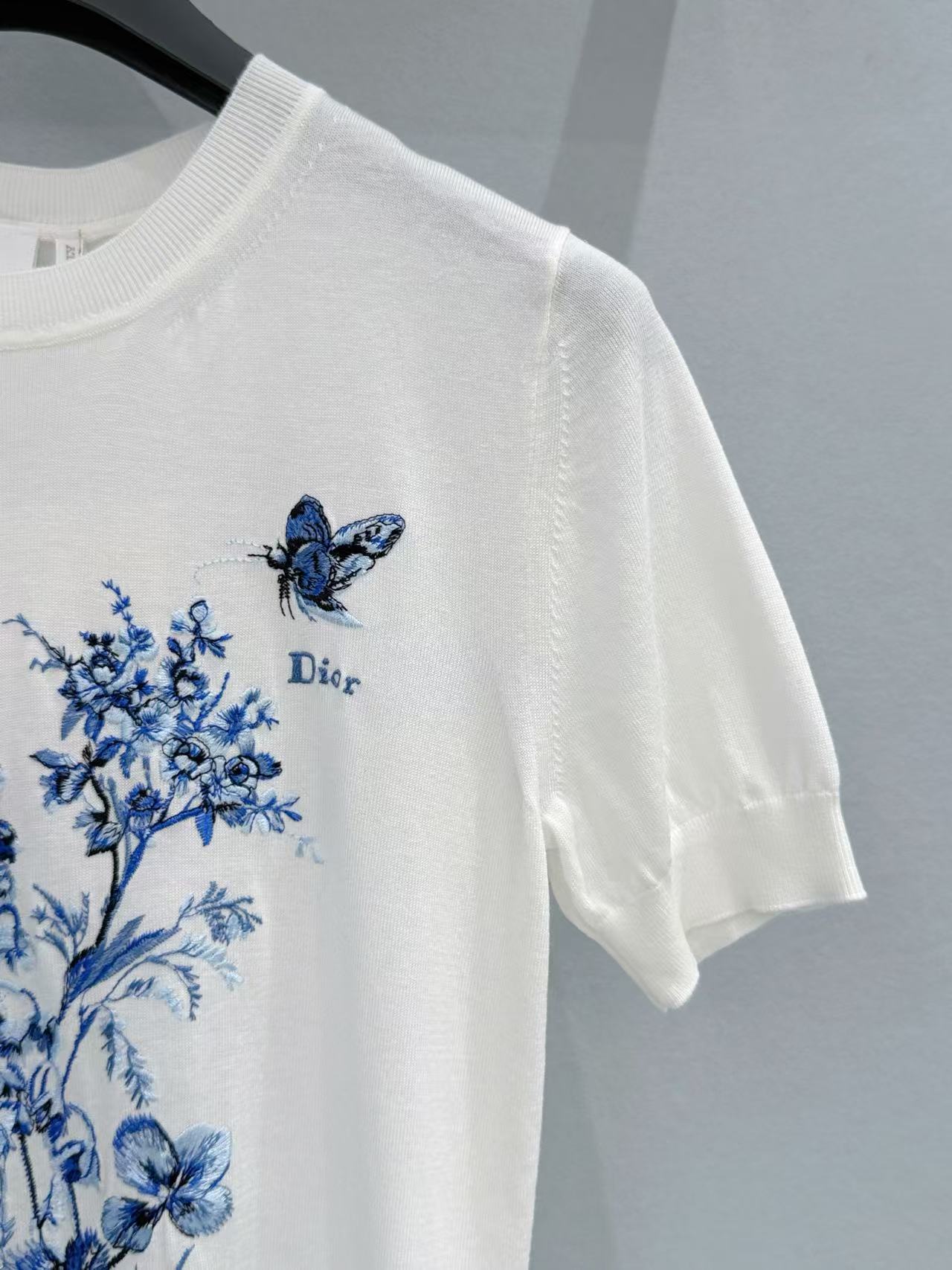2026早春 D家 青花蝴蝶刺繡針織短袖