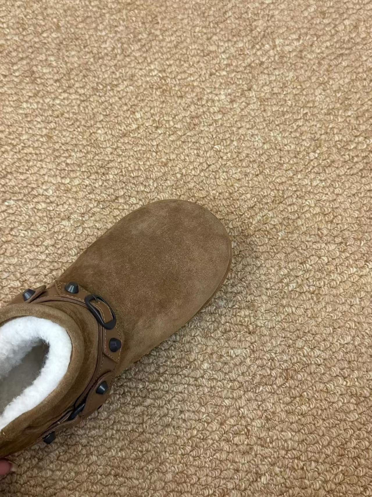 鏤空金屬鉚釘如騎士鎧甲般點綴周圍,瞬間打破雪地靴的慵懶刻板印象,注入搖滾機車的硬朗不羁,完美詮釋「甜酷」混搭風格。