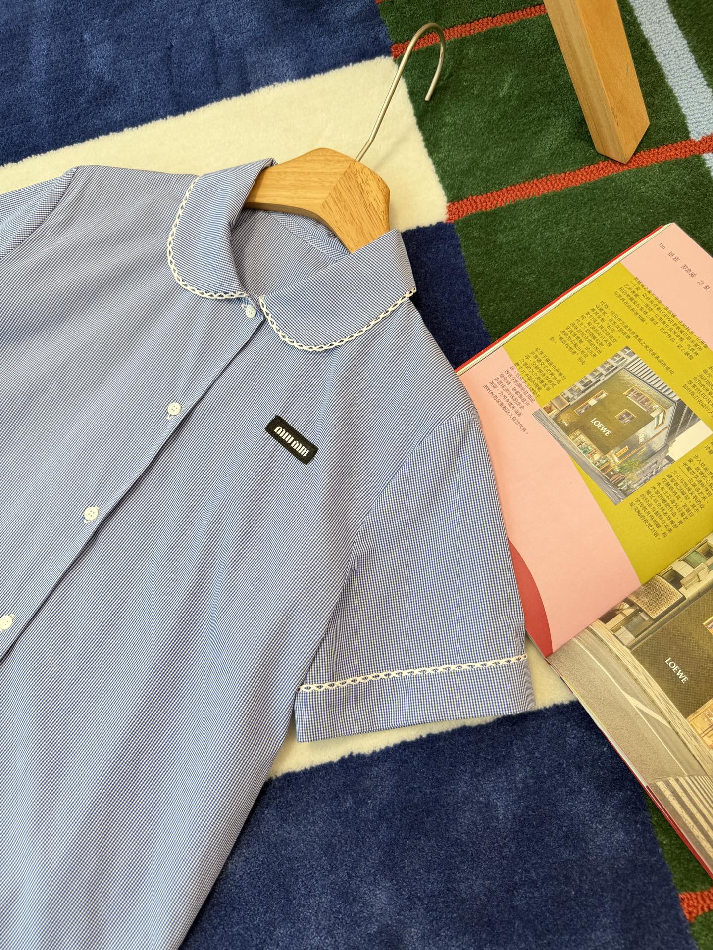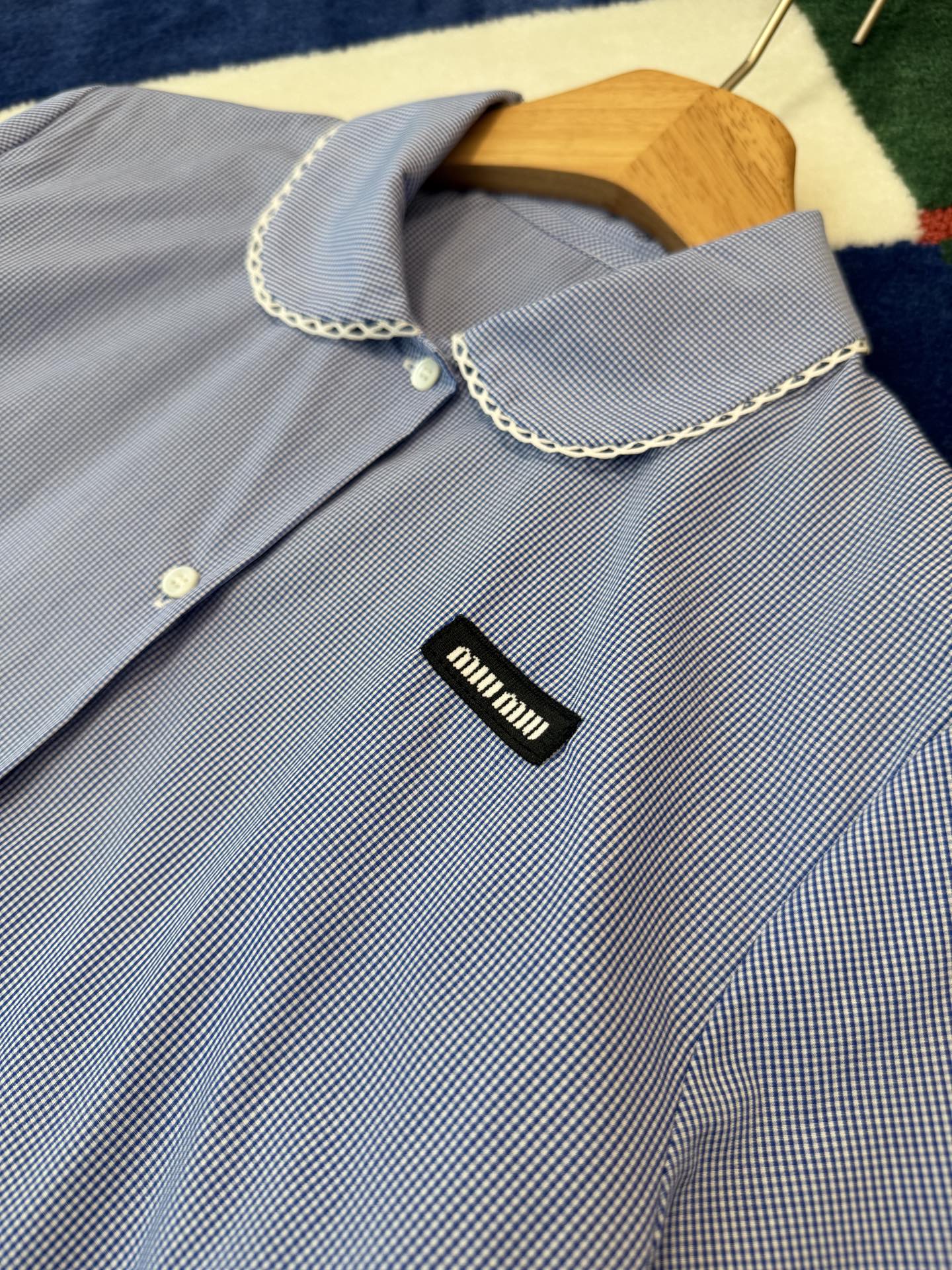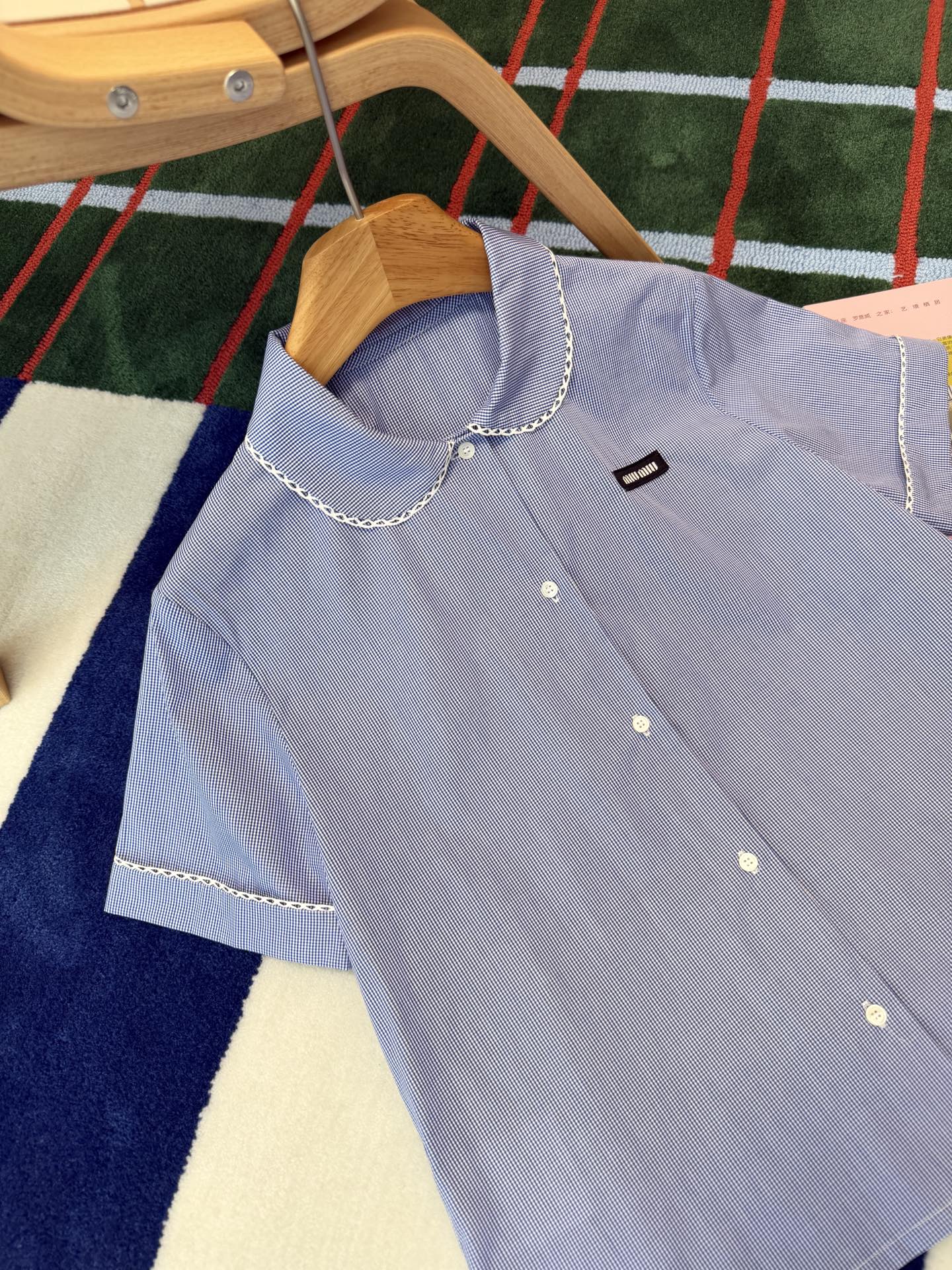 2026早春新品 Miu家 淺藍格紋娃娃領襯衫