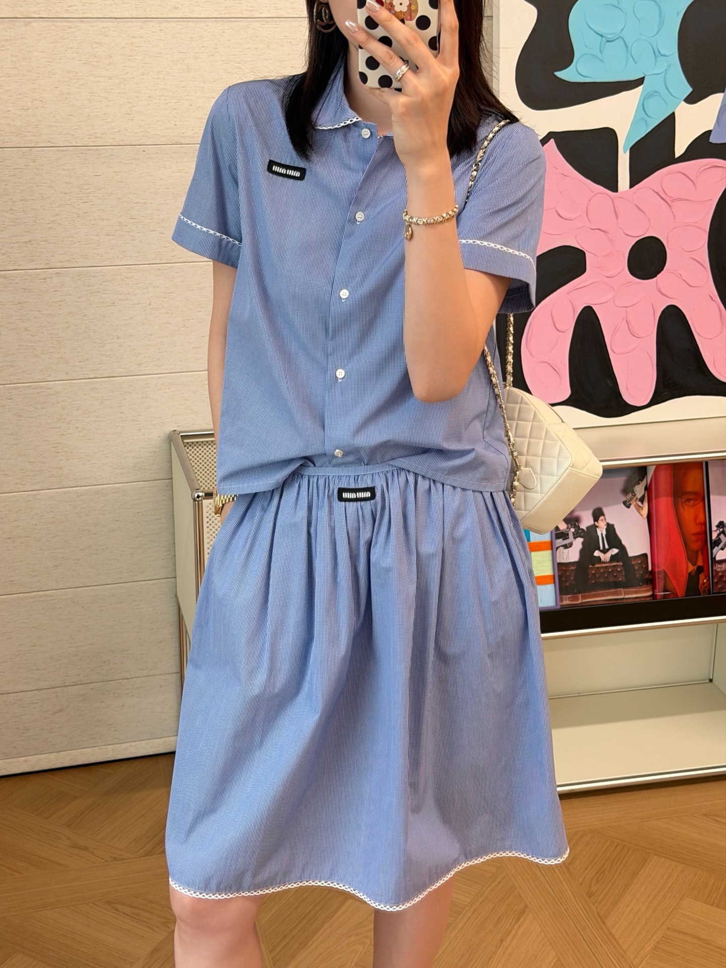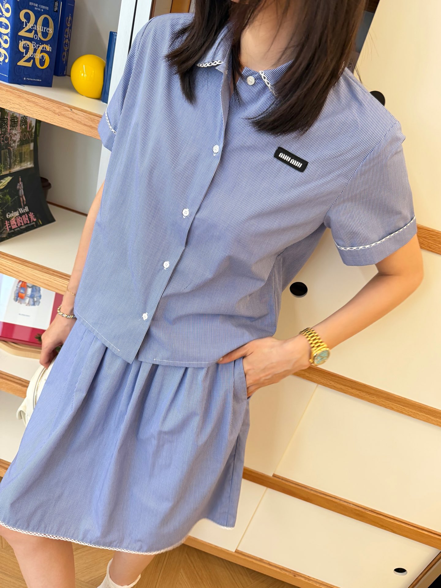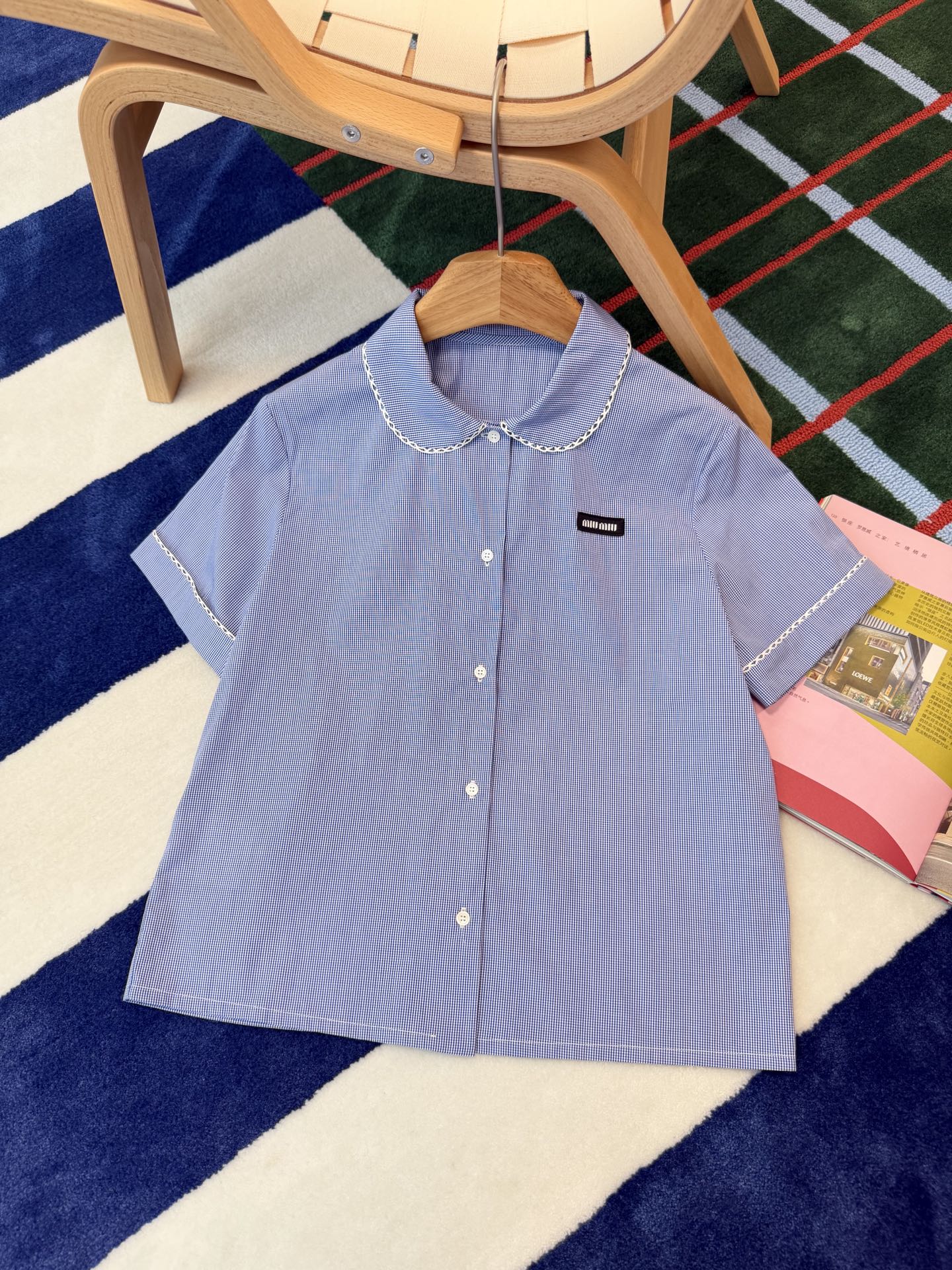 2026早春新品 Miu家 淺藍格紋娃娃領襯衫
