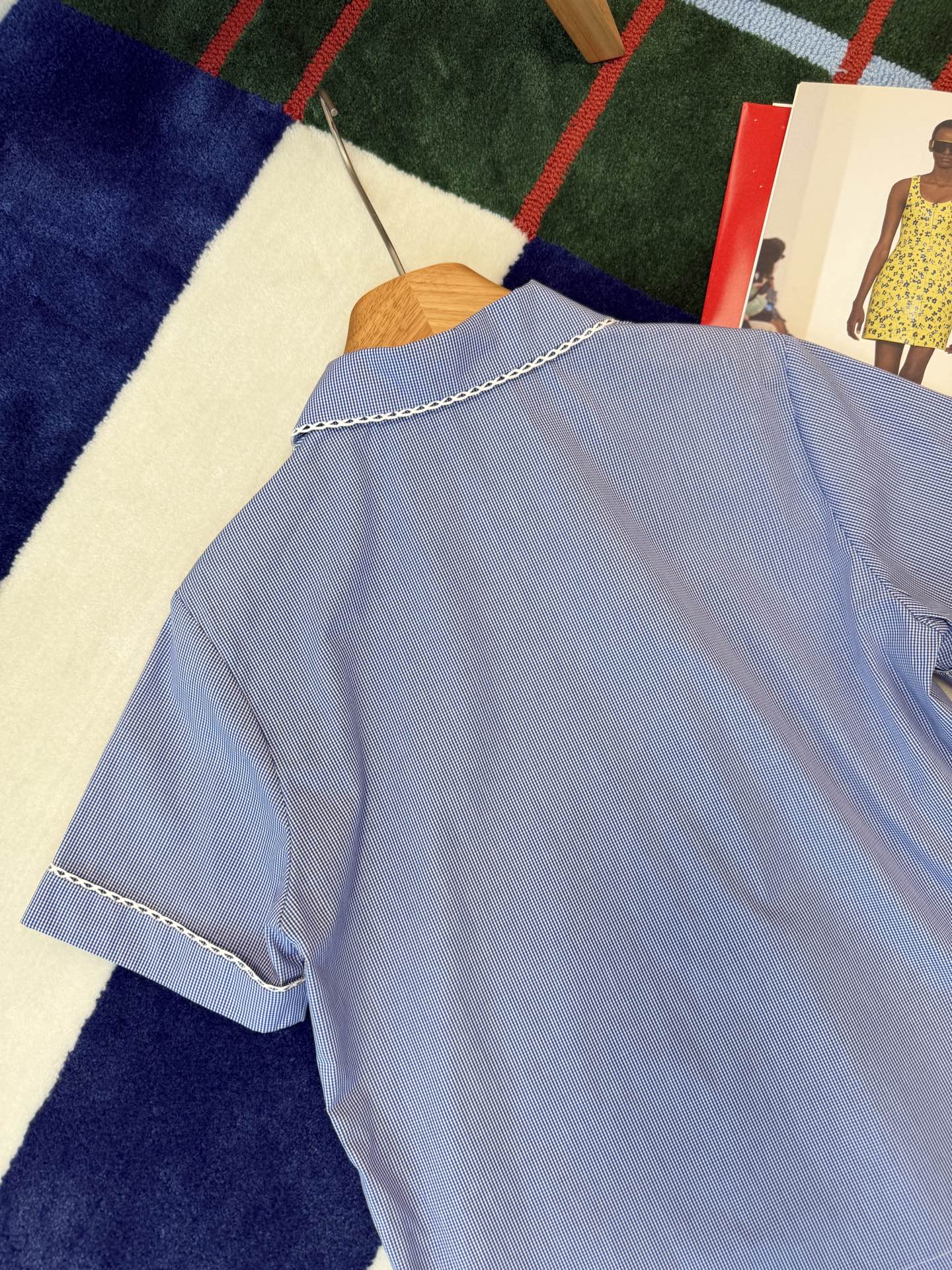 這件淺藍格紋娃娃領襯衫真的很值得入手,是那種一穿上就自帶清新氣質的單品。
