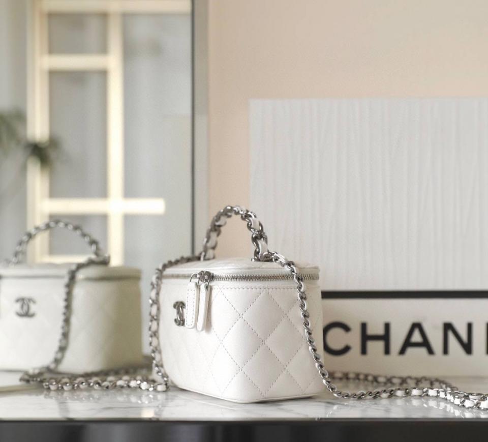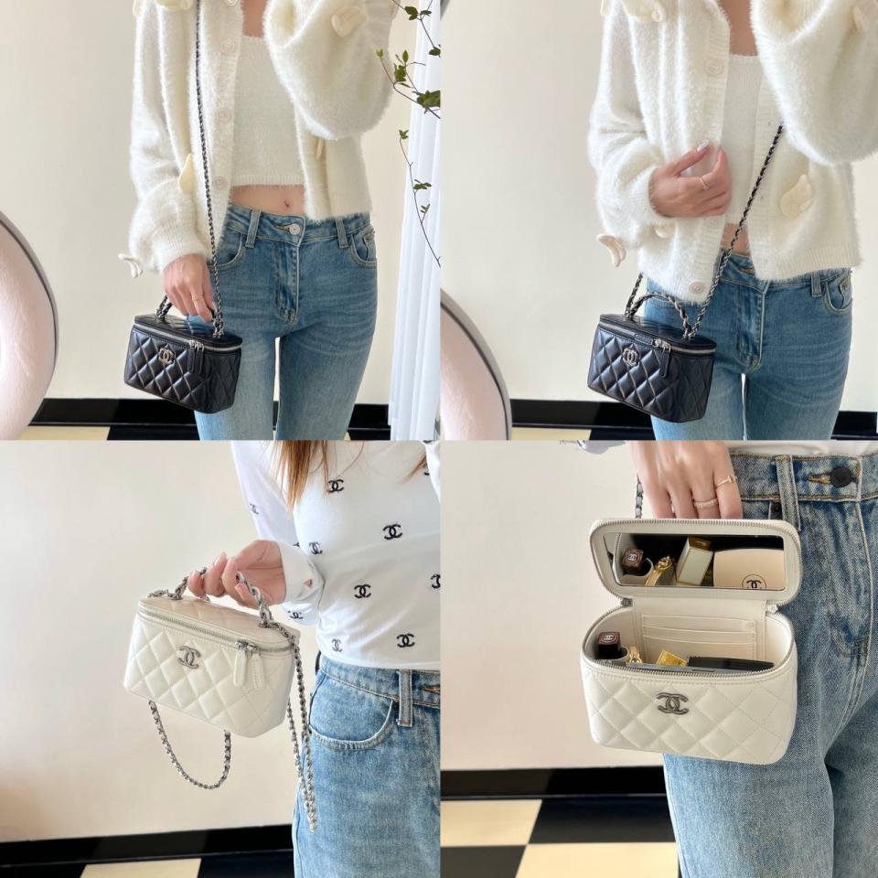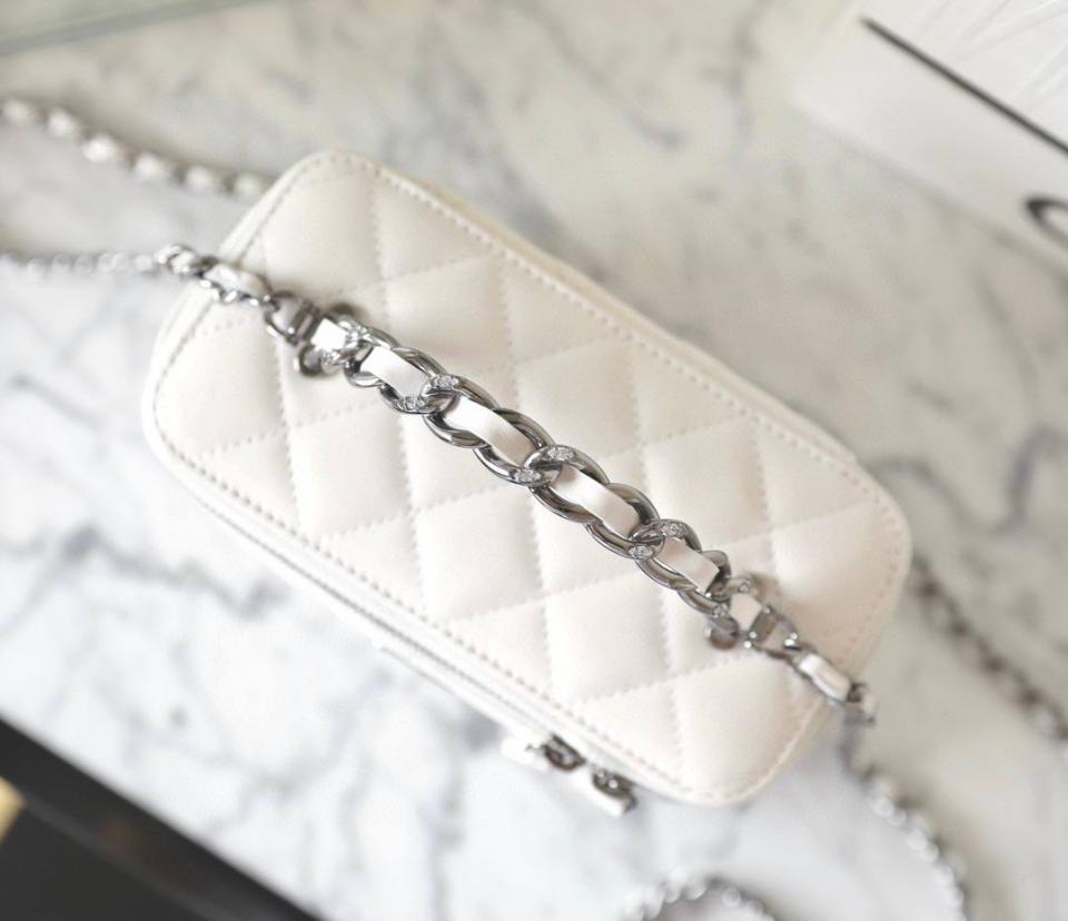 包包使用亮面小牛皮裡面自帶鏡子,隨時可方便補妝,低調優雅的銀色手柄鑲嵌小鑽石高級又精緻
