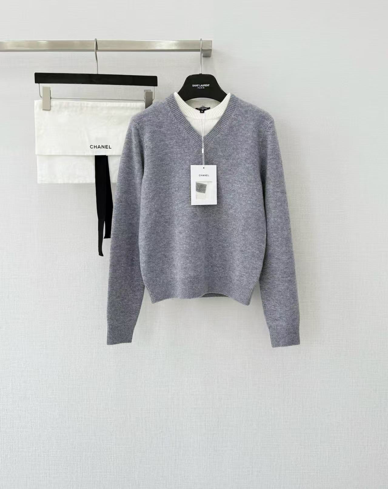 2026早春新品 C家 假兩件疊穿針織毛衣