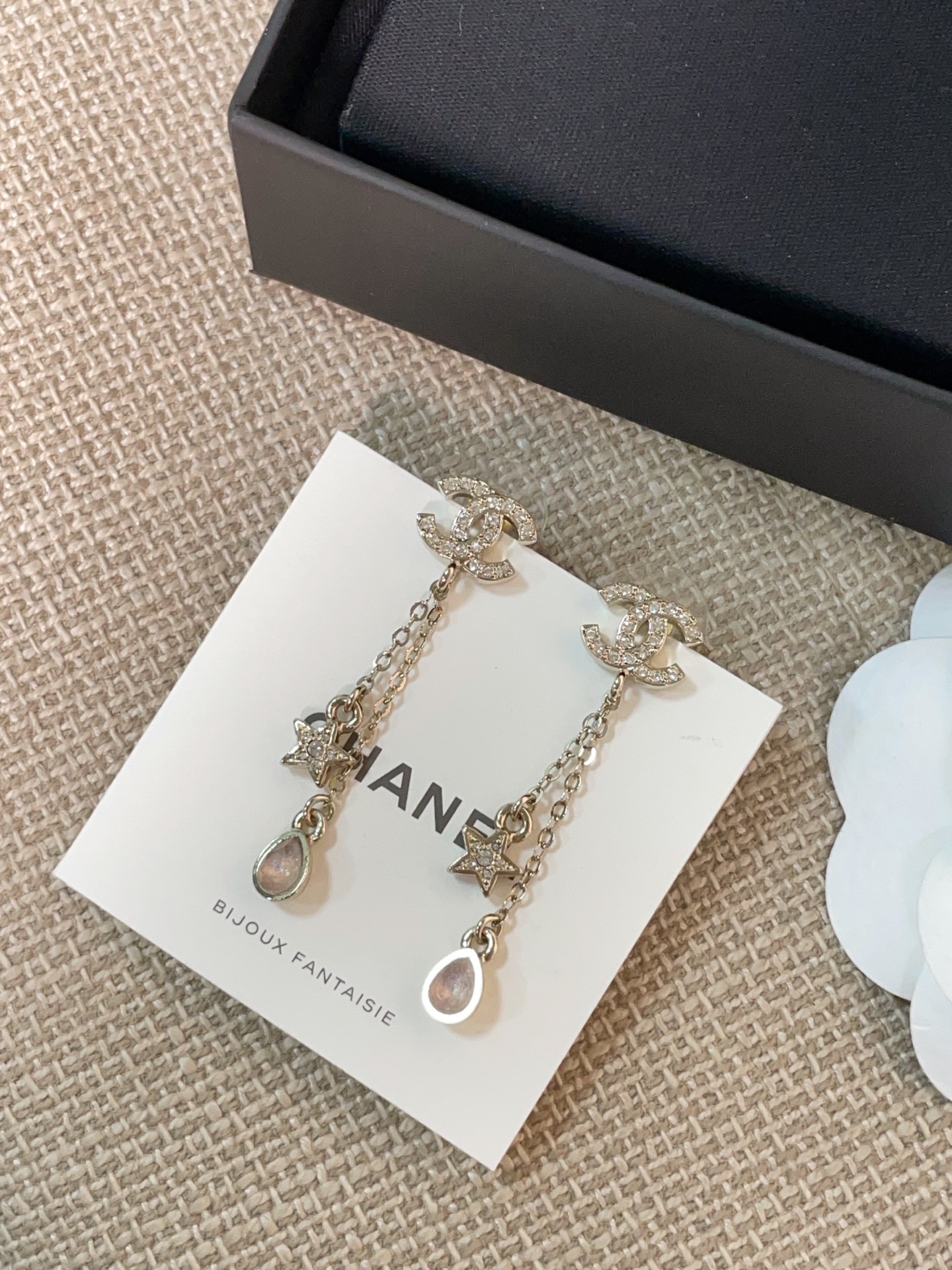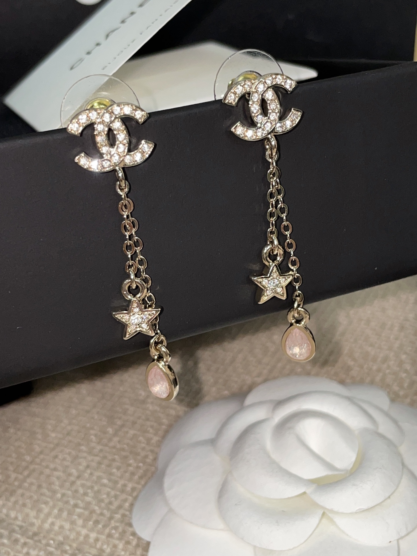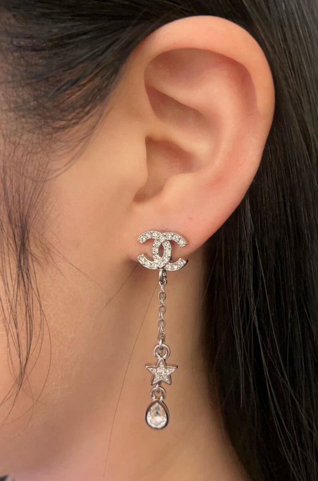 這款是讓人一眼沦陷的存在,真的會讓女生看到直接心動。五角星、雙 C Logo、細緻水滴鑽的組合,優雅又帶點甜美,戴上立刻散發「富家千金」般的精緻氣質。