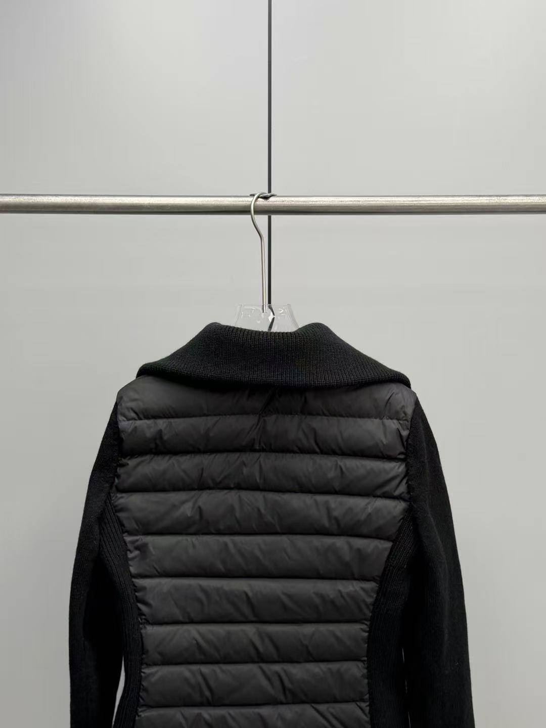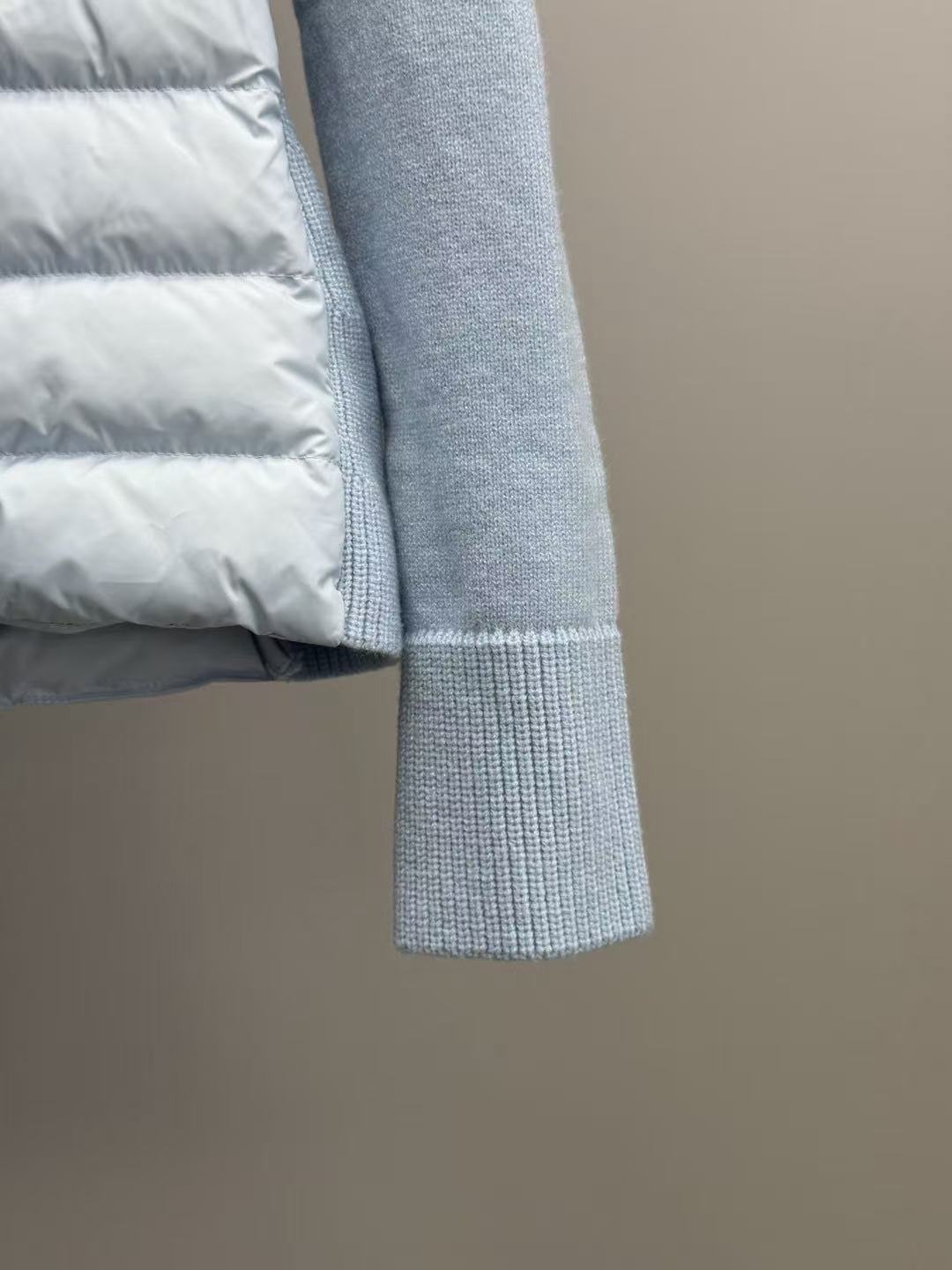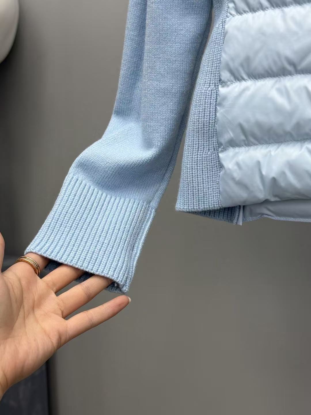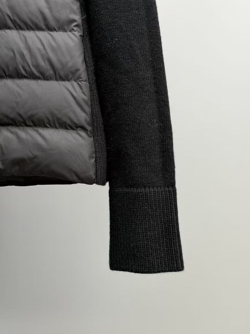 最瘋狂的當然是那「針織+羽絨無縫拼接」!針織不是裝飾,是真的羊毛混紡長袖+後片,羽絨部分高蓬鬆白鵝絨+超細尼龍防鑽絨,兩種材質完美過渡,完全看不出接縫,穿起來像訂製一樣服貼,強迫症看了會直接淚崩~