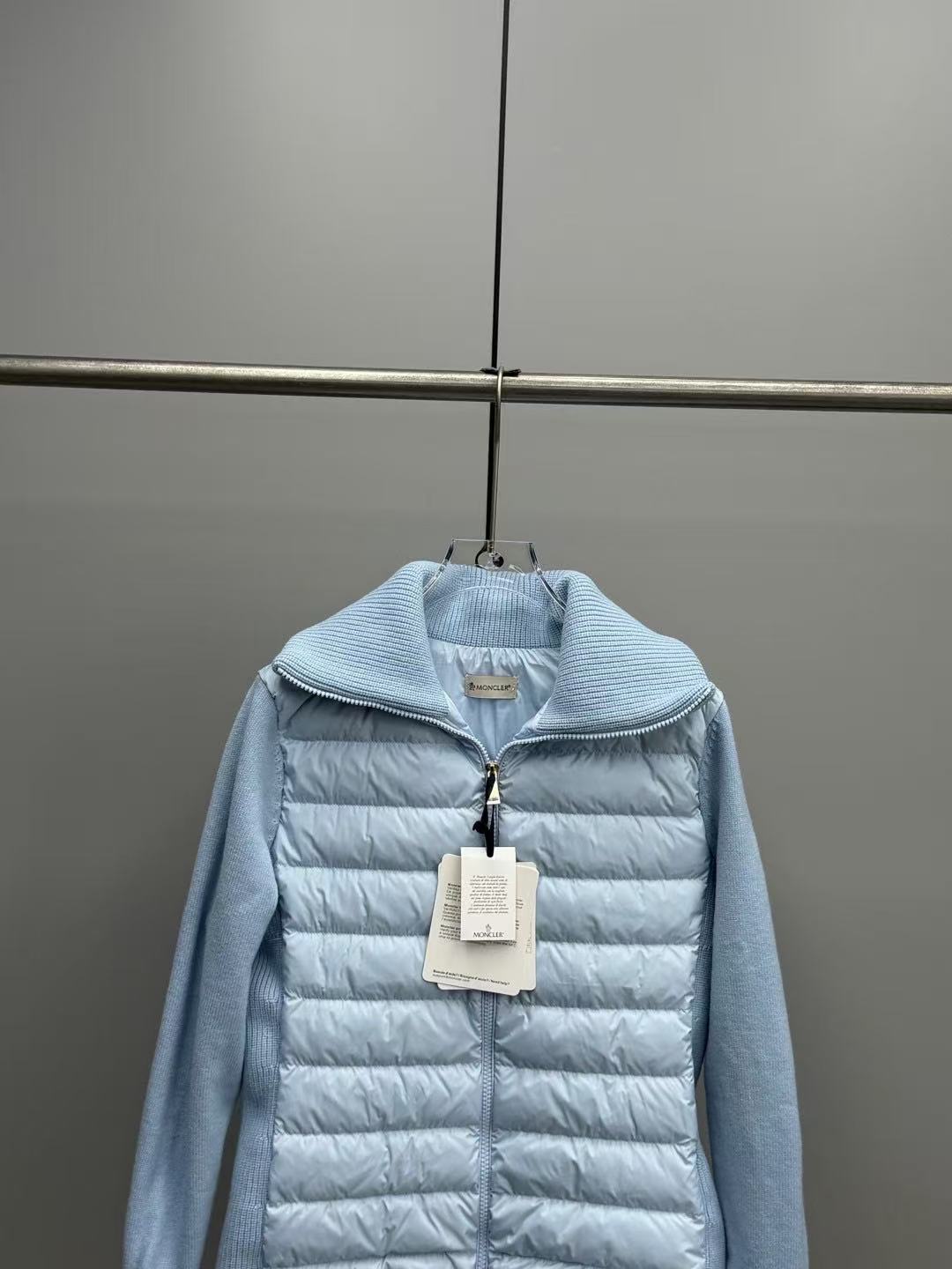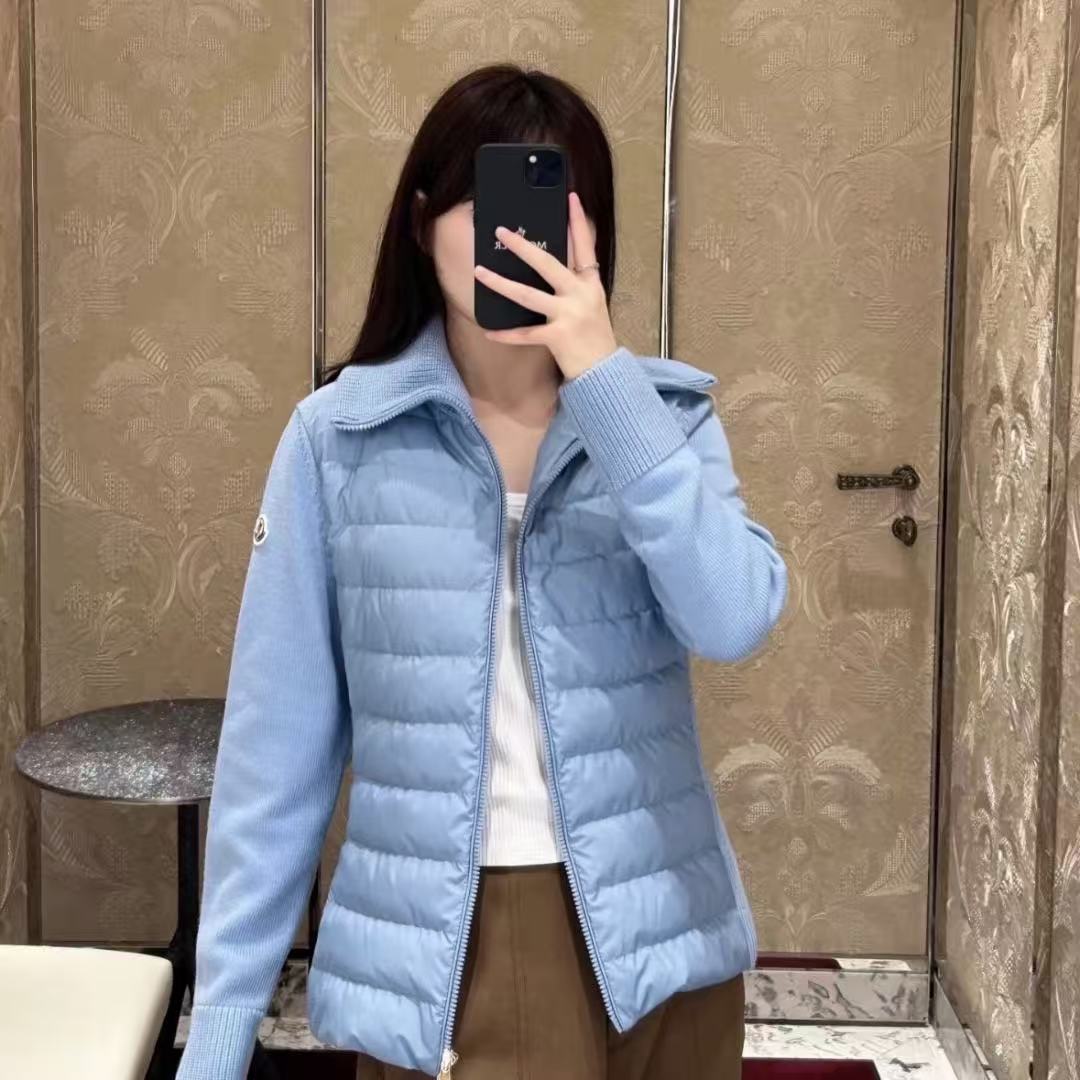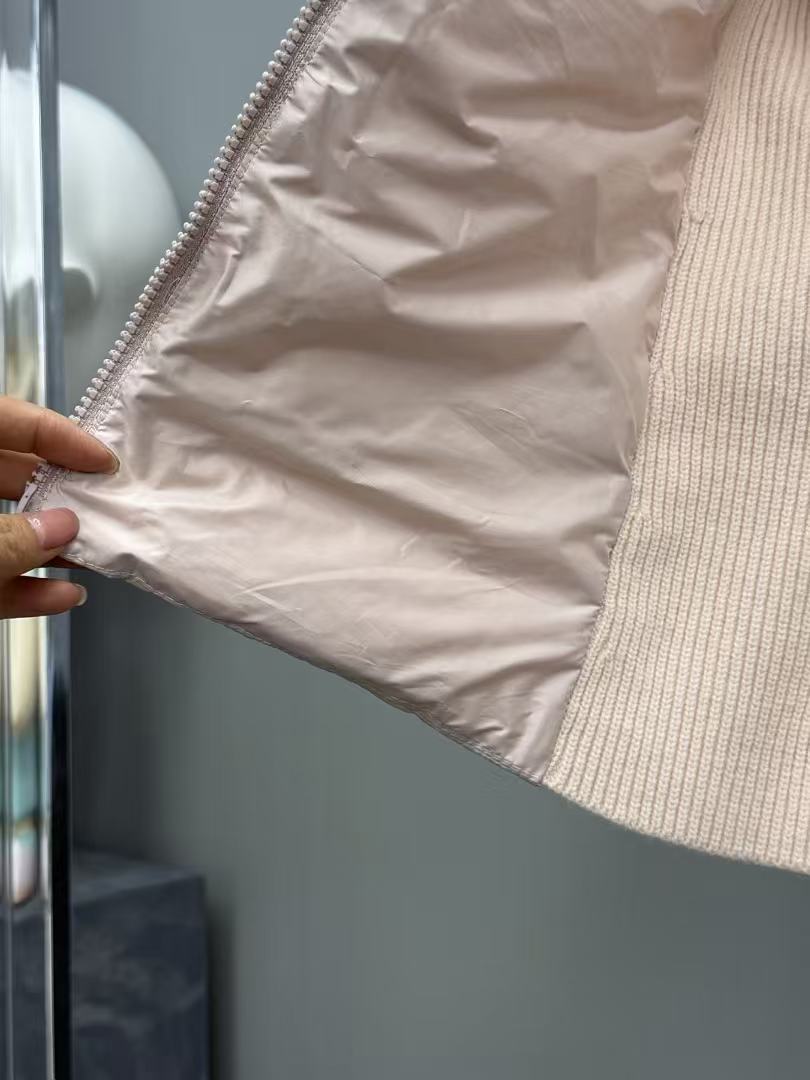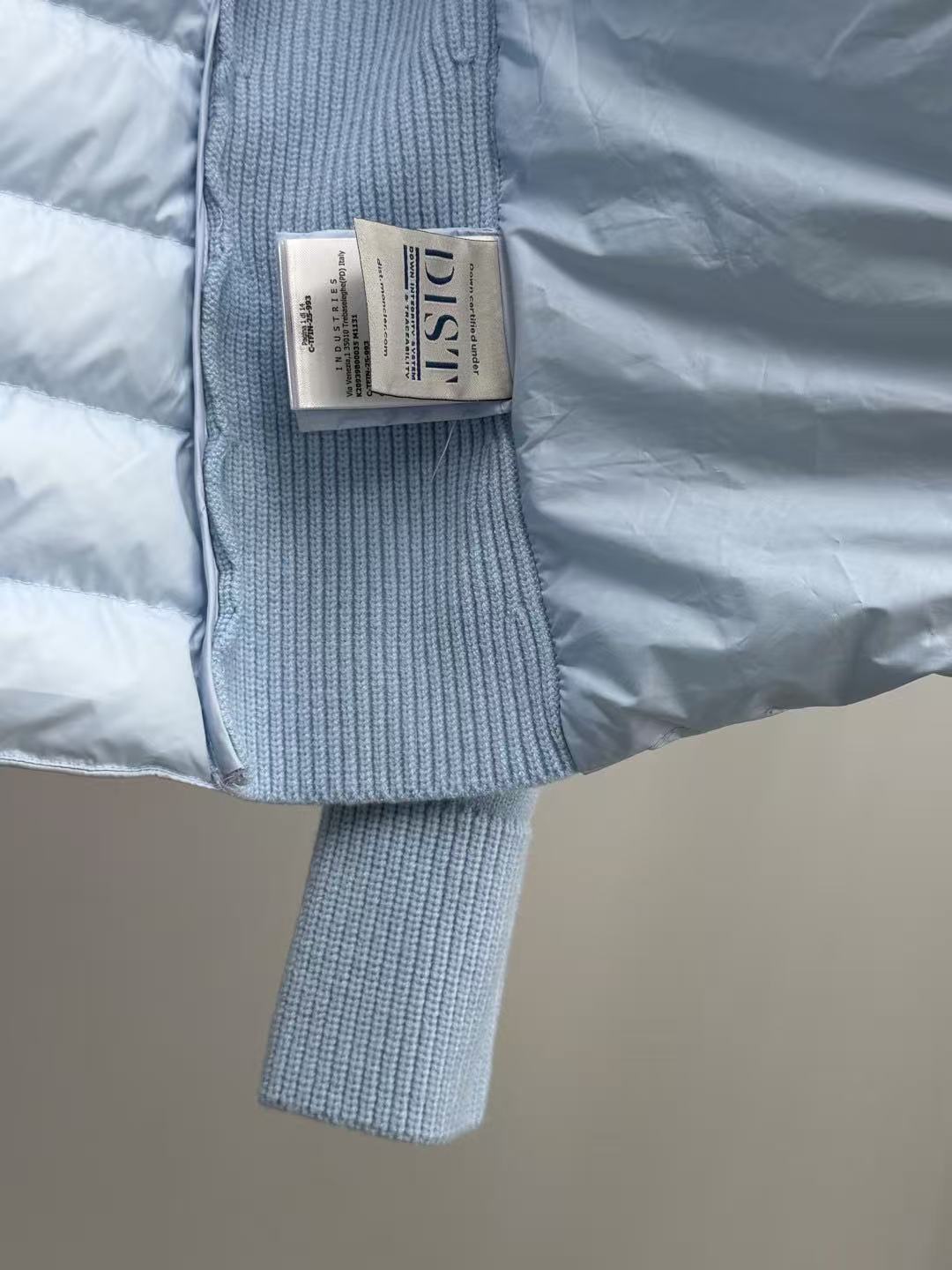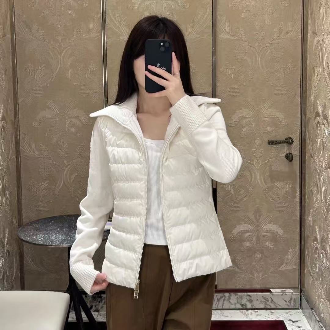 最瘋狂的當然是那「針織+羽絨無縫拼接」!針織不是裝飾,是真的羊毛混紡長袖+後片,羽絨部分高蓬鬆白鵝絨+超細尼龍防鑽絨,兩種材質完美過渡,完全看不出接縫,穿起來像訂製一樣服貼,強迫症看了會直接淚崩~