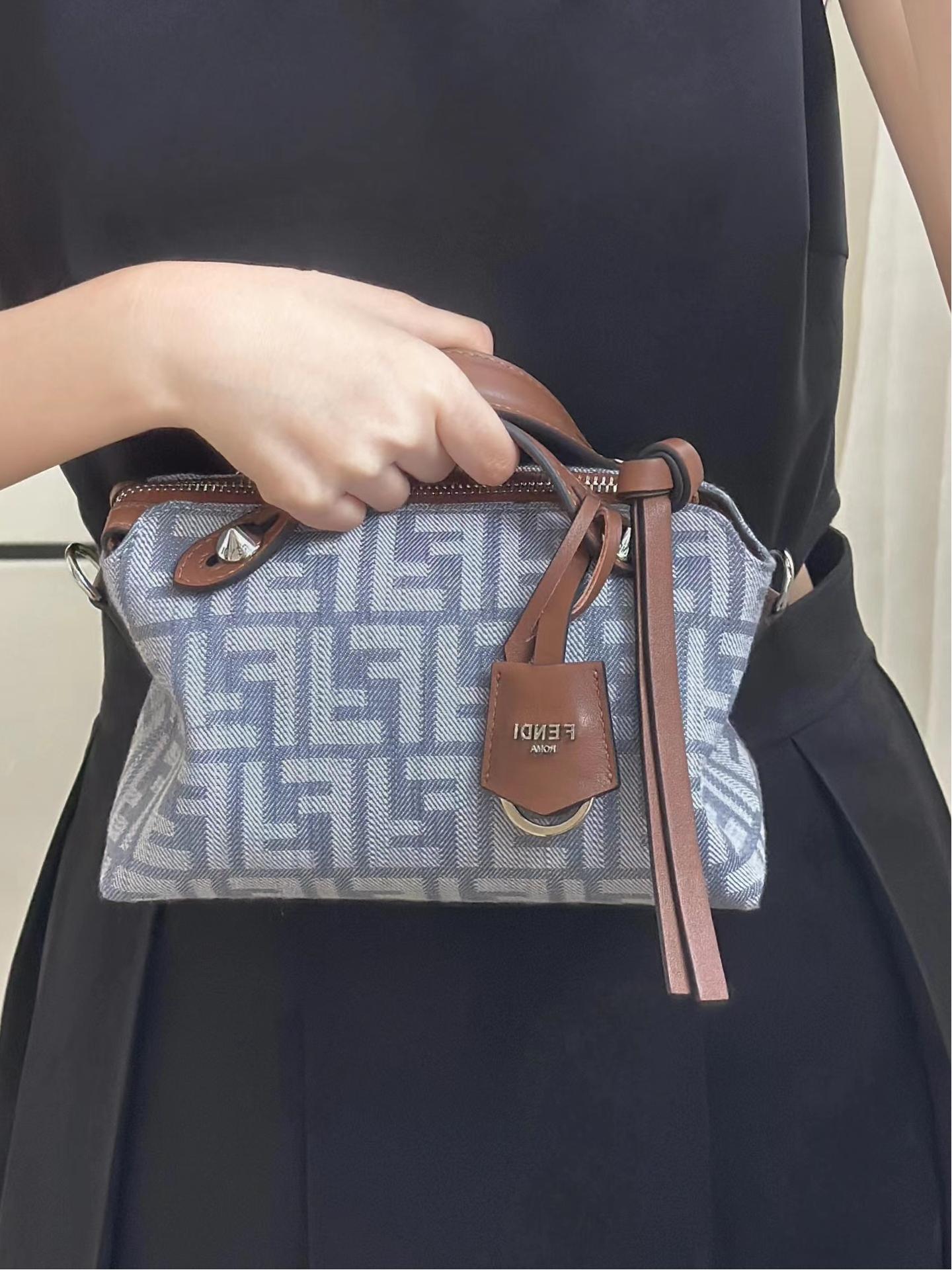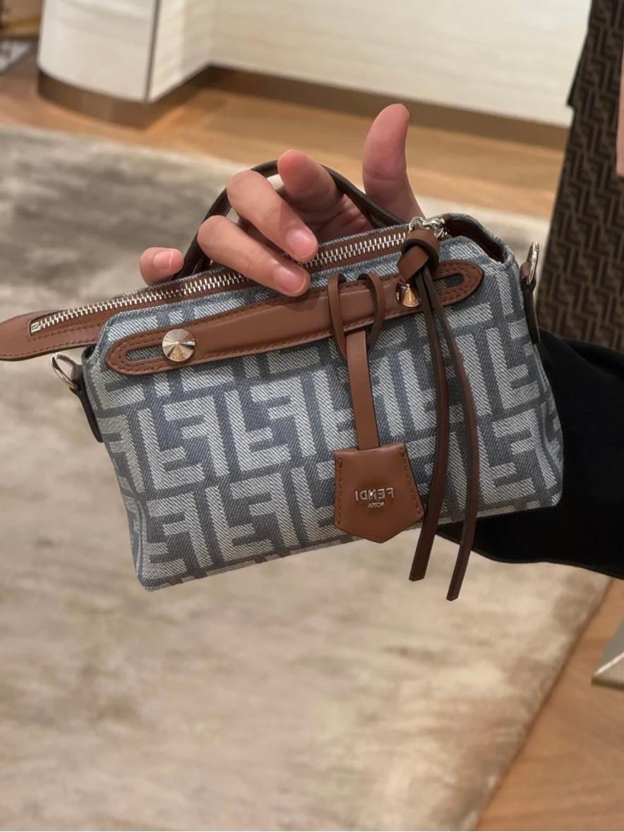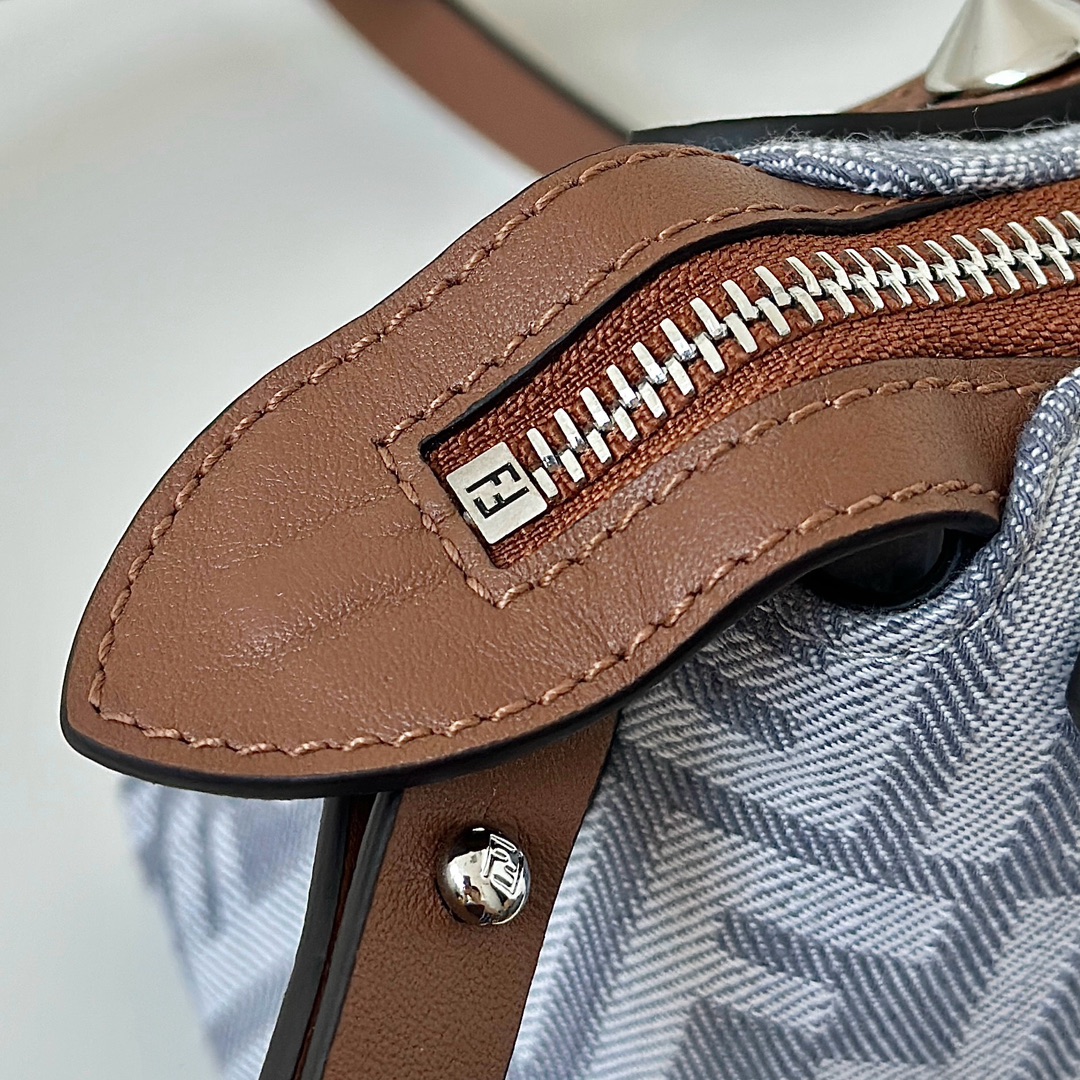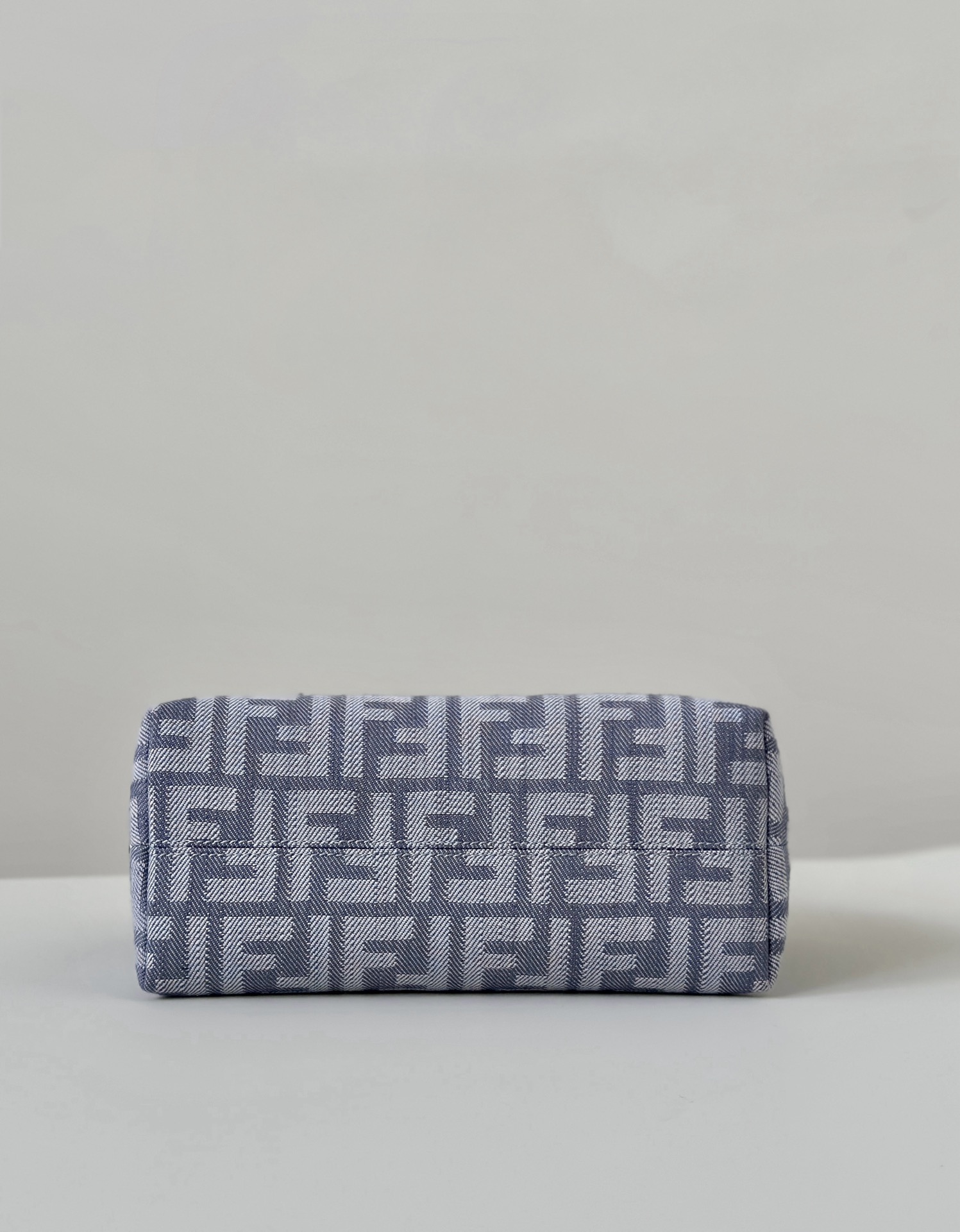 包身選用牛仔提花材質製作,結合經典雙 F logo,展現一貫的高級質感。雙提把設計搭配可拆卸肩背帶,依造型或穿搭自由變換,手提展現幹練俐落、肩背則更添休閒灑脫。