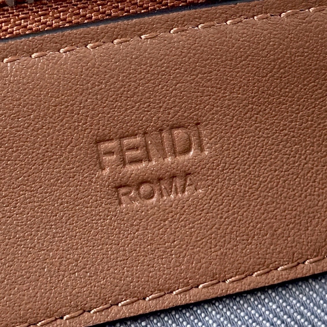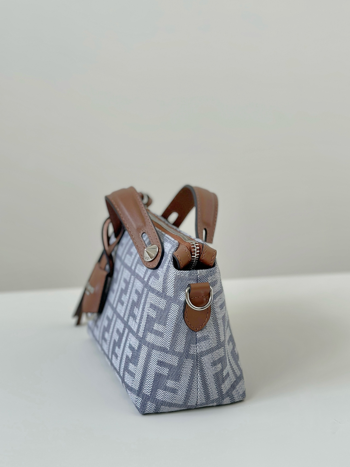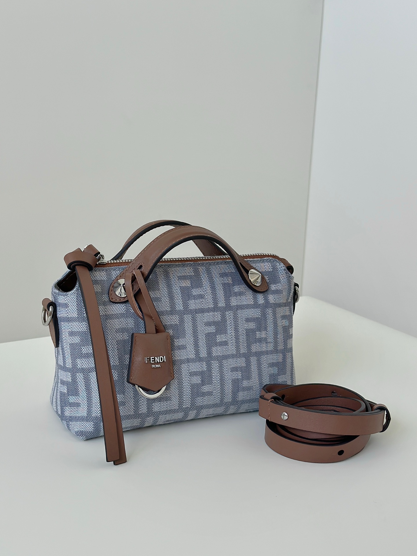 包身選用牛仔提花材質製作,結合經典雙 F logo,展現一貫的高級質感。雙提把設計搭配可拆卸肩背帶,依造型或穿搭自由變換,手提展現幹練俐落、肩背則更添休閒灑脫。