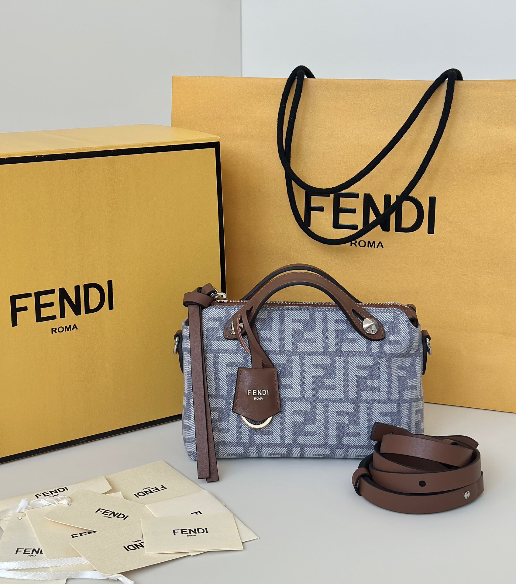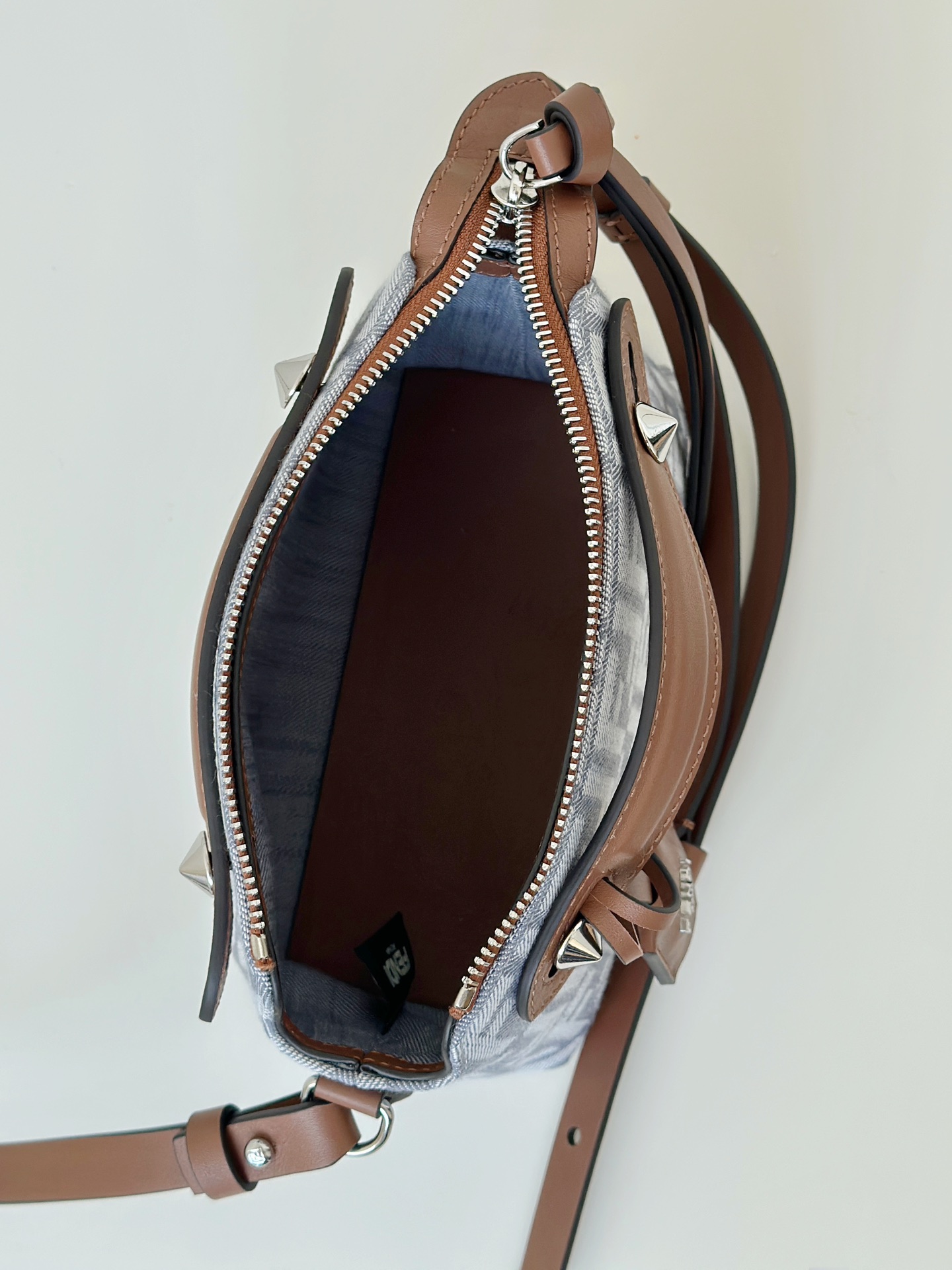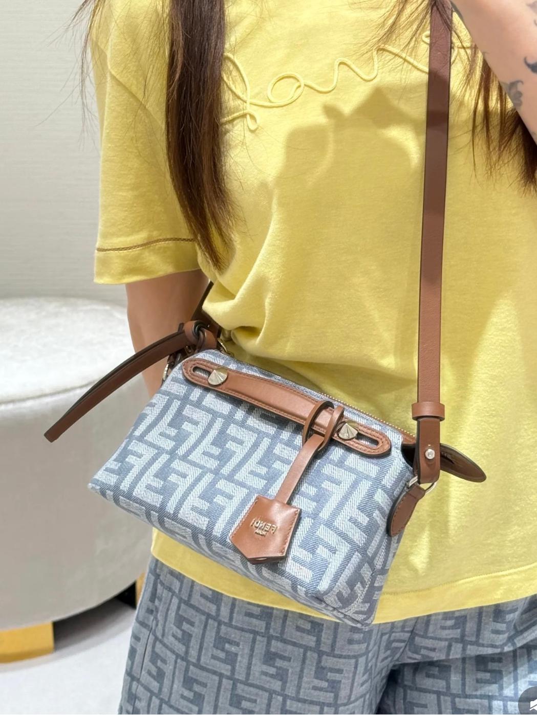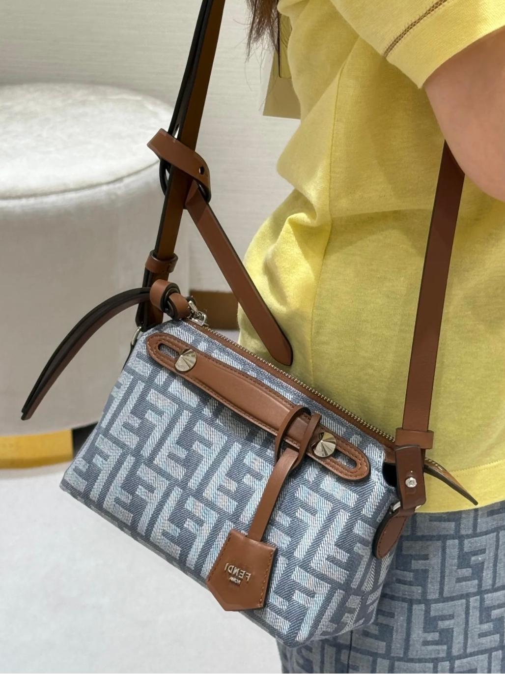 包身選用牛仔提花材質製作,結合經典雙 F logo,展現一貫的高級質感。雙提把設計搭配可拆卸肩背帶,依造型或穿搭自由變換,手提展現幹練俐落、肩背則更添休閒灑脫。