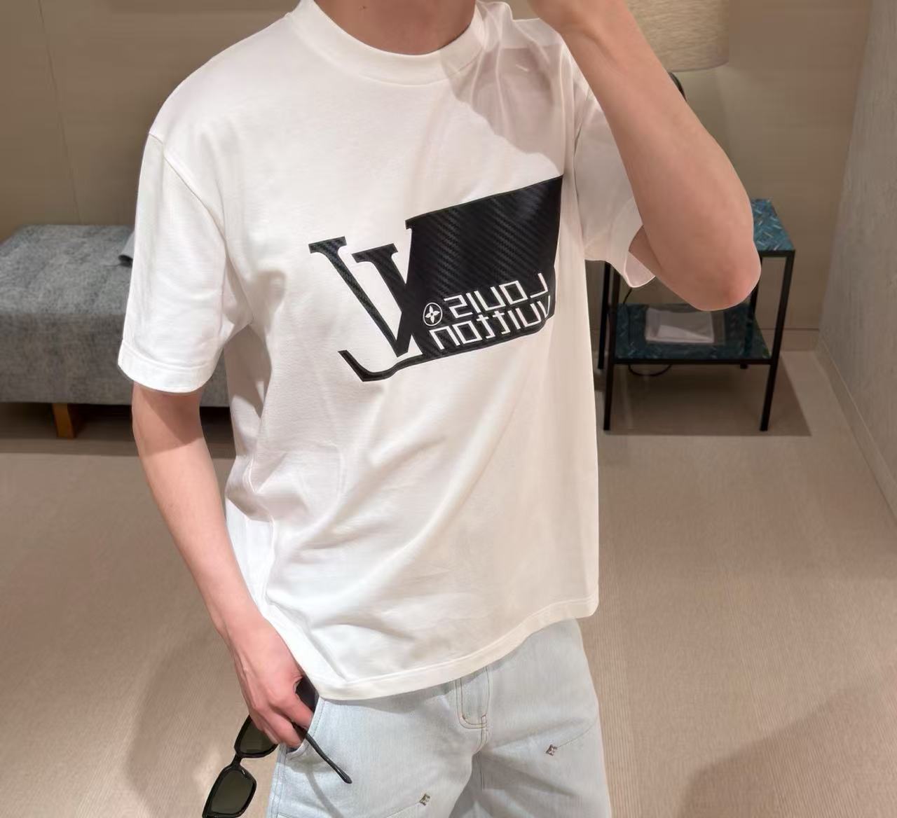 科技感與奢華材質的碰撞始終是品牌拿手好戲。這次分享的 2026 春夏(26SS)碳纖維壓印圓領短袖,將賽車運動中的碳纖維元素以數位化視覺重新轉譯。