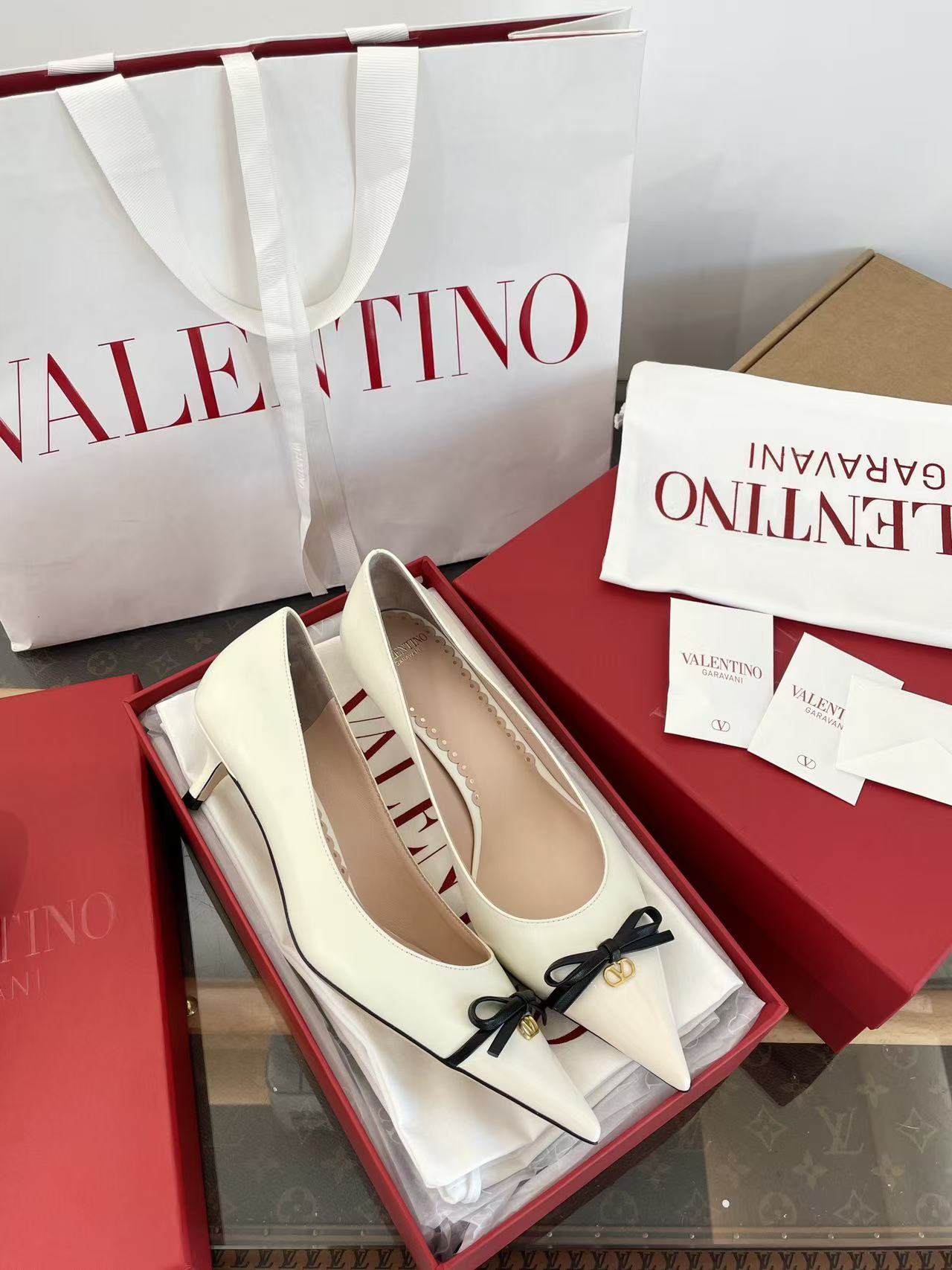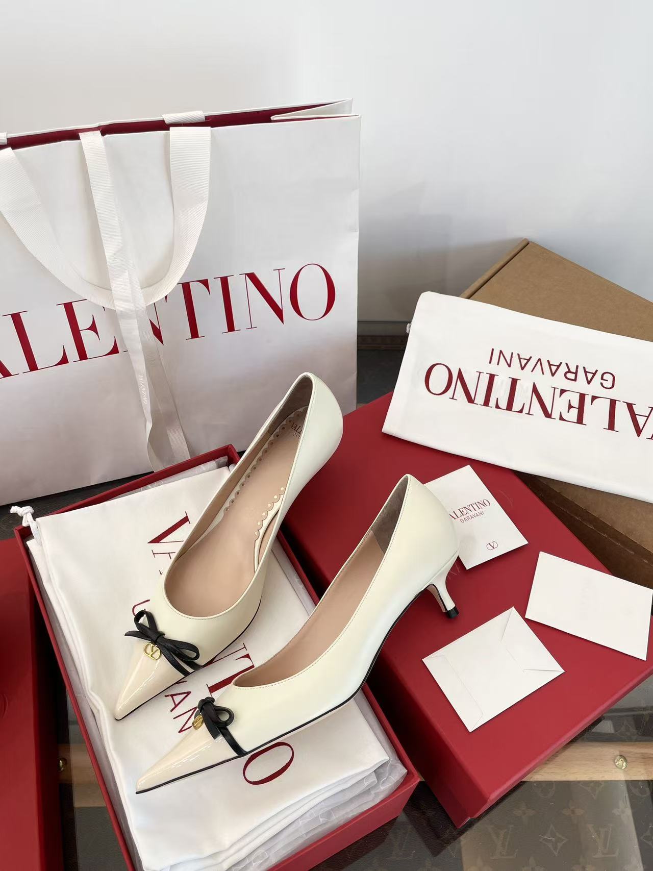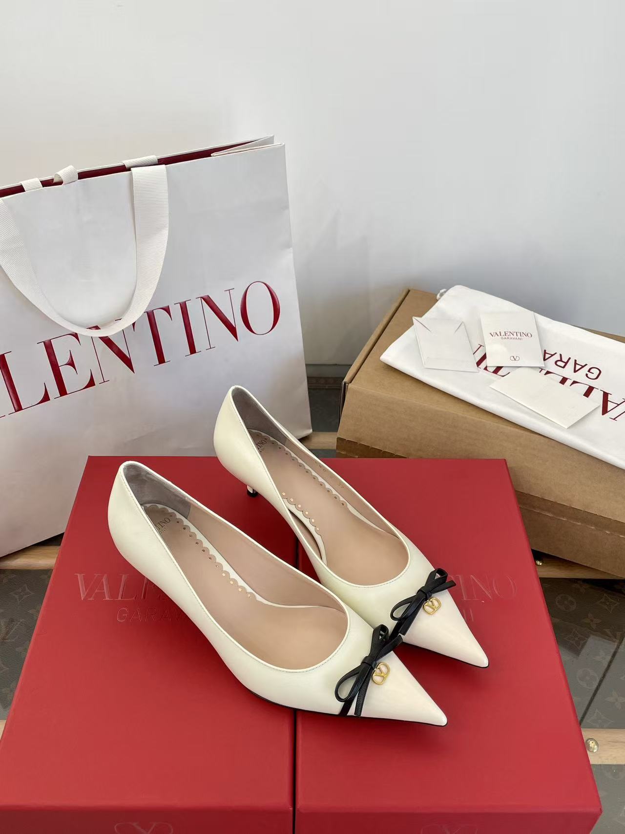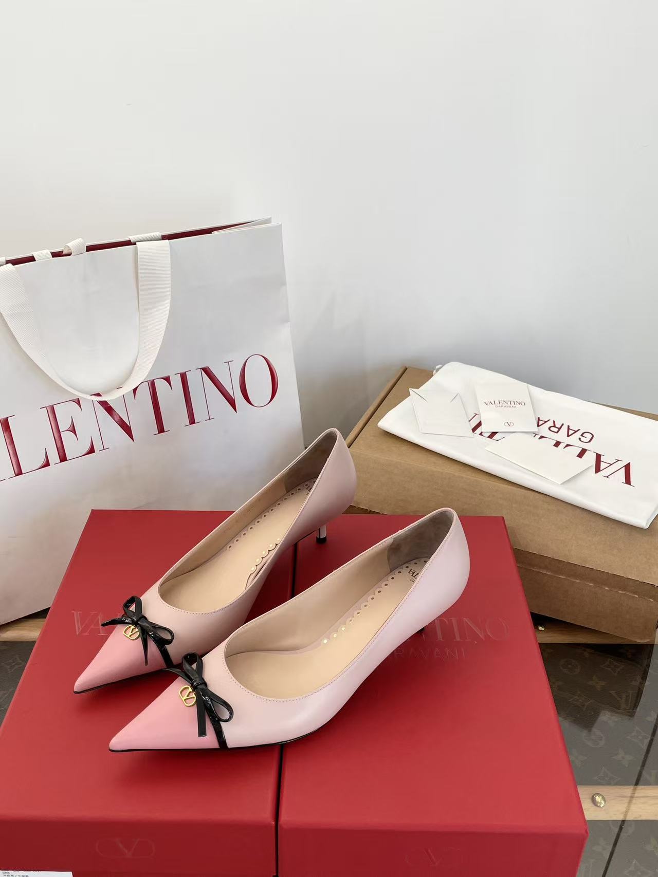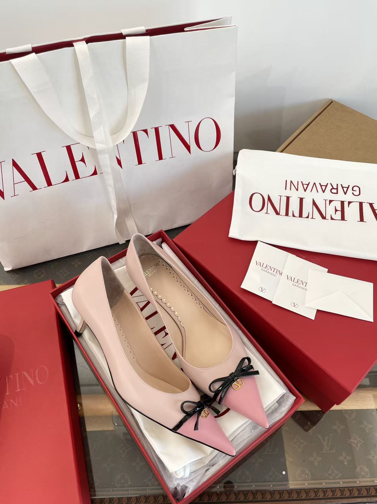 2025秋冬新品 V家 拼色蝴蝶結尖頭貓跟鞋