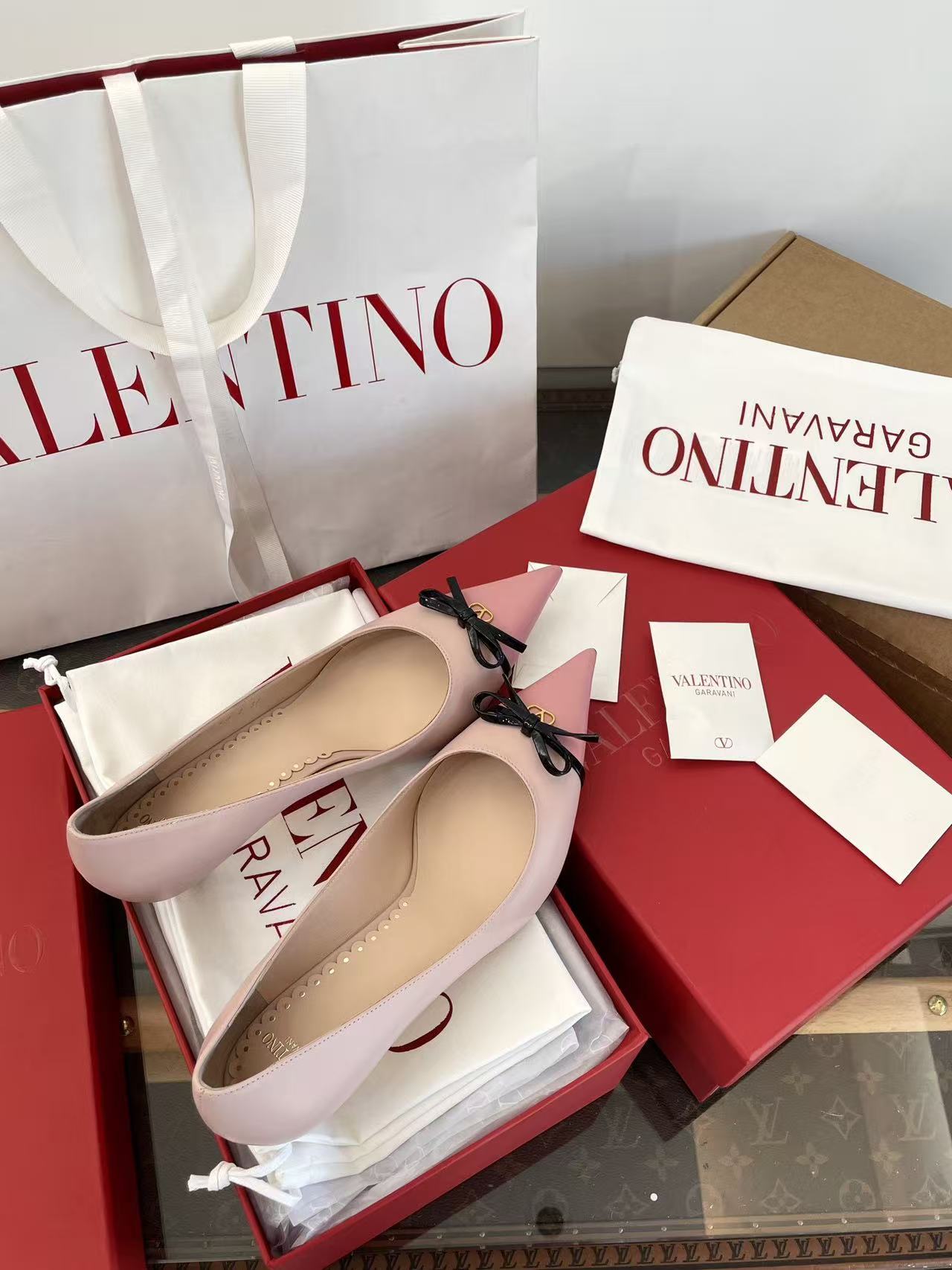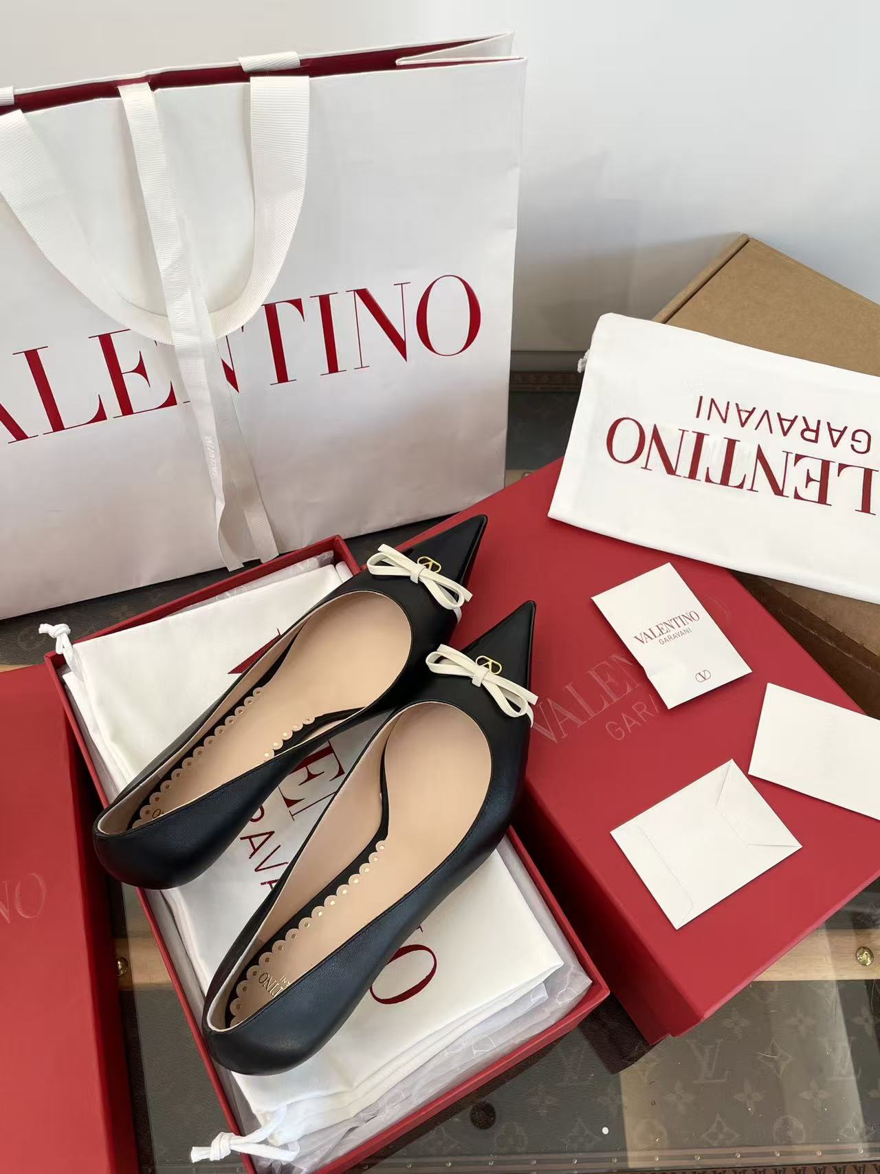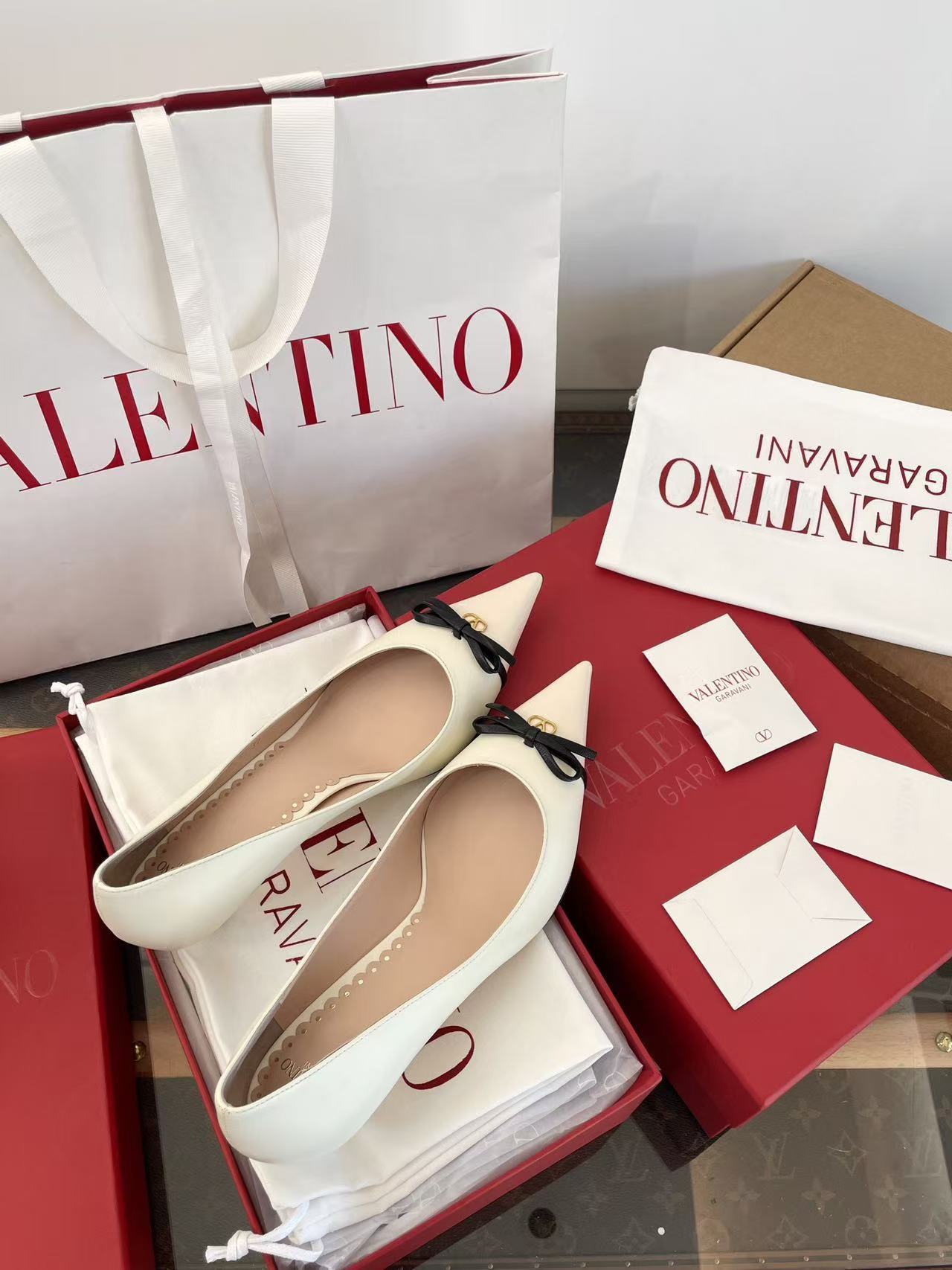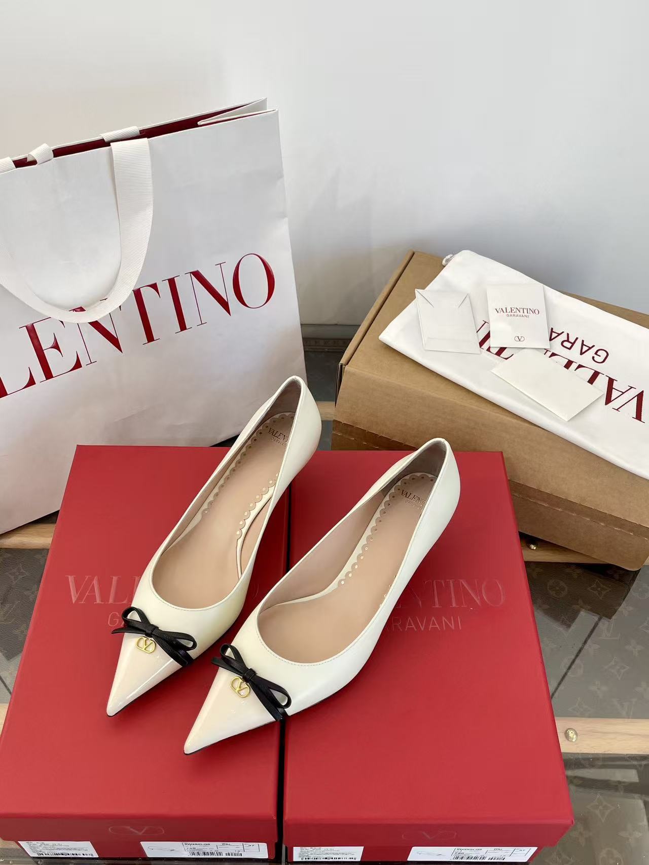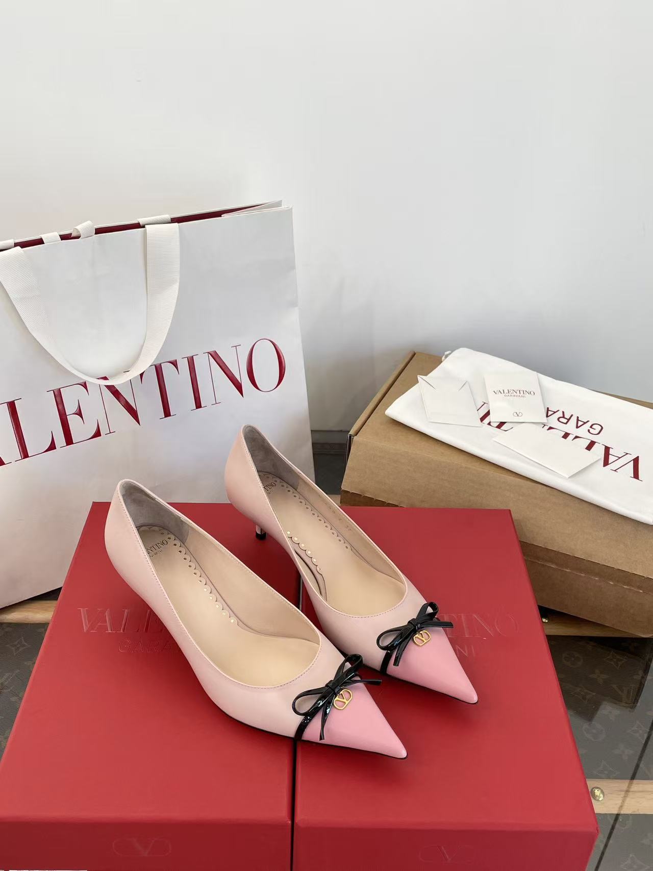 2025秋冬新品 V家 拼色蝴蝶結尖頭貓跟鞋