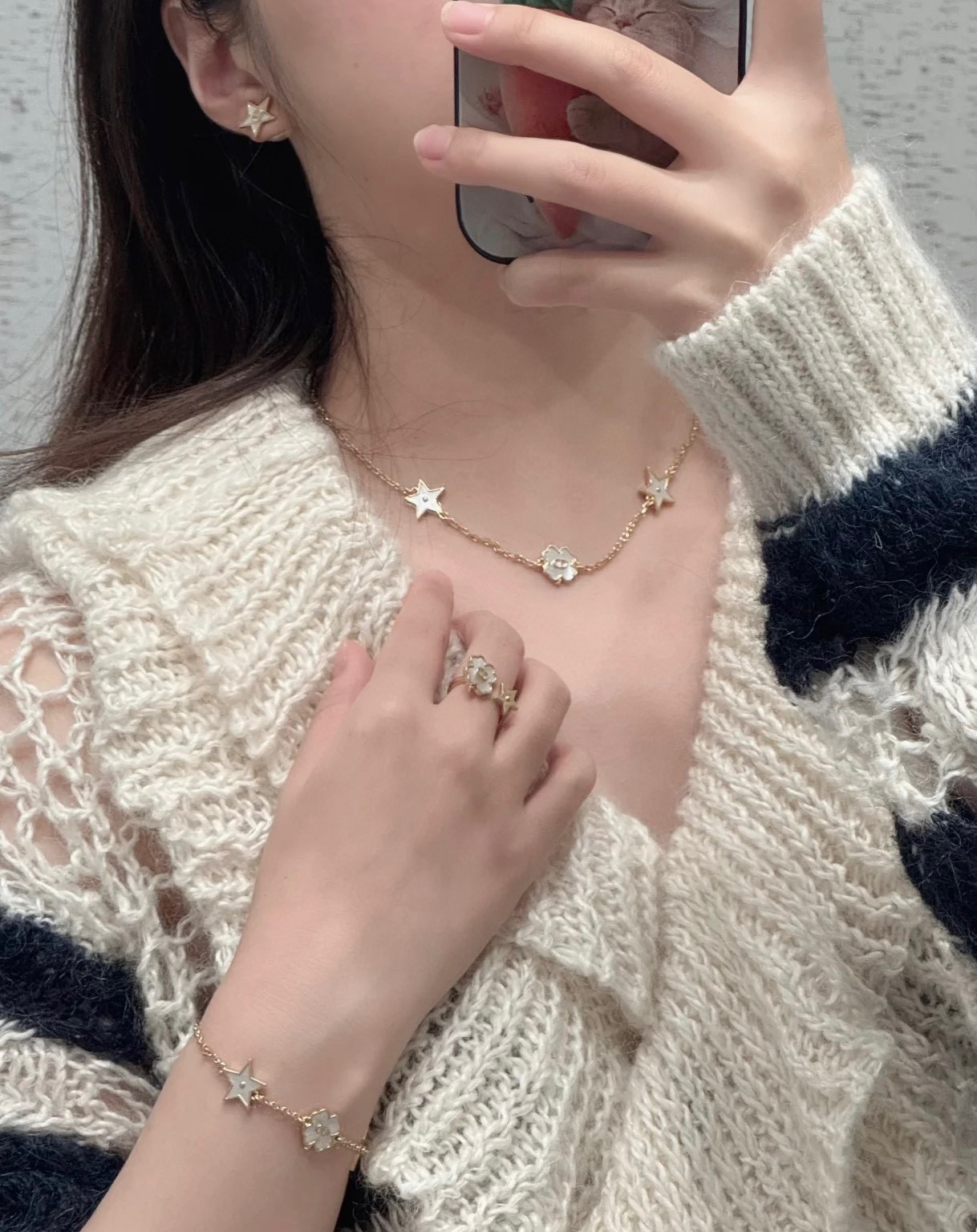 星星與四葉草圖案採用天然貝母製作,每一顆貝殼紋理都獨一無二,隨著光線角度變化閃爍出柔和光澤,低調卻又迷人。