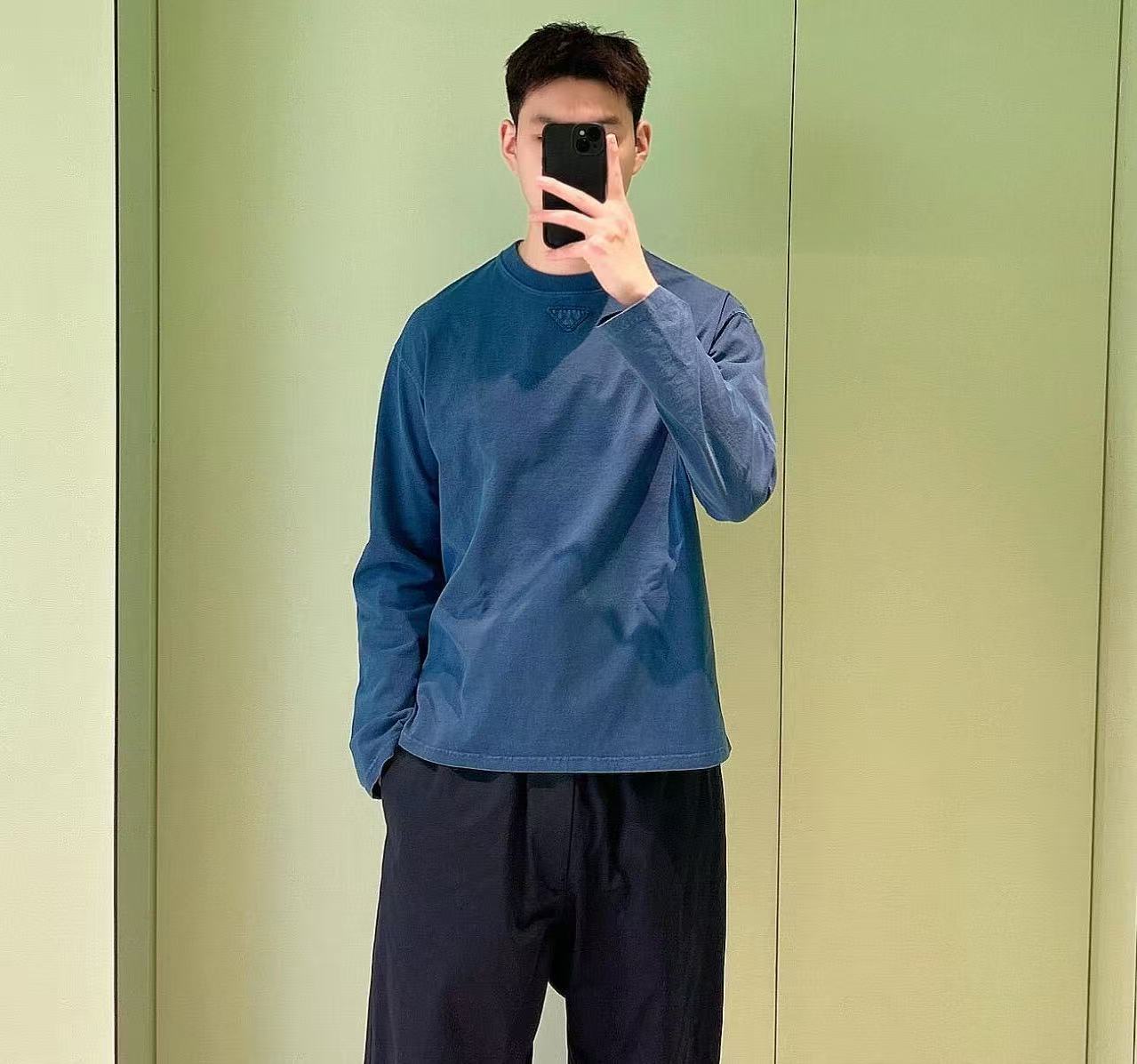 在 Miuccia Prada 與 Raf Simons 的共同執掌下,總能將平凡的基礎款轉化為極具建築感的穿戴藝術。這次分享的 2026 春夏(26SS)三角圓領洗水長袖,完美體現了品牌標誌性的「工業高級感」。