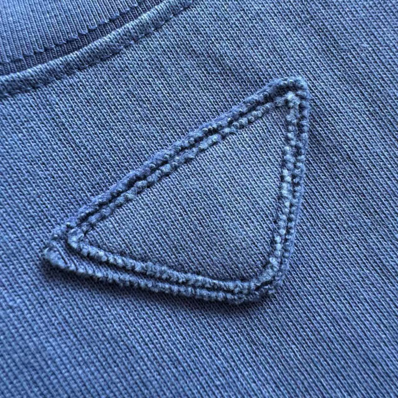 設計核心聚焦於胸前那枚經典的三角幾何徽標,這並非單純的印花,而是透過同色系但具備質地差異的布料切割,再以極高密度的鎖邊繡精準定位,呈現出極具深度的異材質對比。