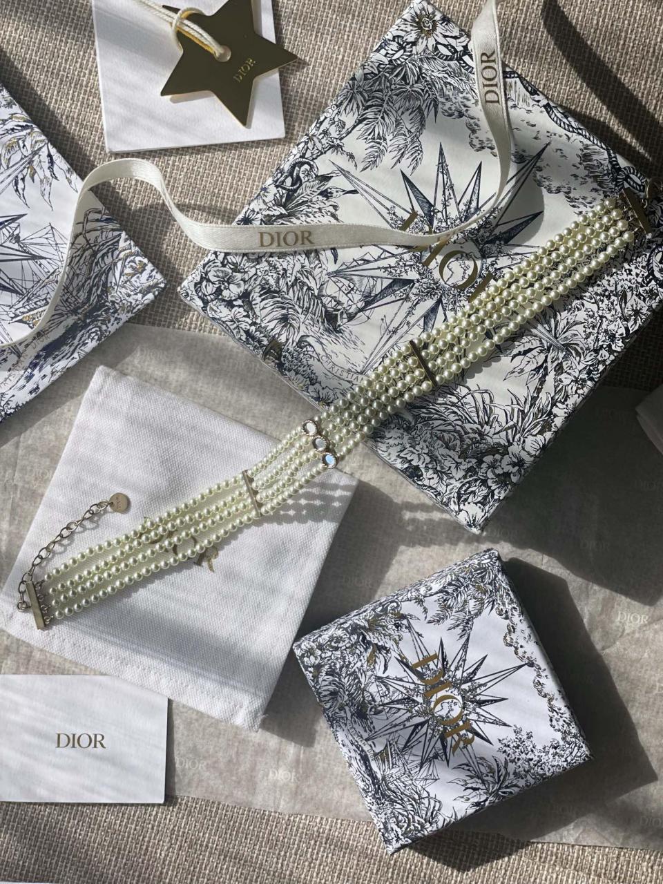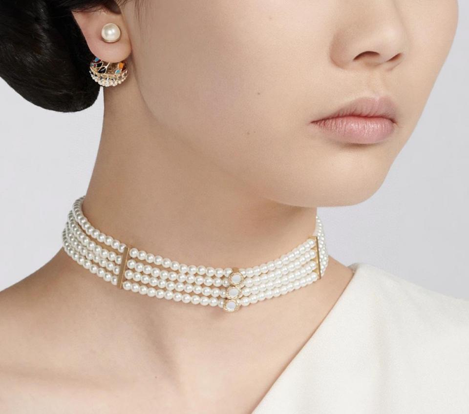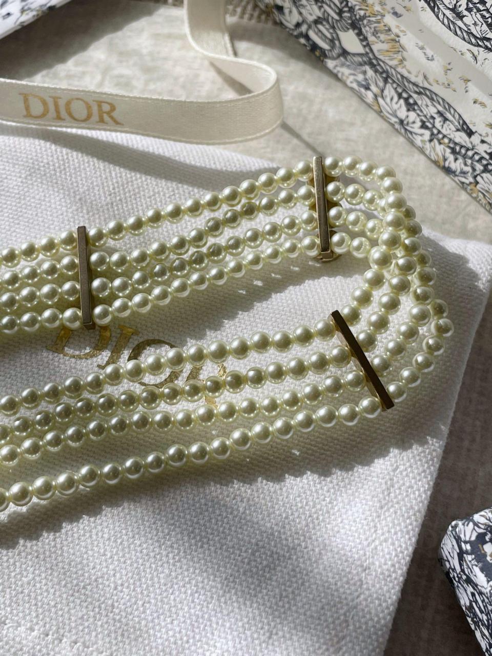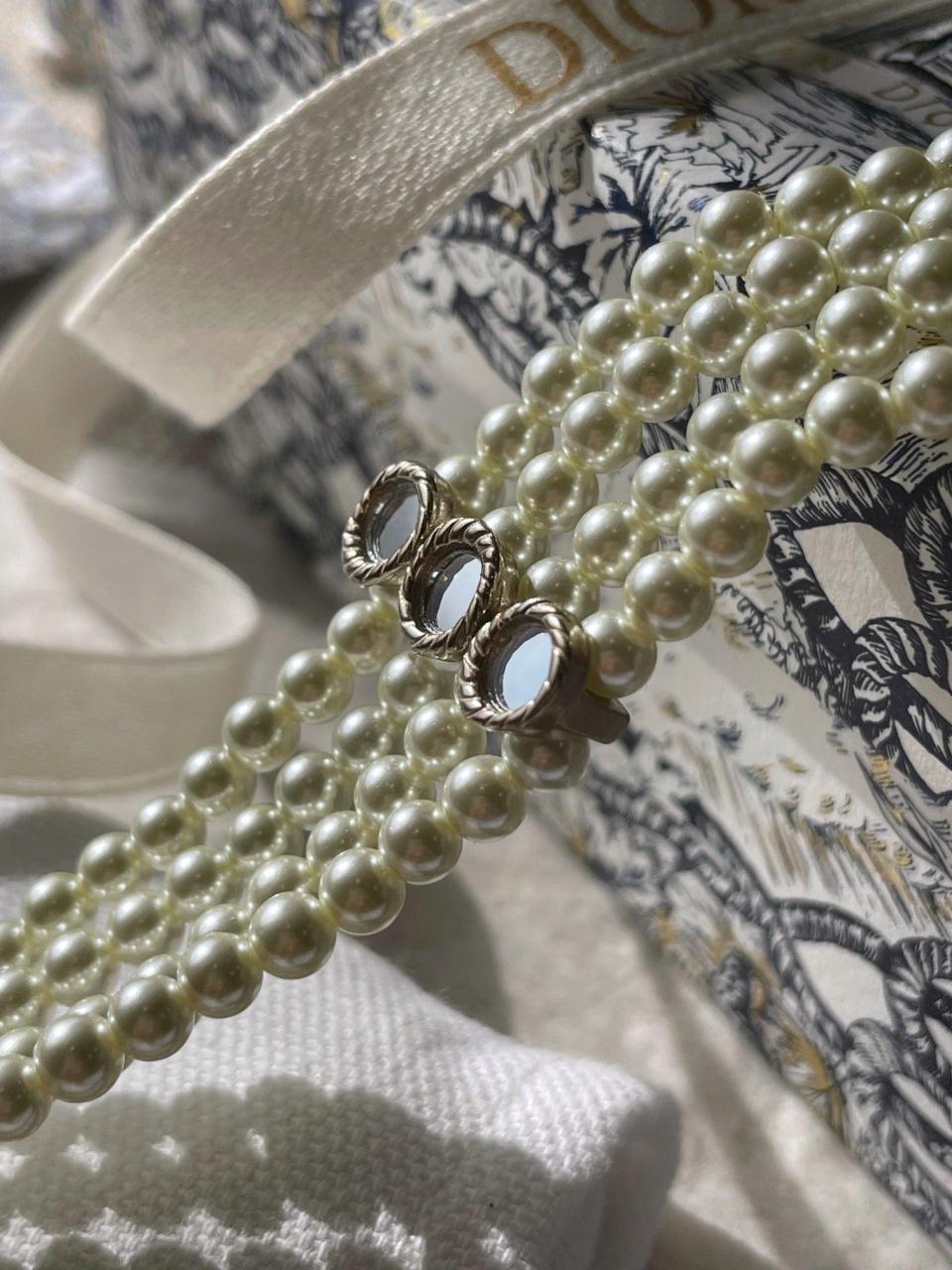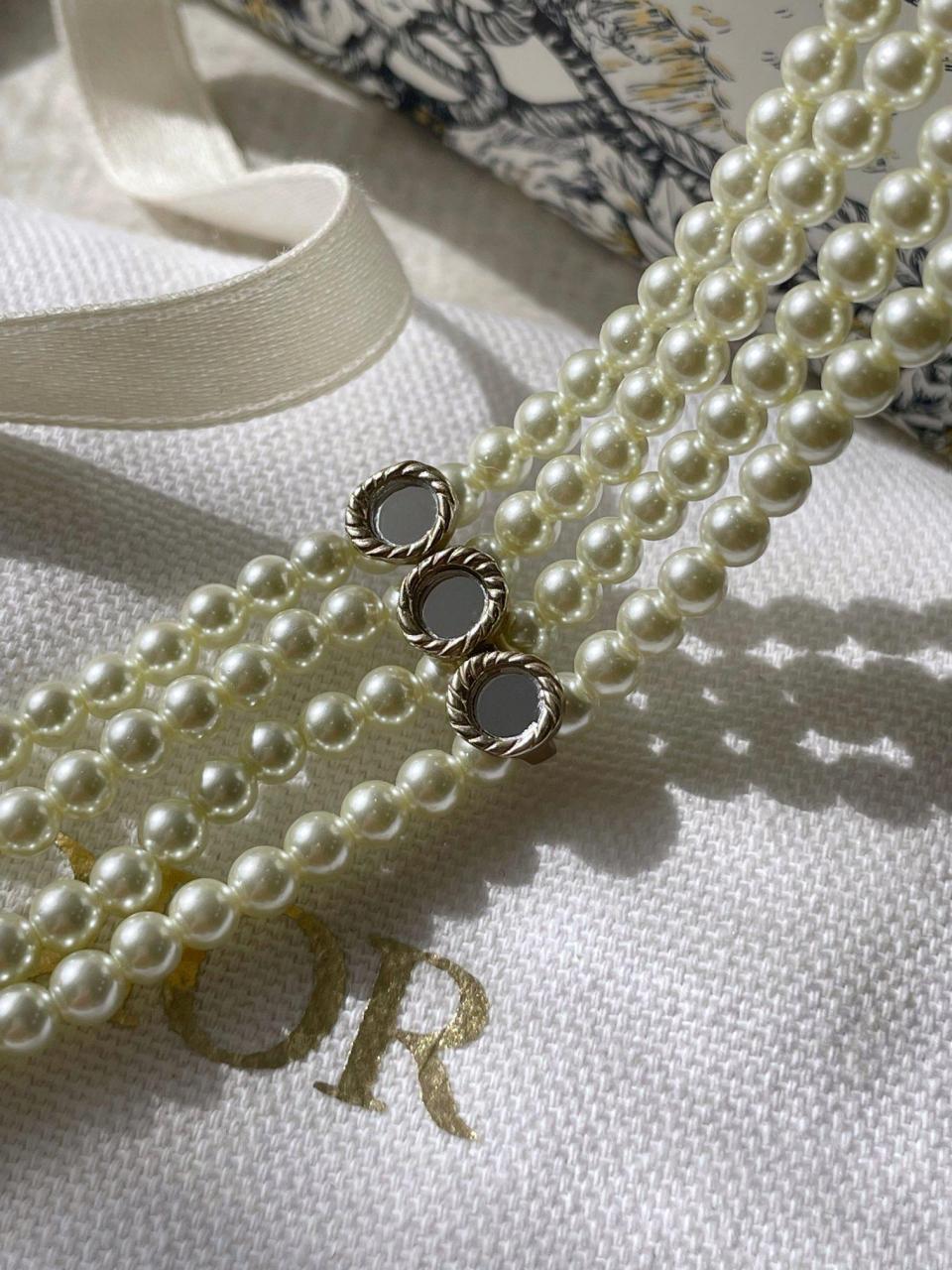 四層珍珠設計!比較寬版的設計感!上身顯脖子纖細,獨特的鏡面小配件設計!質感拉滿!非常特別!