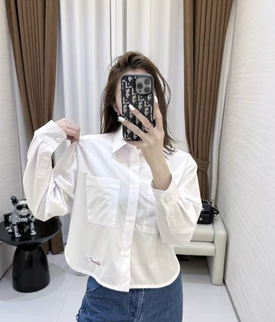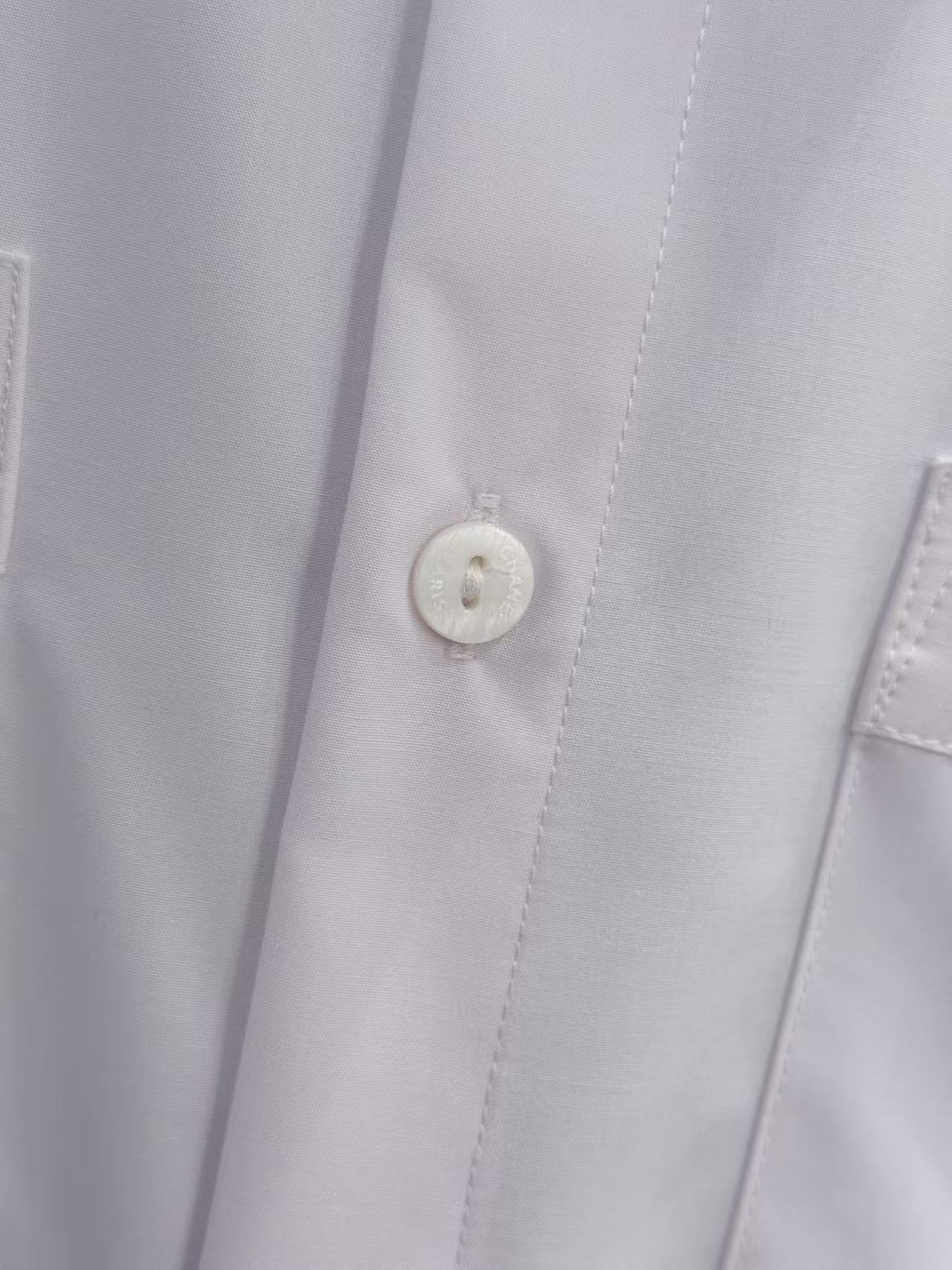 重工手縫金屬鏈條: 下擺處的每一寸金屬鏈條均由資深工匠純手工縫製而成。鏈條的重量經過精確計算,能為輕盈的襯衫增加優雅的垂墜感,確保走動時下擺依然服貼,不會隨意翻翹。
