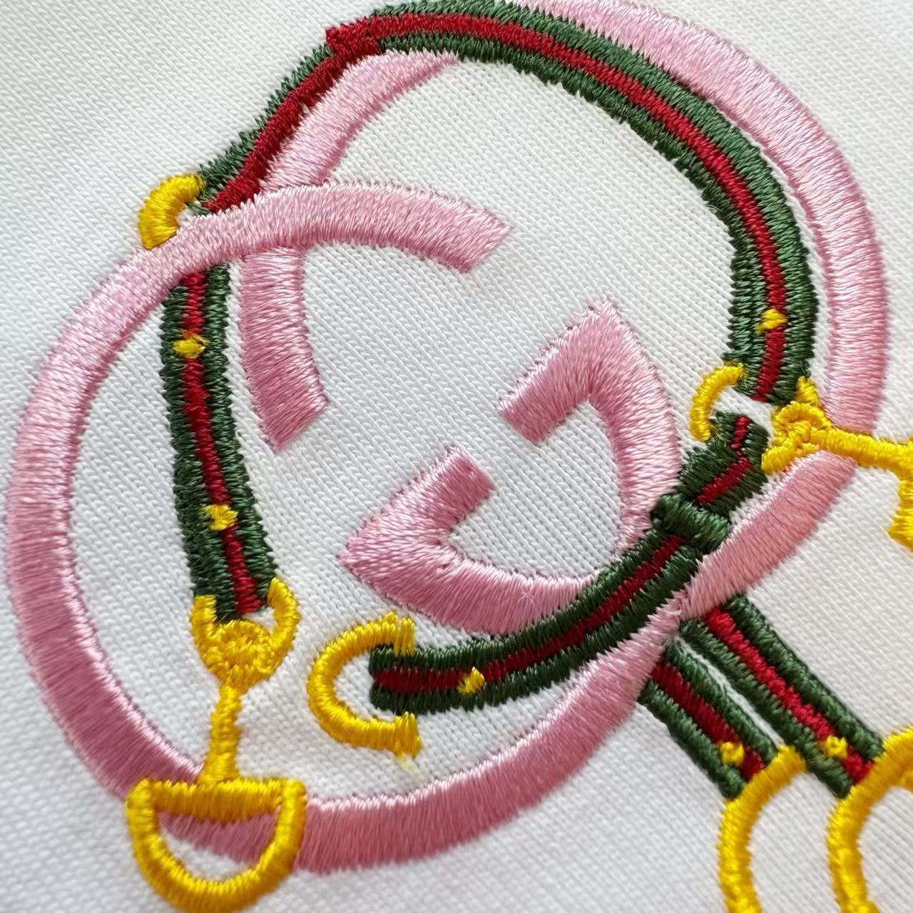 這種處理方式讓整體的圖案顯得非常平整且紮實,不僅精準還原了複雜的色彩過渡,更讓互扣式雙 G 織帶與馬蹄扣的立體造型、細微光影以及纹理細節,都呈現得清晰且細膩。
