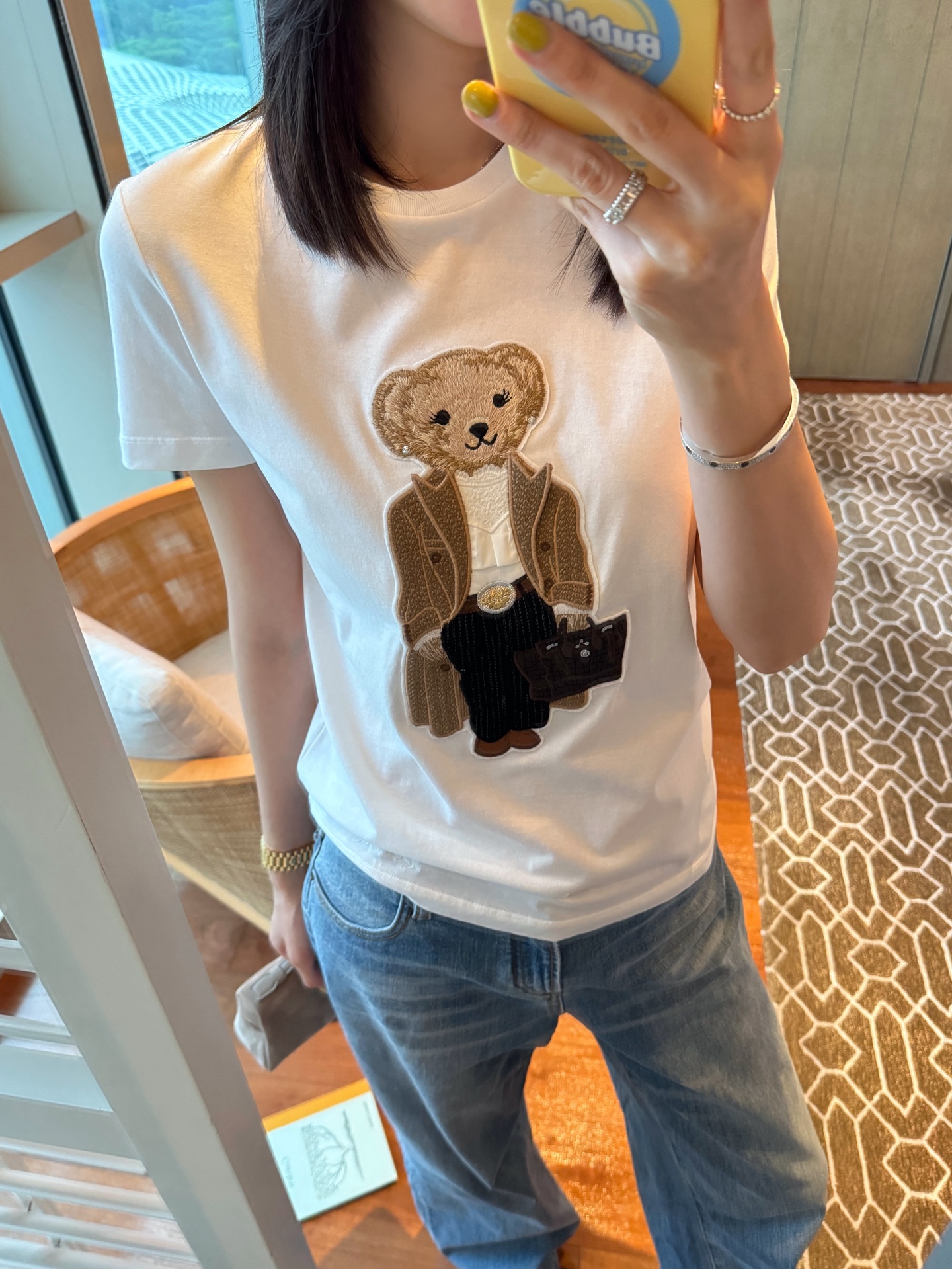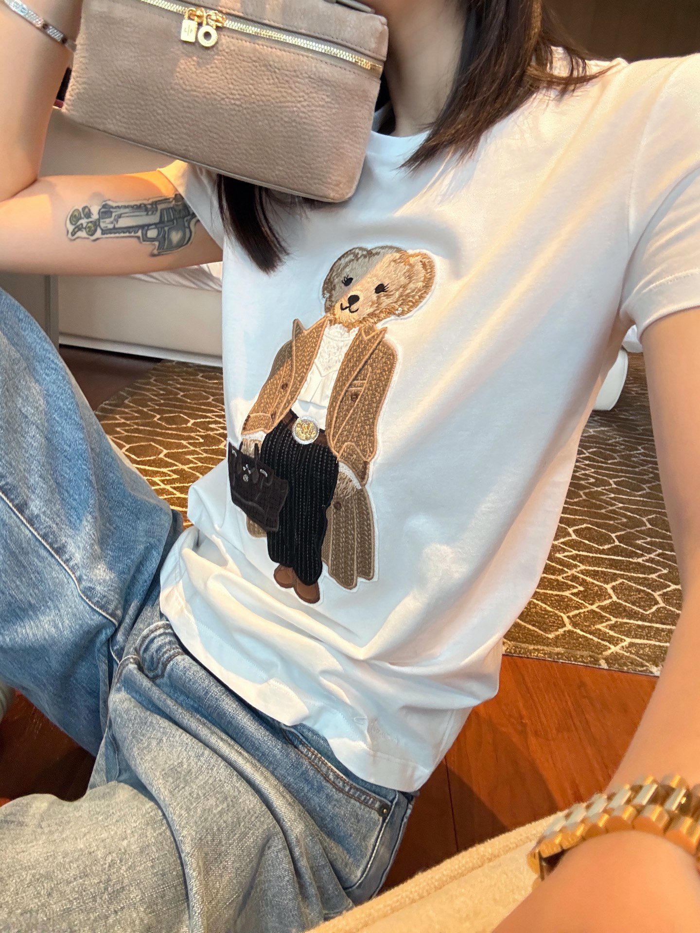 整體來說,這件風衣小熊 T 恤完美融合了可愛與品味,既有青春氣息,又帶著高級休閒的味道。