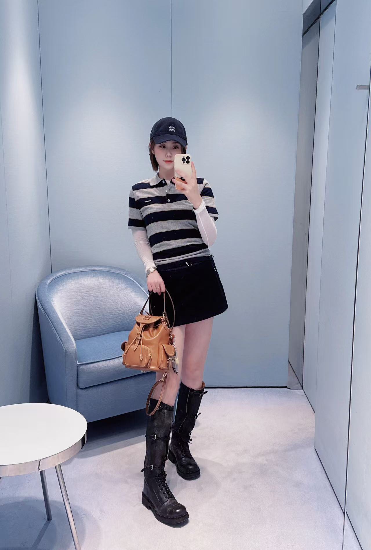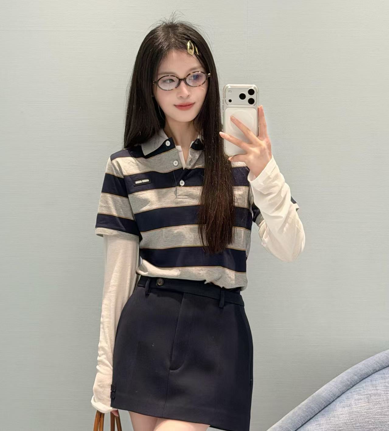 2026早春 Miu家 藍灰條紋 Polo 短袖