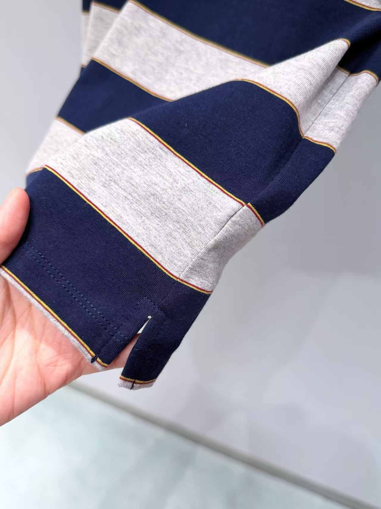 工藝: 經典 Polo 領結合高密度撞色條紋織法。