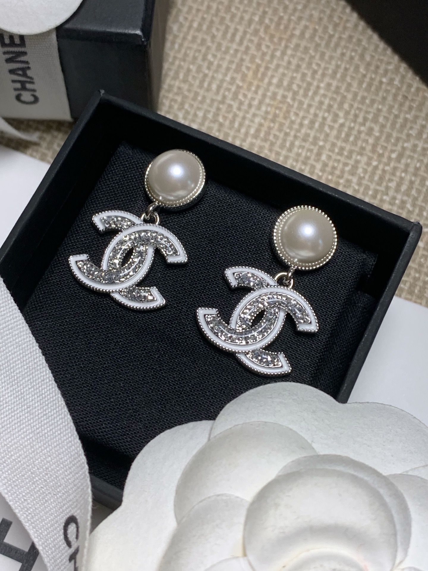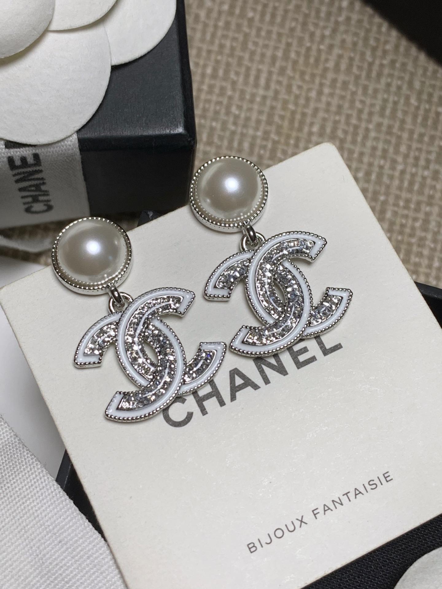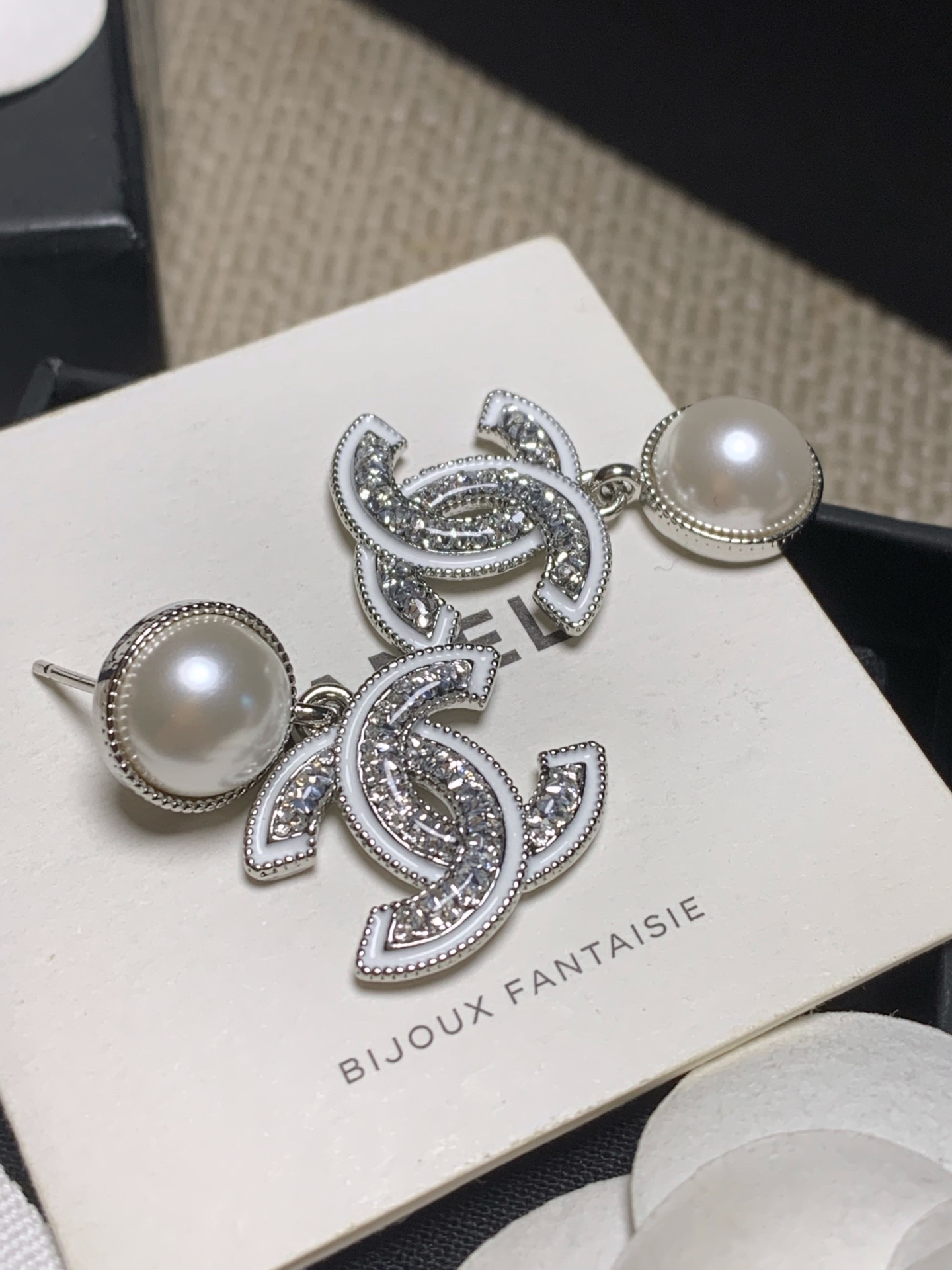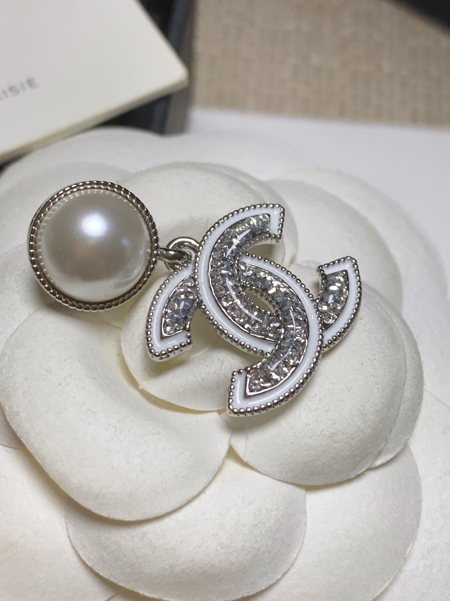 這副珍珠銀色琺瑯滿鑽雙C耳環真的是夢幻單品,完全值得被封為「超級斷貨王」。