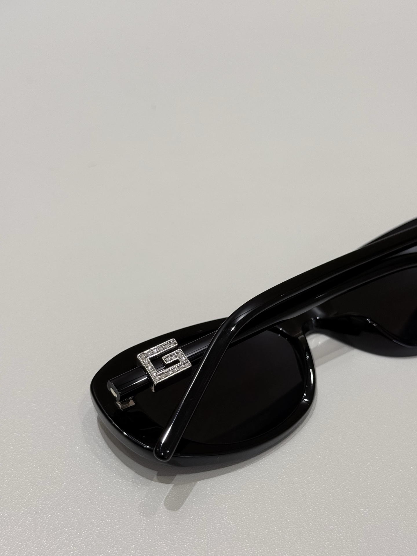 鏡腿的部分延續品牌標誌性的設計語言,以立體方形「G」Logo 展現識別度,部分款式還點綴晶瑩水鑽,細節中散發出低調奢華感。