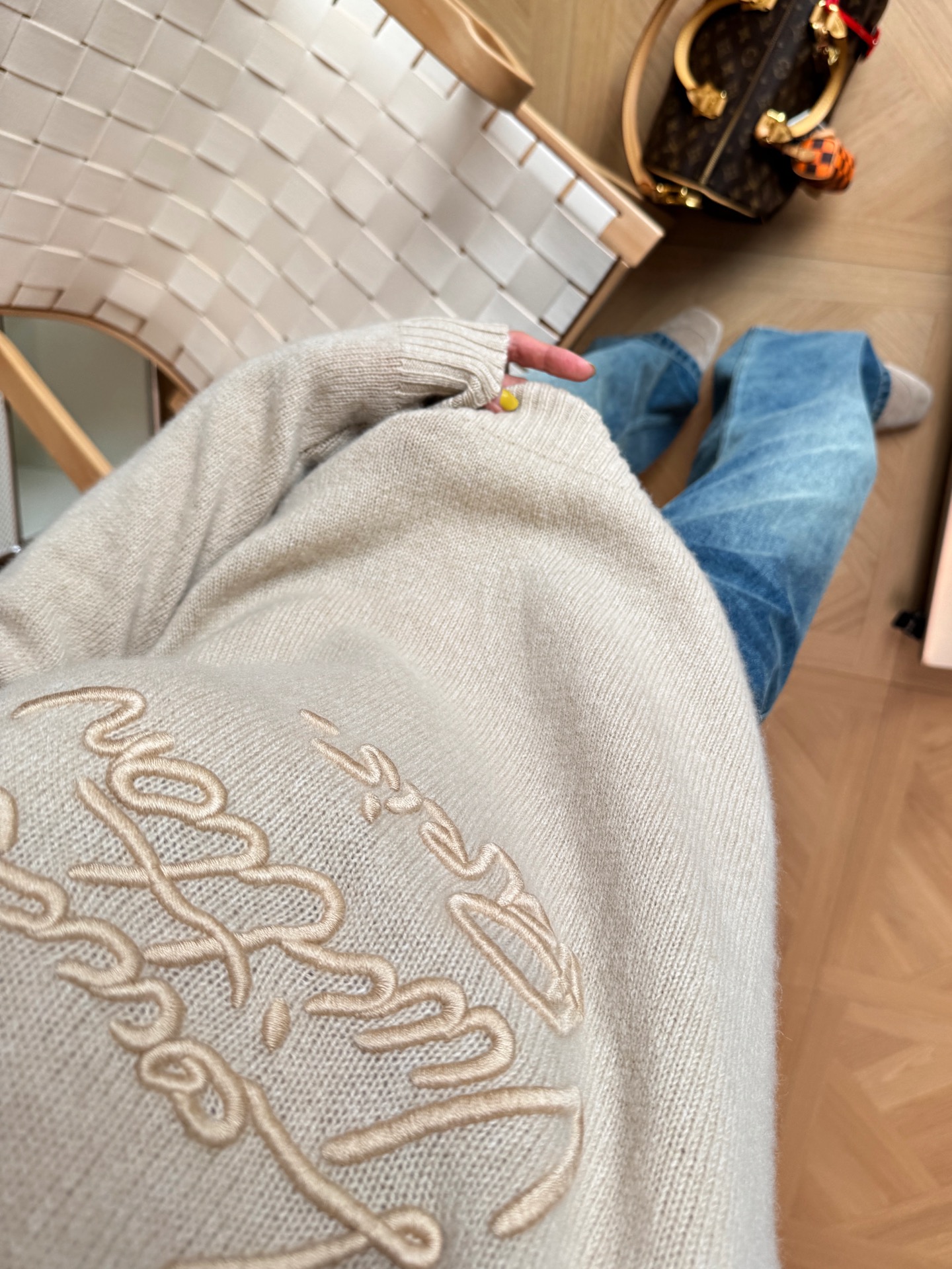 這款針織衫一上架就讓人忍不住想入手~胸前以優雅的手寫體刺繡呈現,低調中又帶點法式知性氣息,無論單穿或內搭外套都超有氣質。