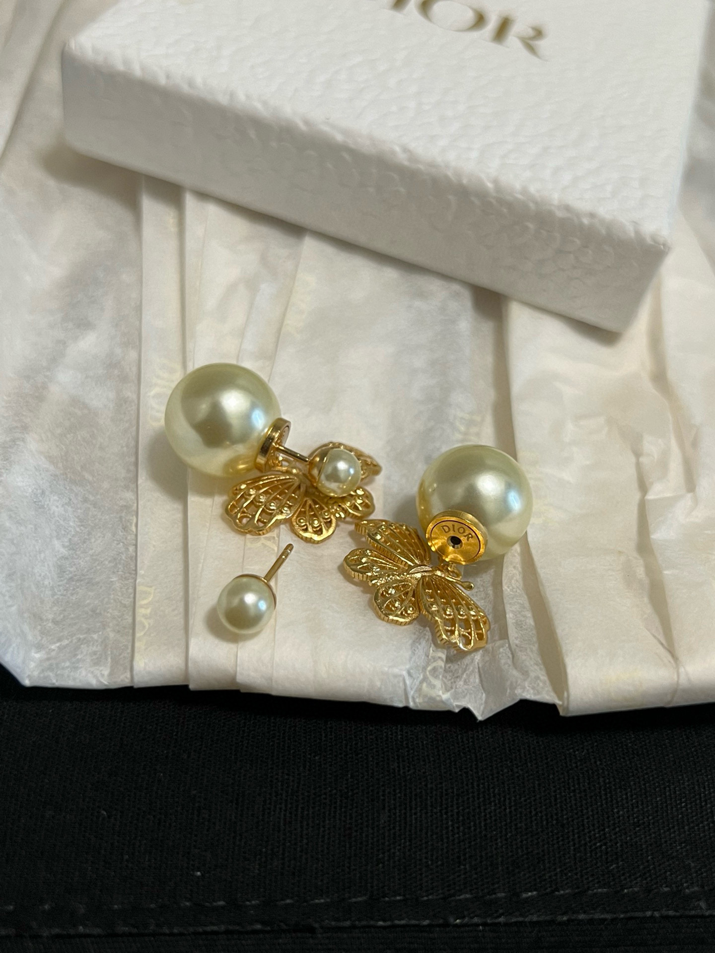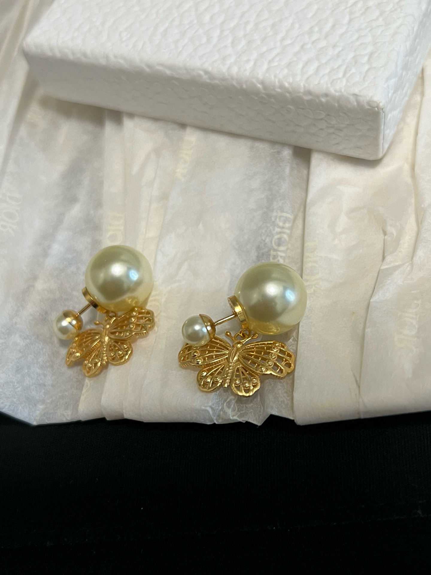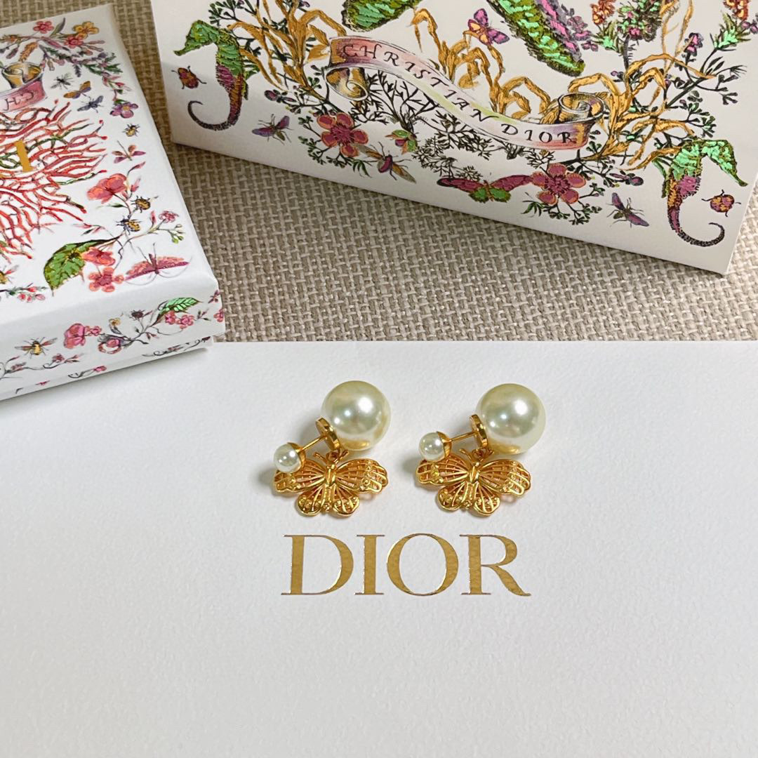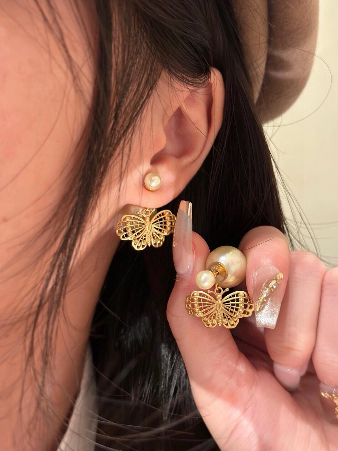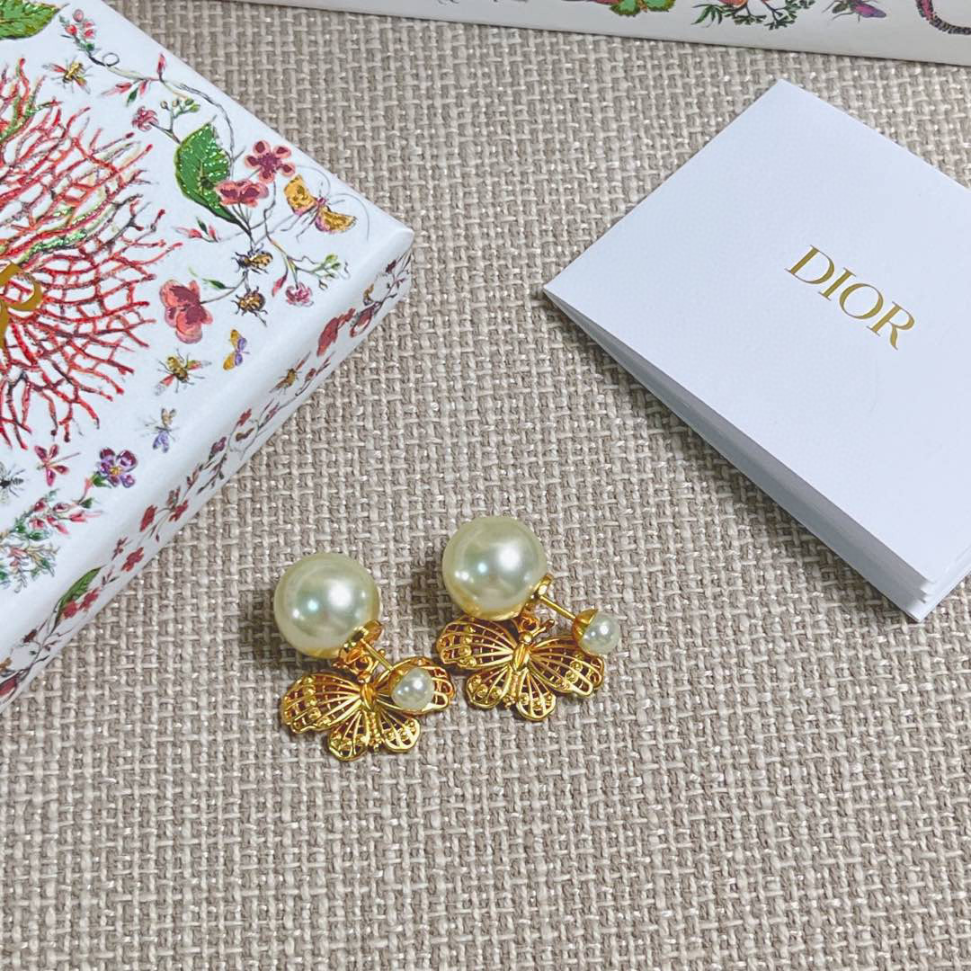 D家金蝶雙珠耳釘