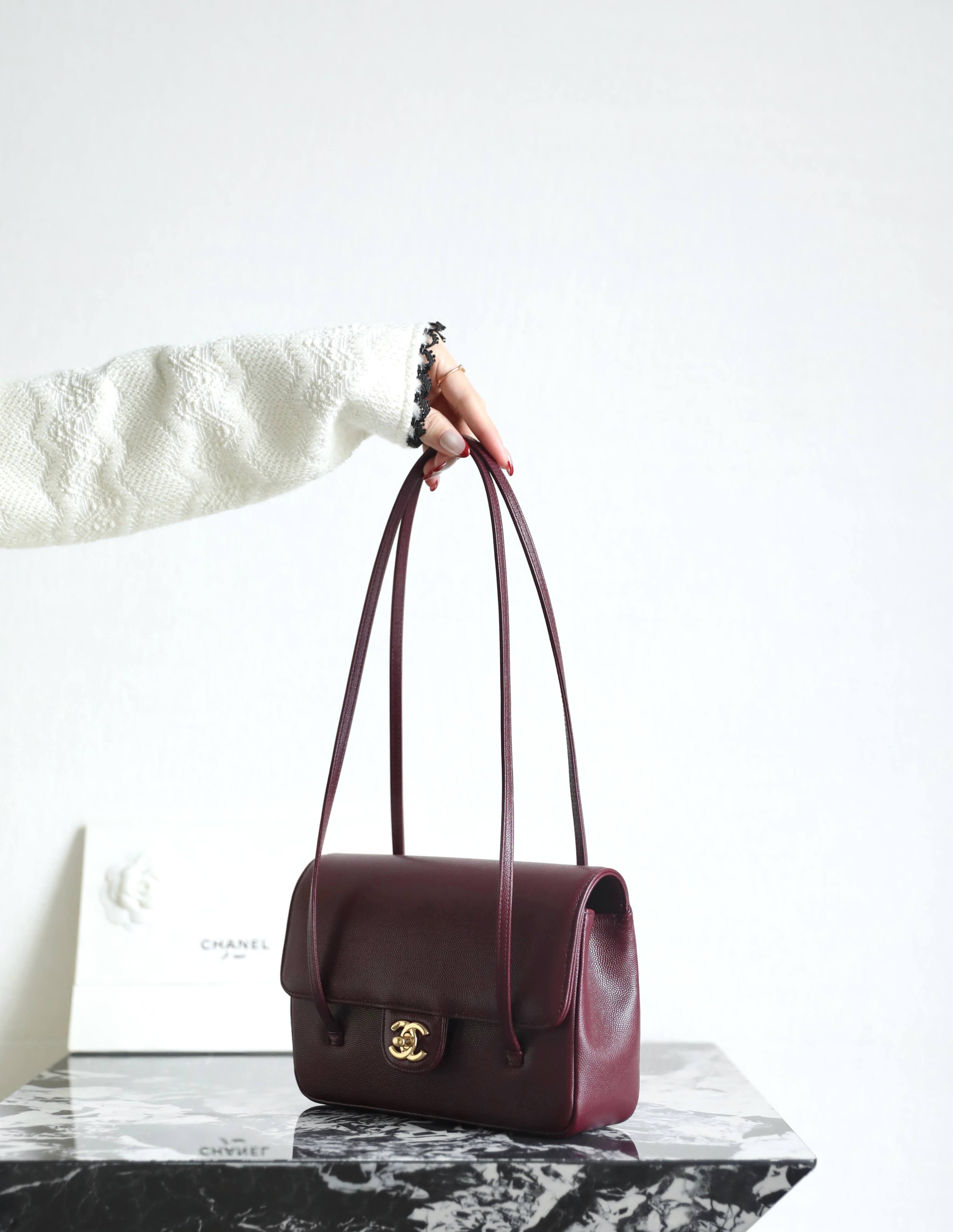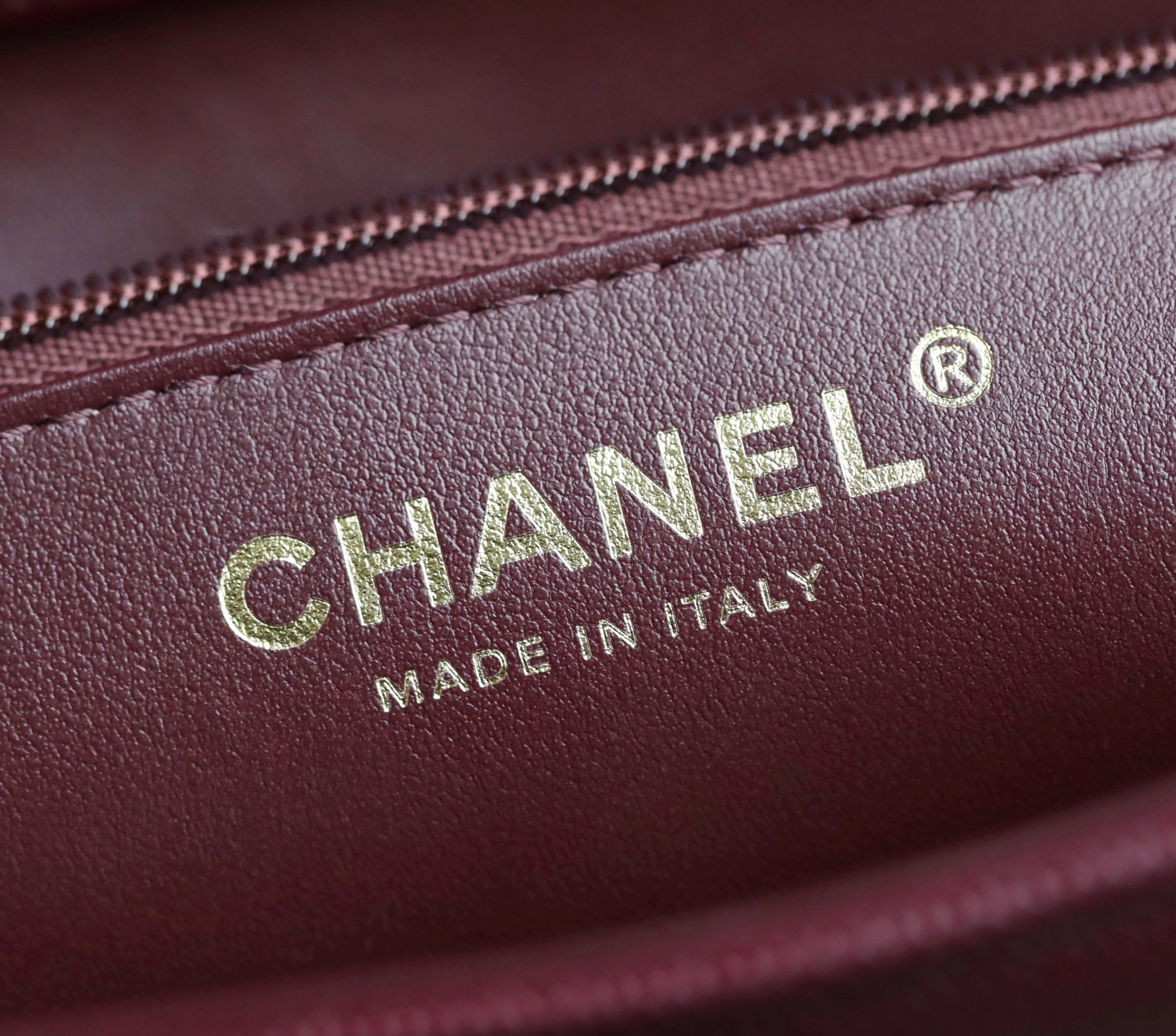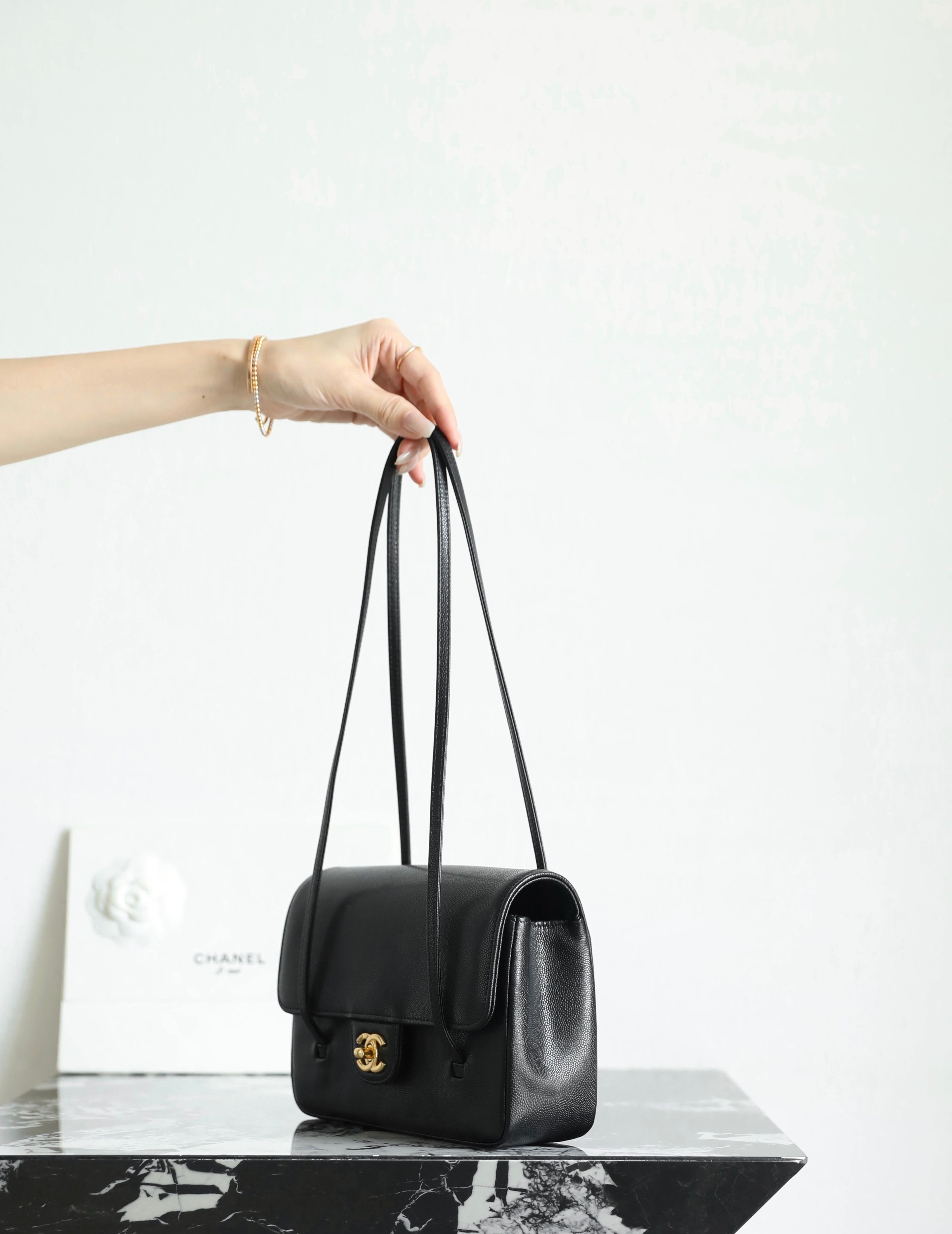 整體以俐落小巧的包型呈現,搭配經典雙 C 金屬標誌,低調卻極具辨識度。