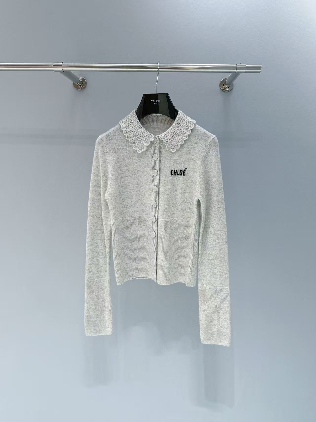設計上,娃娃領是最大亮點,搭配蕾絲細節增添浪漫氣息,正面還有品牌刺繡 Logo,低調卻有辨識度。