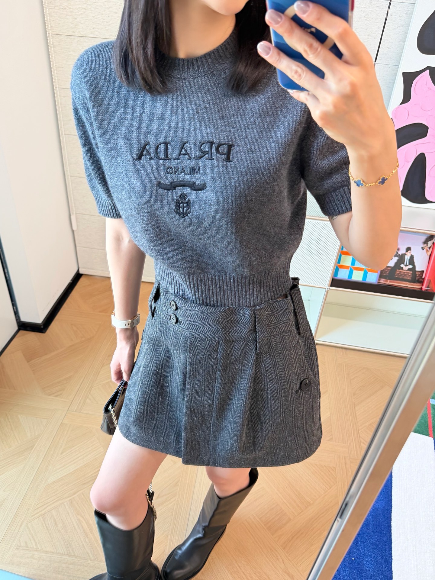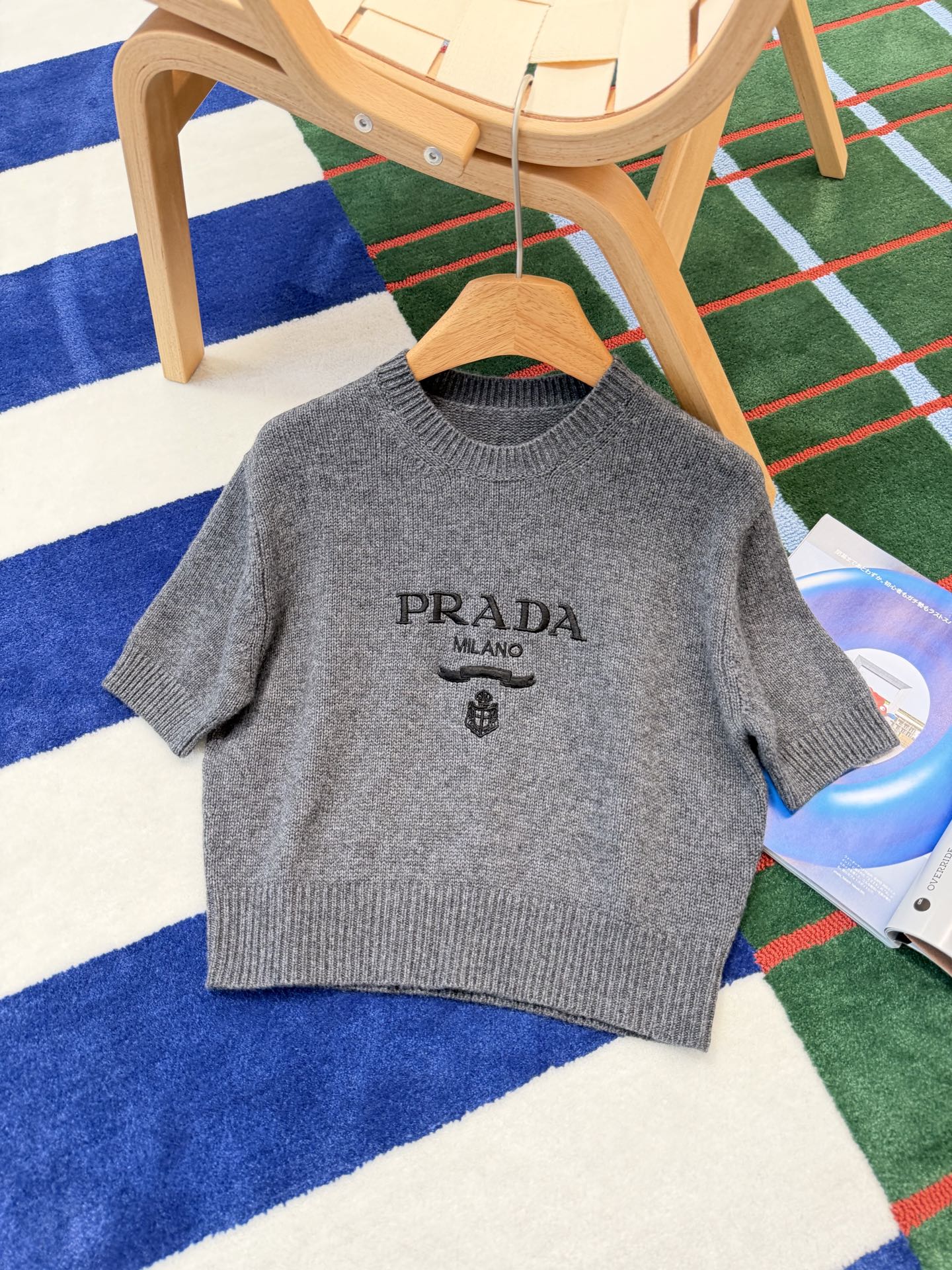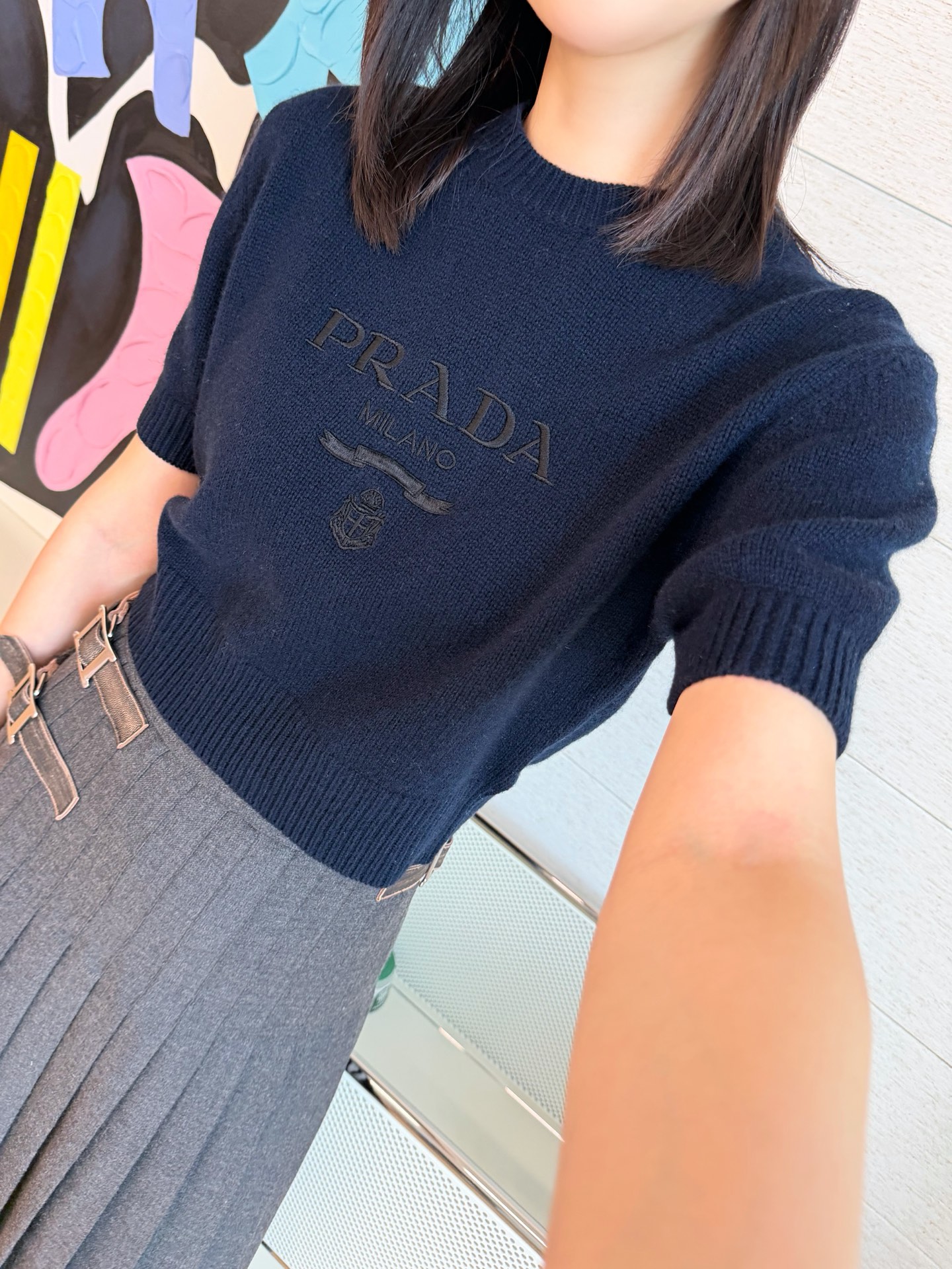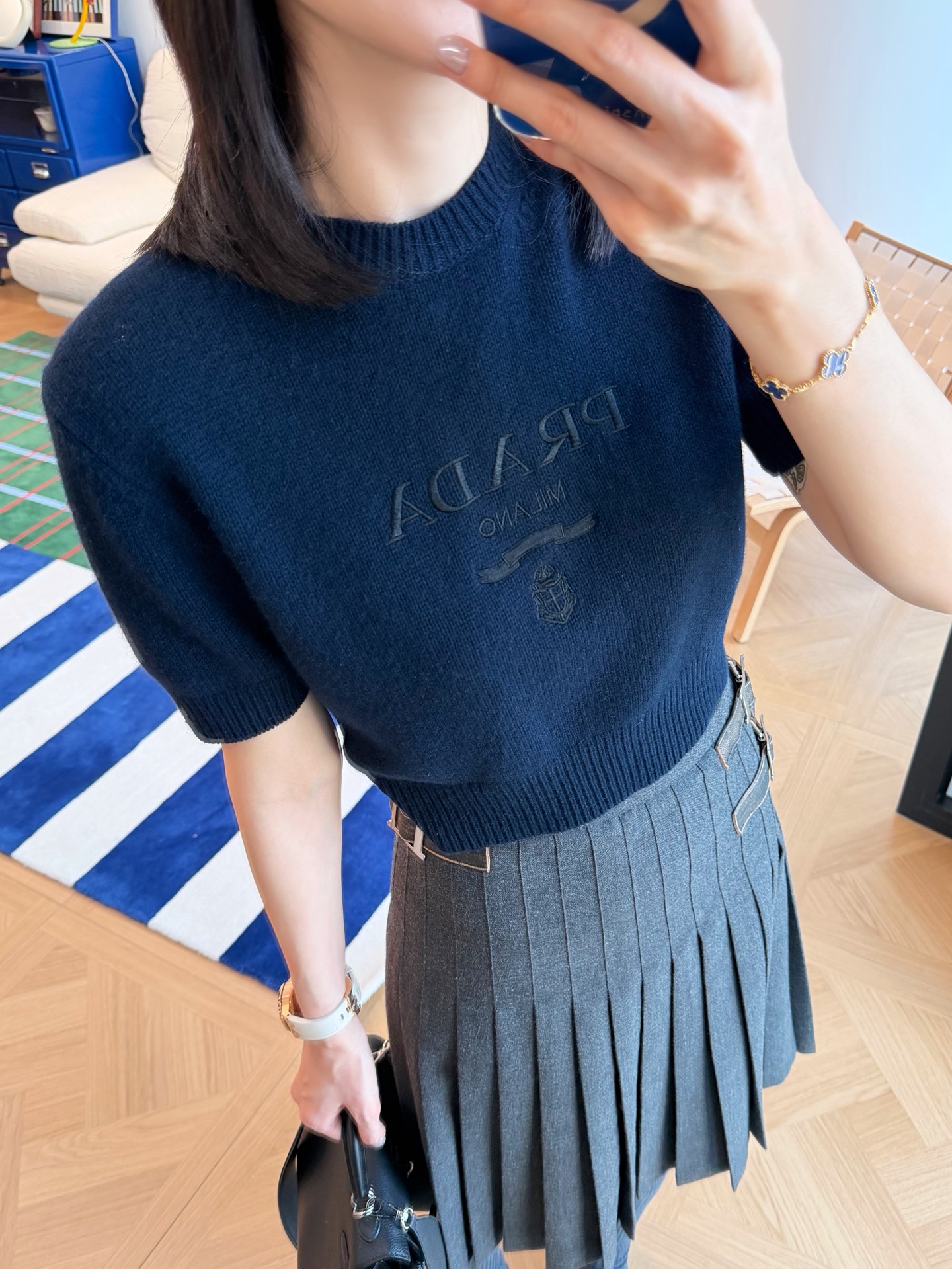 2025秋冬新品 P家 刺繡字母短袖針織衫