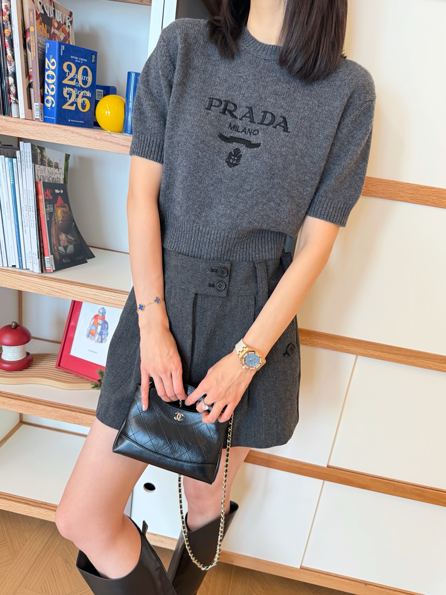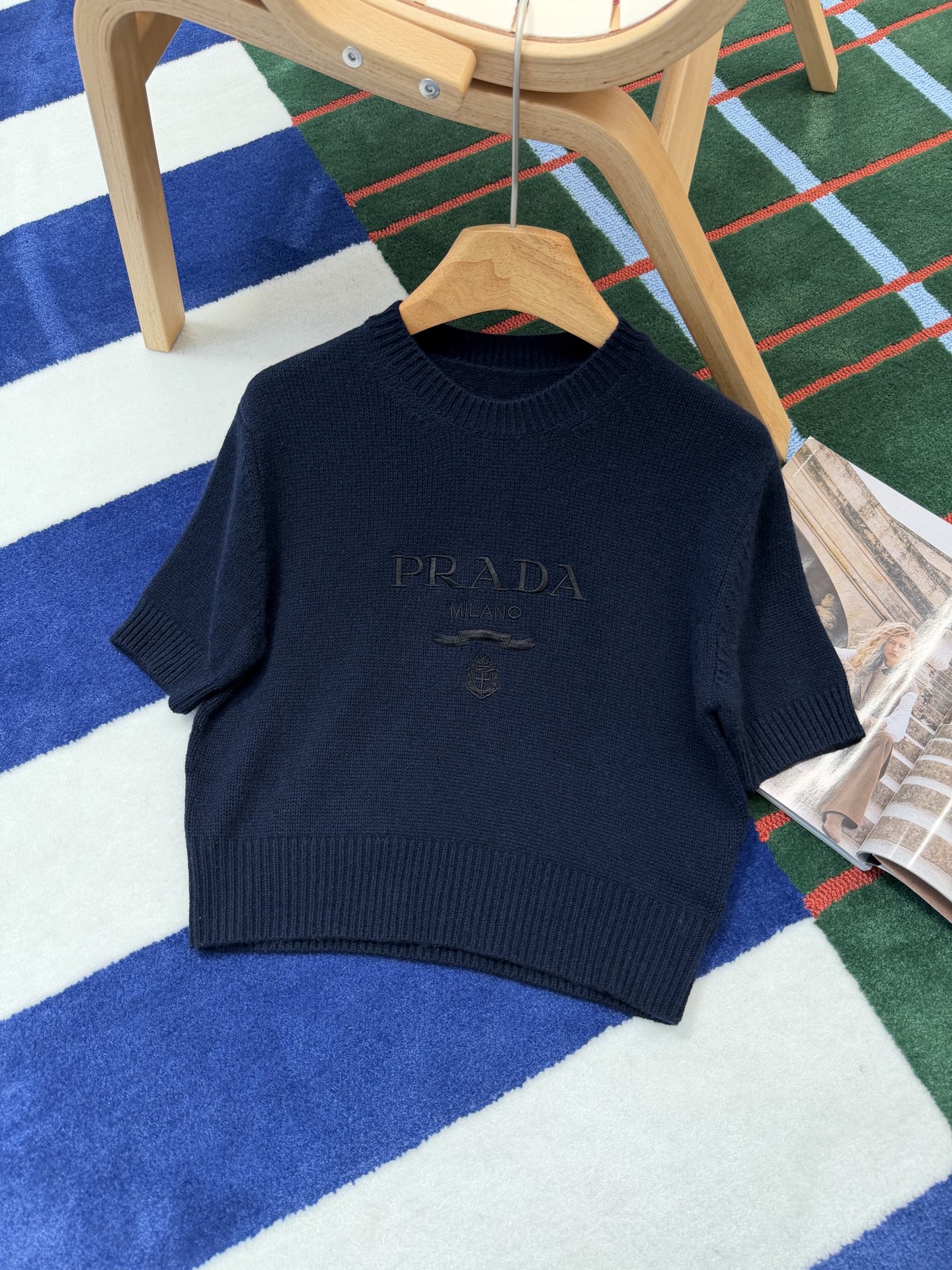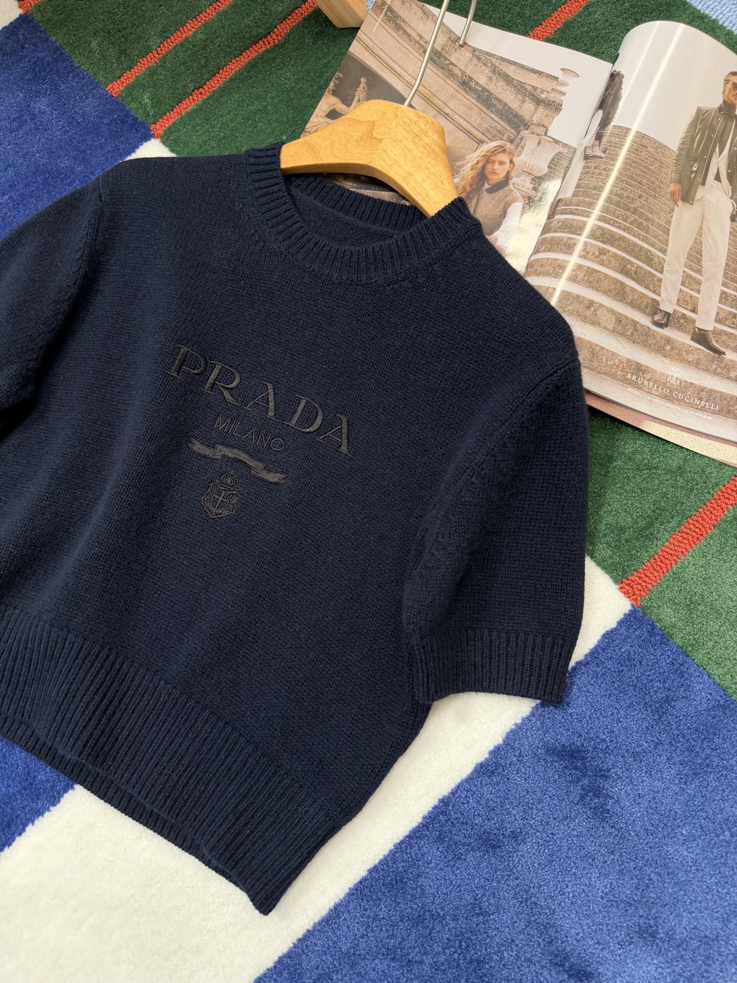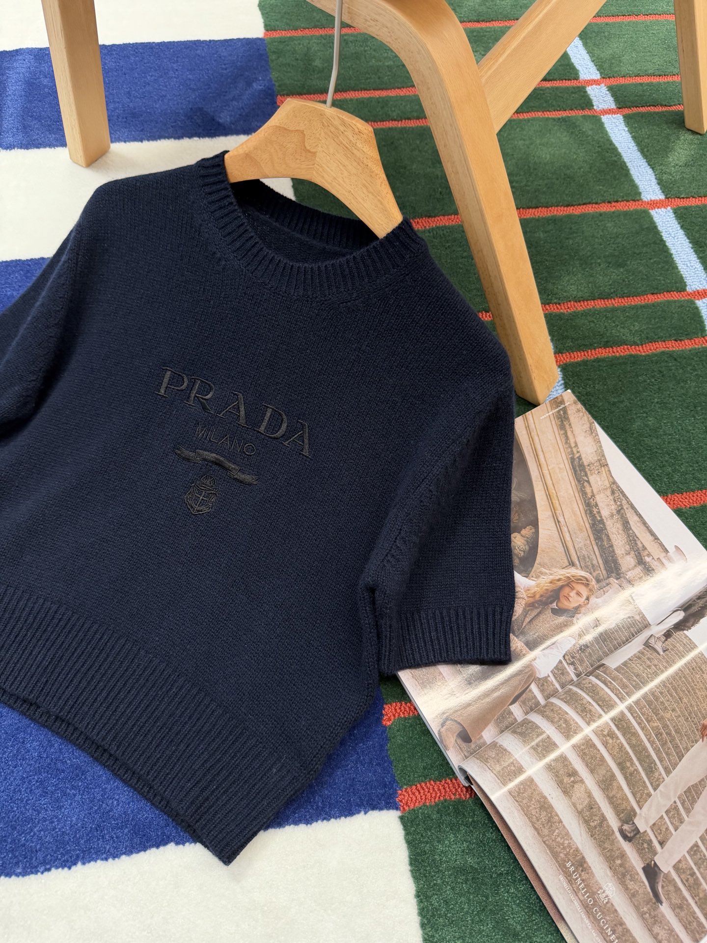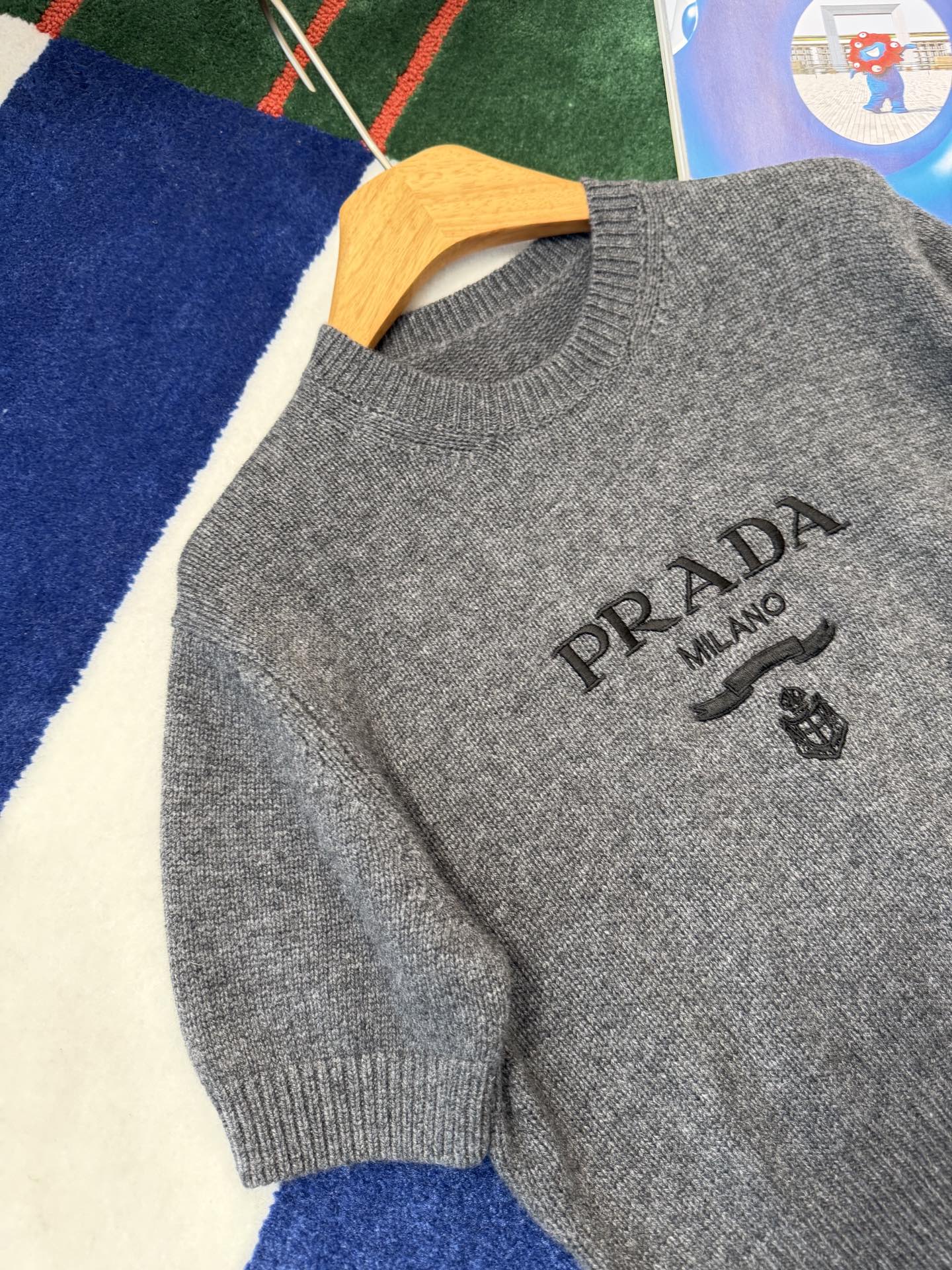 2025秋冬新品 P家 刺繡字母短袖針織衫