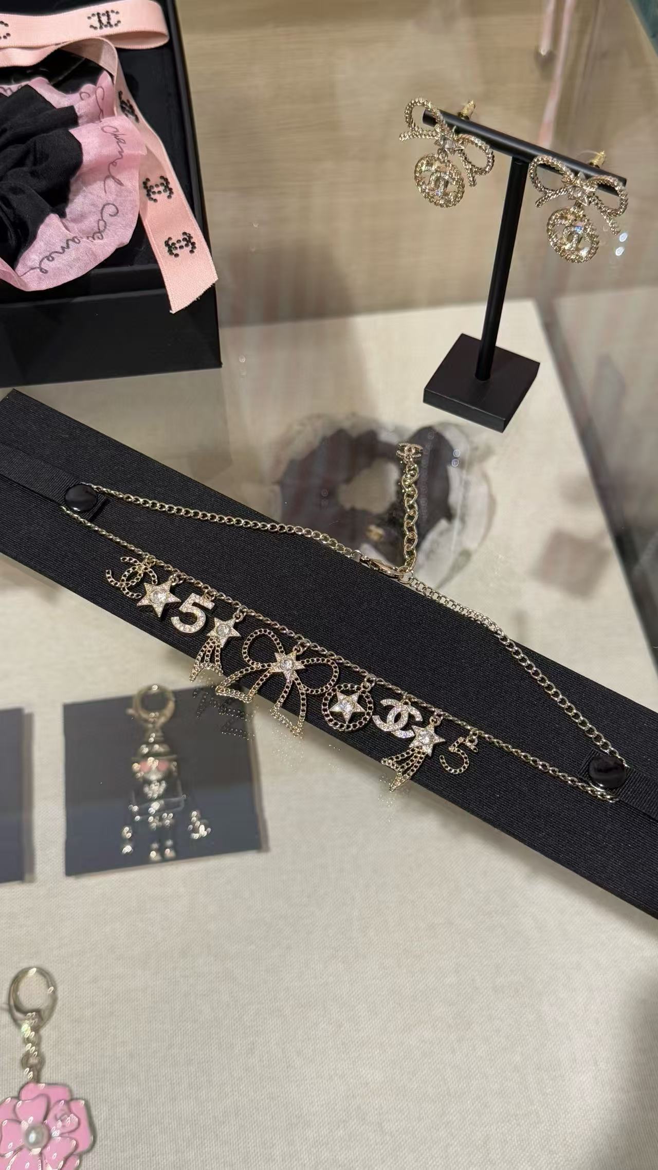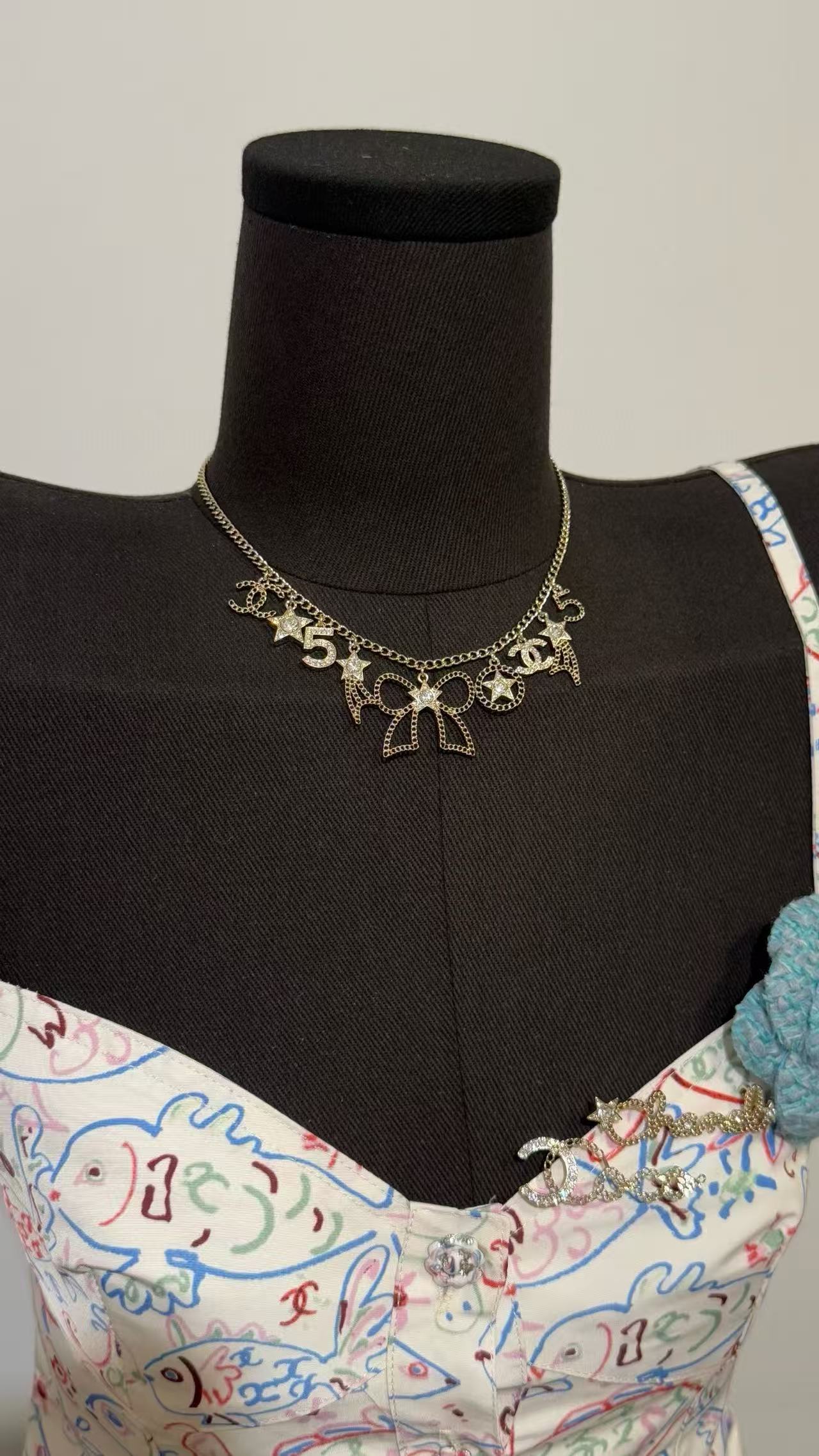 2025早秋   C家 蝴蝶結滿鑽星星流蘇多元素項鍊