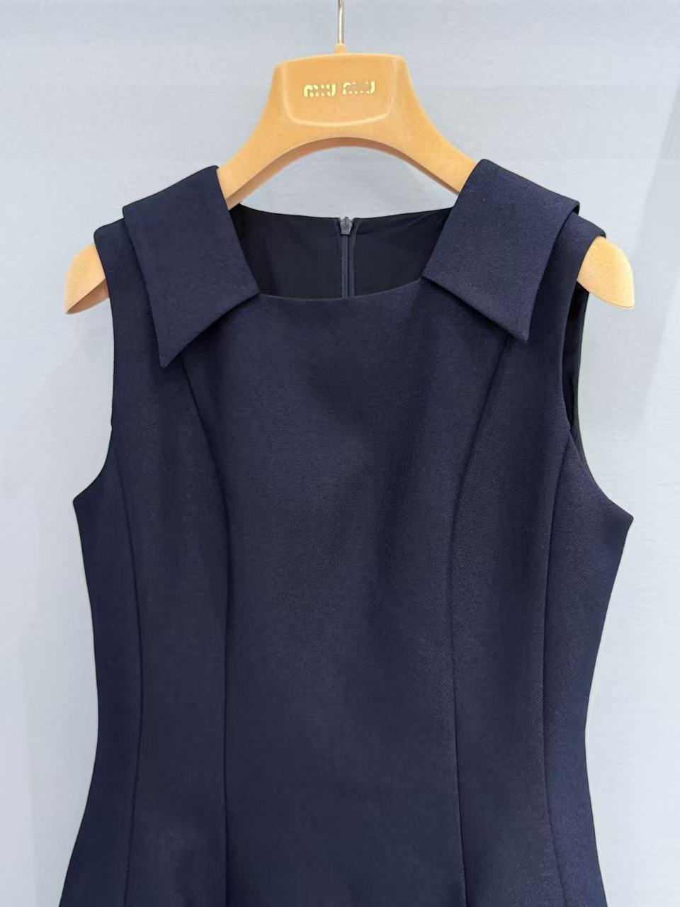 無袖方領結合肩部小翻領設計,不僅能視覺上修飾肩頸線條,更散發出一種如 60 年代名伶般的復古俏皮感。